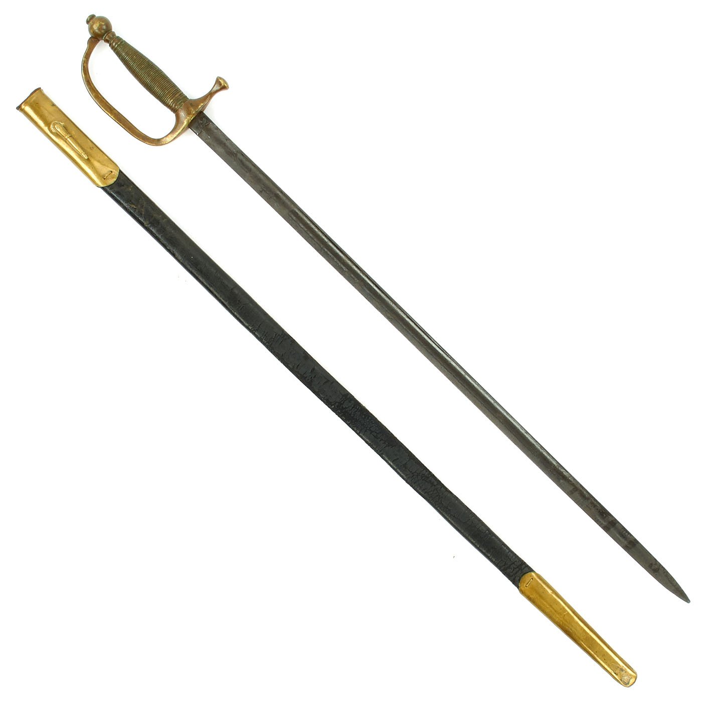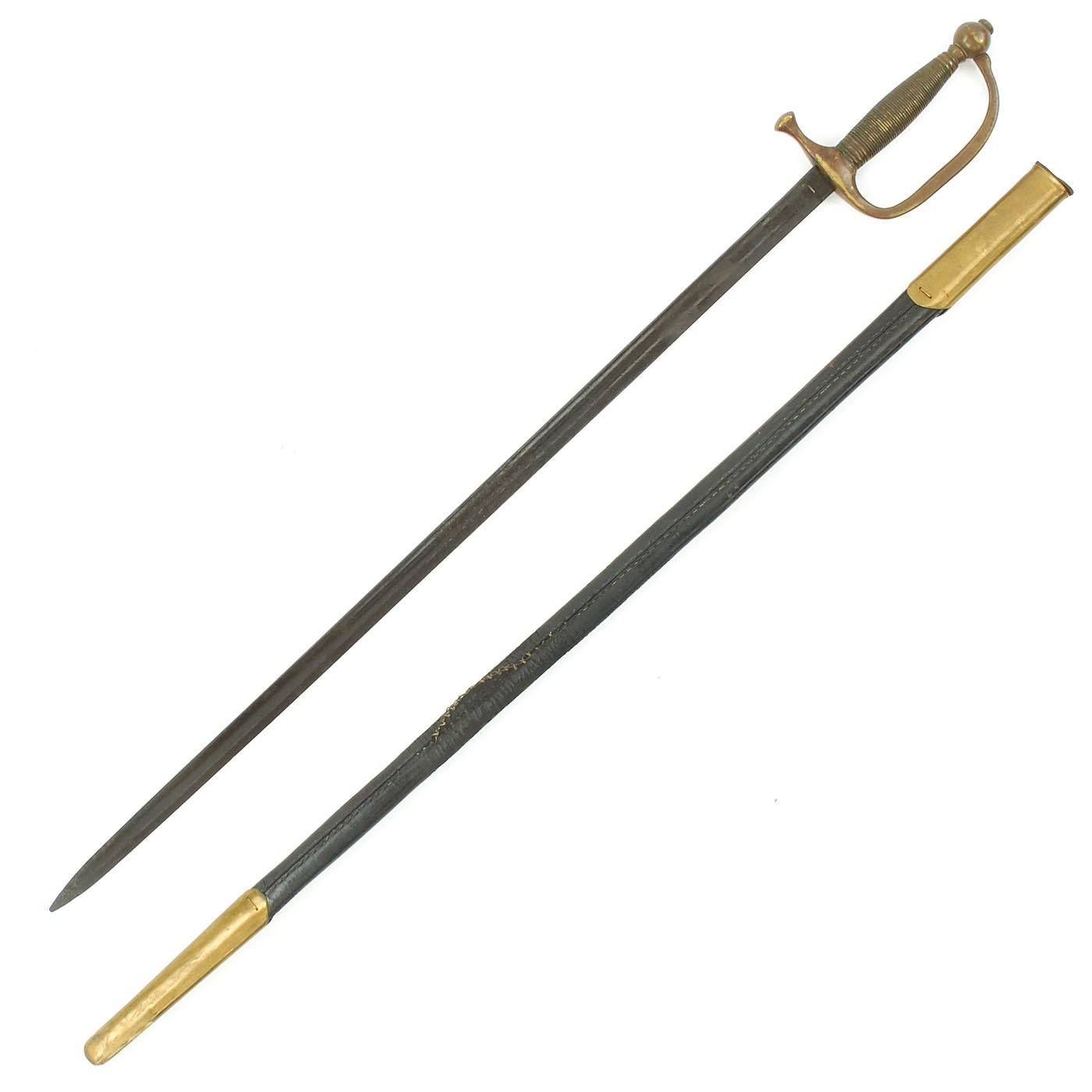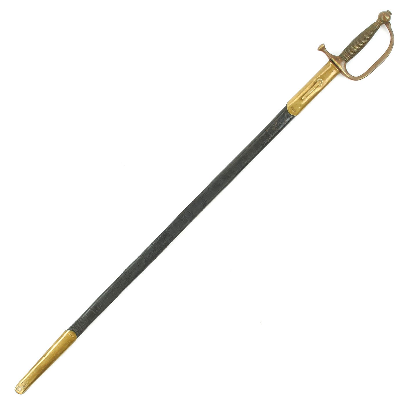Original Item: Only One Available. This is a very nice condition example of a U.S. Civil War issue Model 1840 Musician's sword, manufactured by Friedrich Potter of Germany The sword measures 34 1/2" overall, and has an all-brass hilt, with a simple crossguard, which is an extension of "D" hand guard enclosing the knurled hand grip. Comes complete in its straight brass-mounted leather scabbard with intact frog hook.