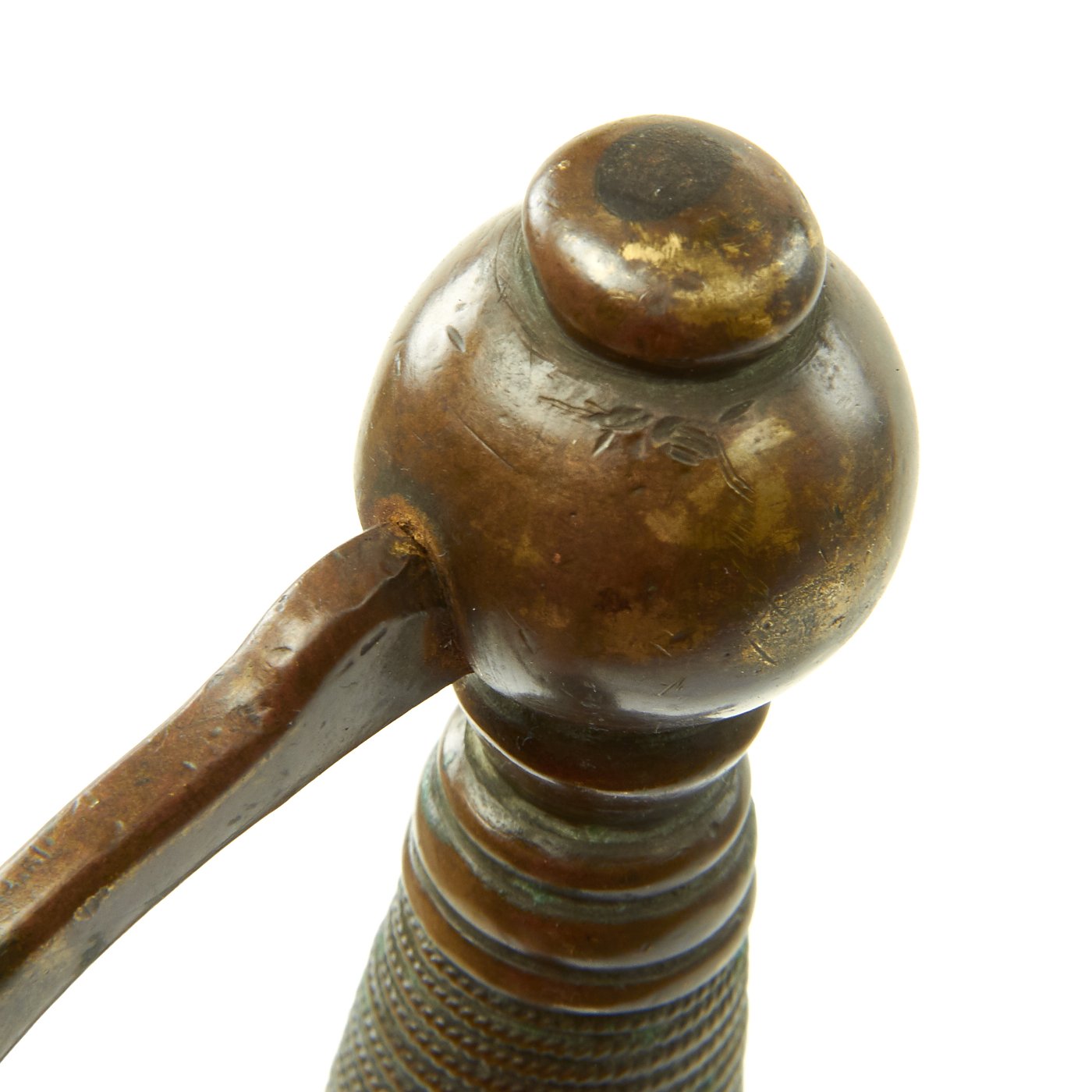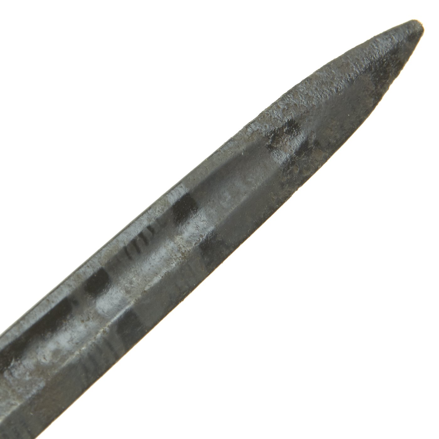 This sword is in very good shape, but does show use and damage to the edge of the blade. There is also significant oxidation on the blade, particularly near the tip, which is a bit rounded. We do not know whether the wear is from combat, or use after the war.