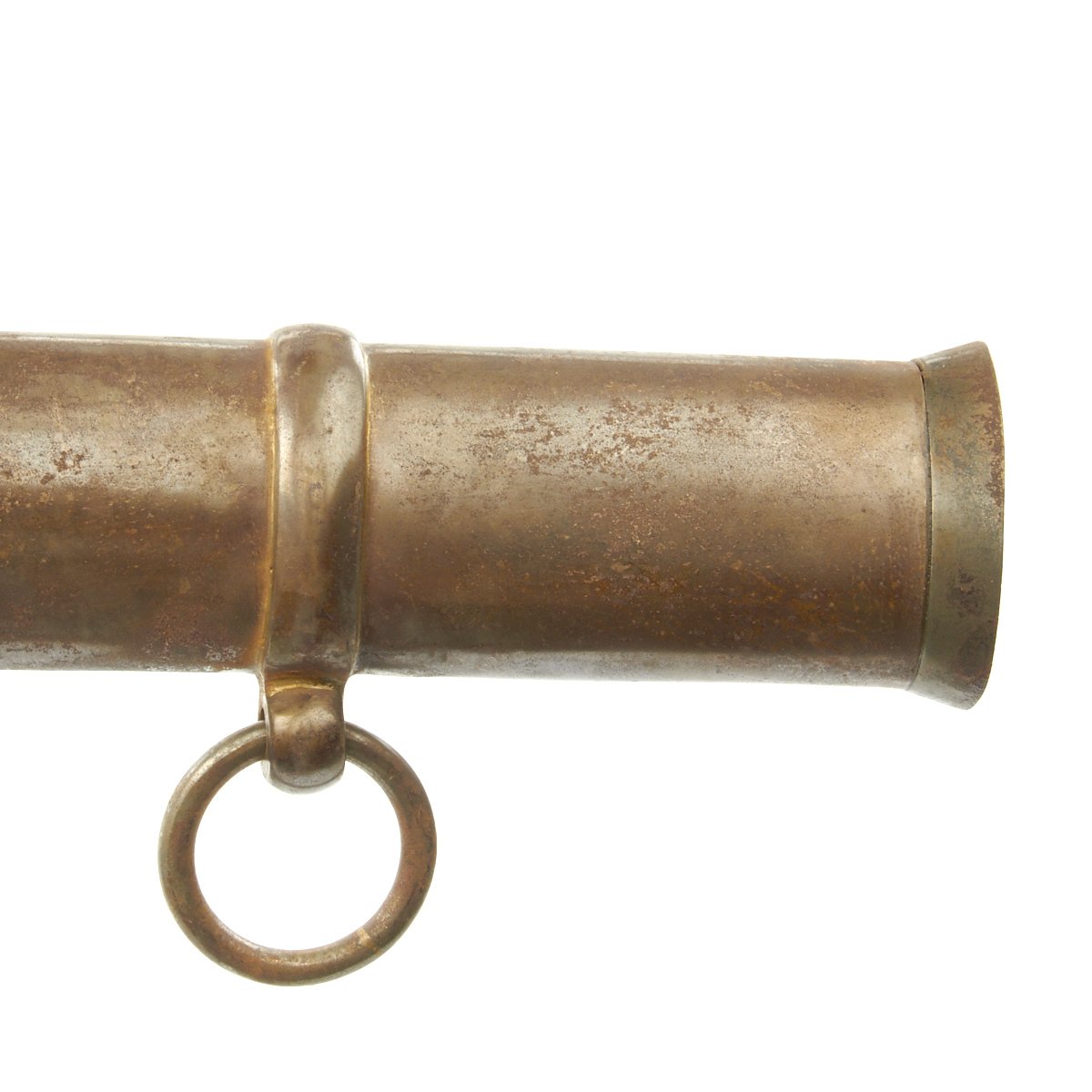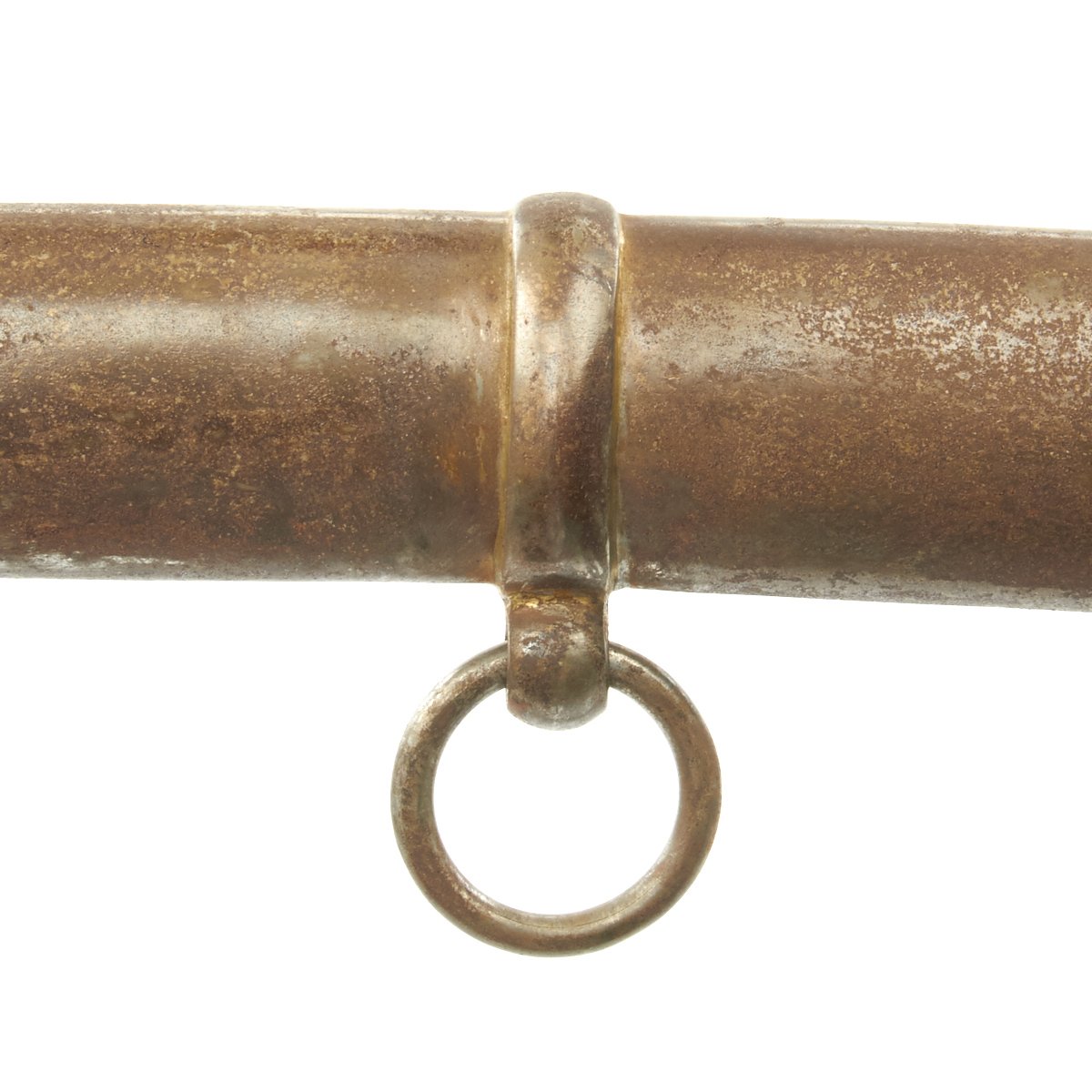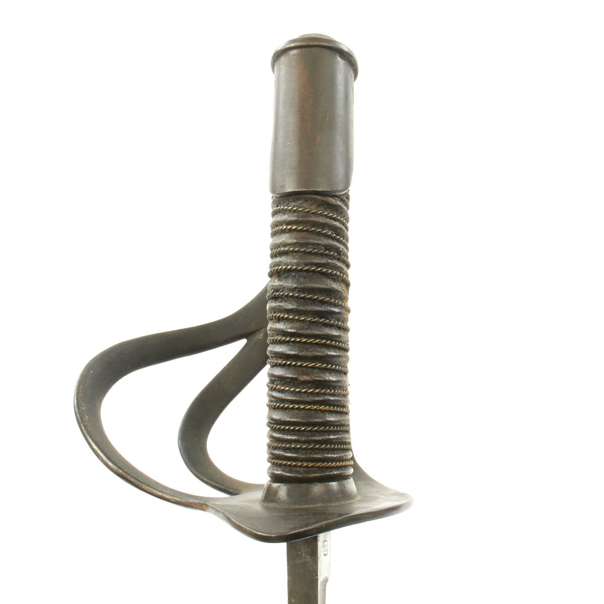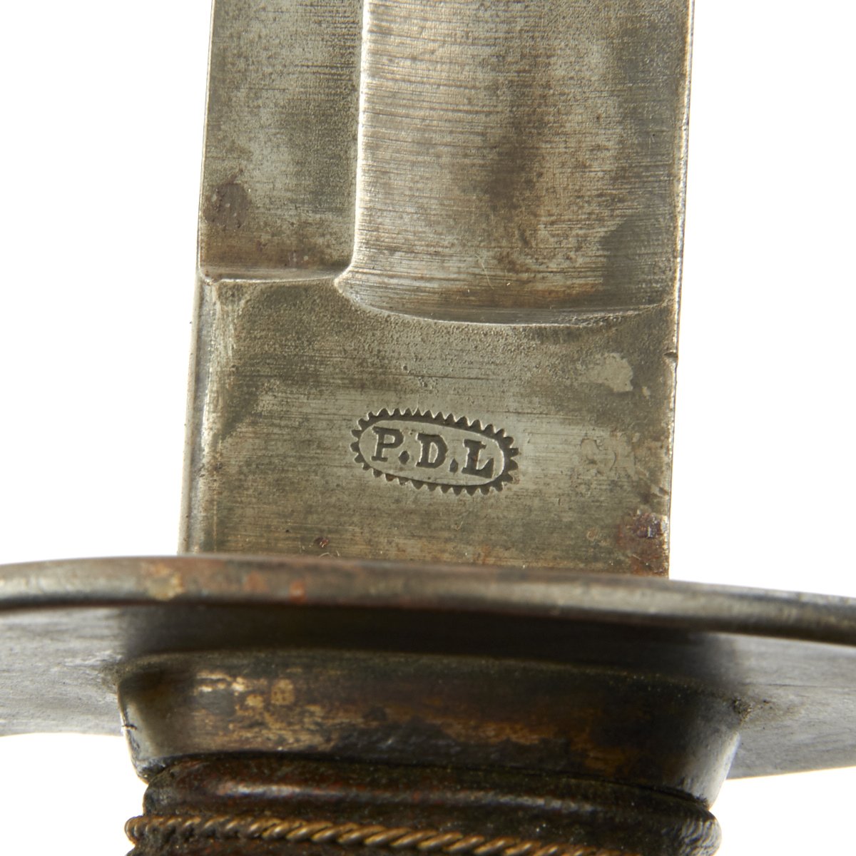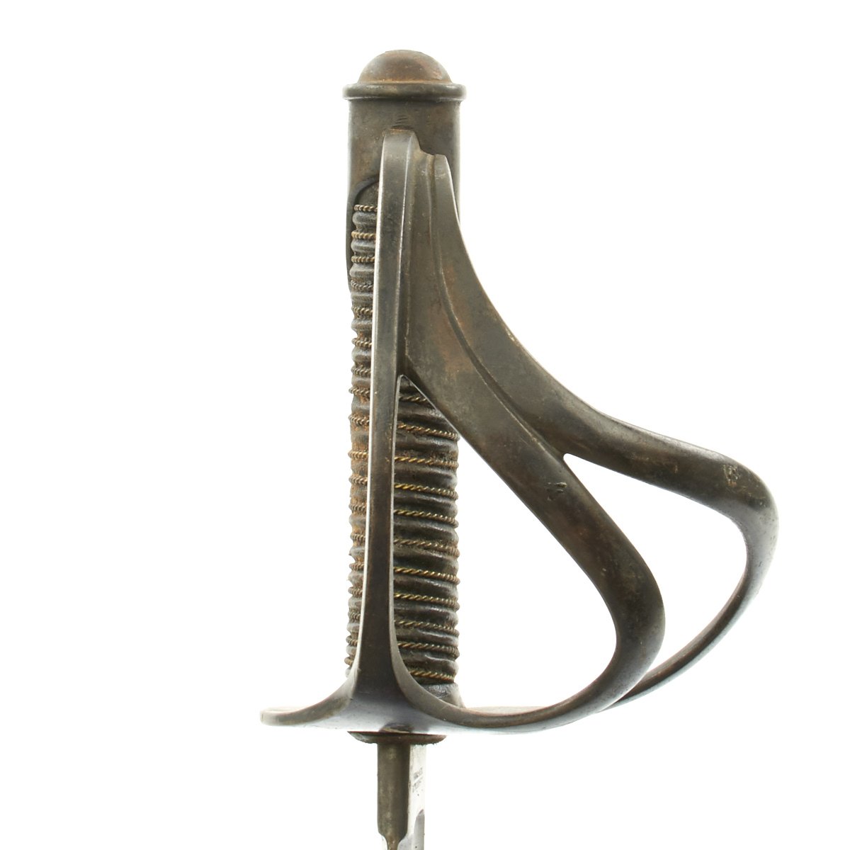 "P.D.L" inside an oval of dots, is the maker marking for P. D. Lüneschloss, Fabrik blanker Waffen, located in the legendary blade-making city of Solingen. The company was founded in 1810 by Peter Daniel Lüneschloss, and existed well into the 20th century. During the 19th Century, they were one of Europe's leading Sword Makers of the period, and had a booming export business. Many blades were imported by Tiffany & Company of New York City and retailed bearing the "TIFFANY" signature. This sword conforms exactly to the M-1840 U.S. Heavy Cavalry pattern however the interesting difference is that the mounts are all steel rather than brass, a rare variation. The company also offered brass-mounted versions, which are much more common.