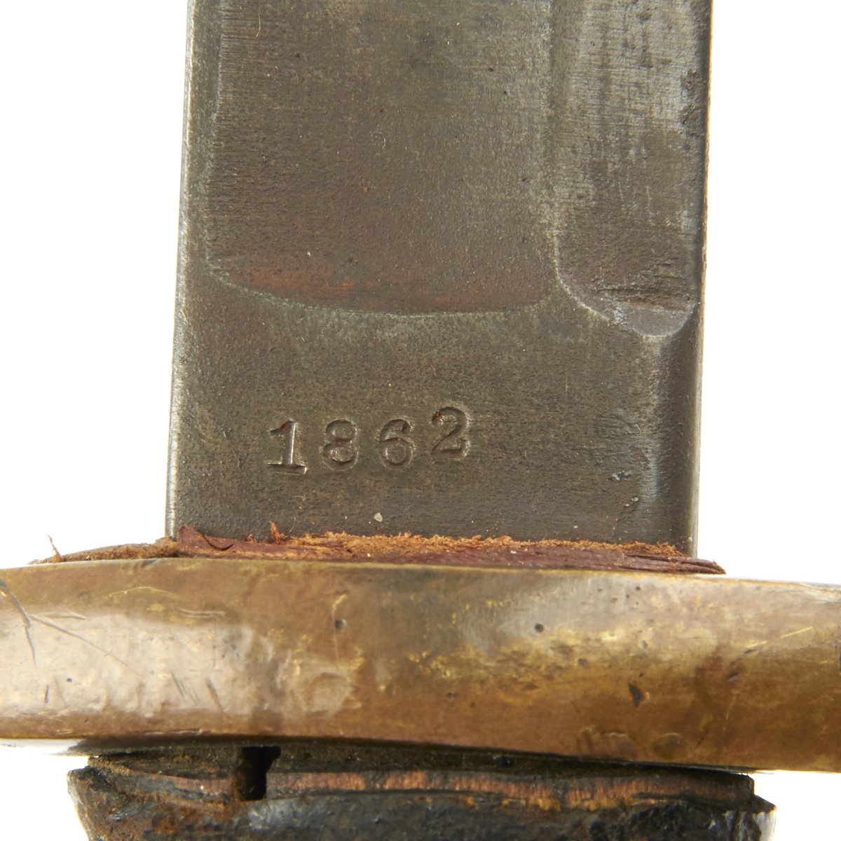 Original Item: One Only. This is a really nice untouched example, purchased from a private collector, who left the sword as he had purchased it from Augusta, GA in 1997. The blade is dated 1862 on the ricasso with N.J. stamped on the reverse. This could be a maker mark, but most likely it indicates a link to the state of New Jersey. However due to the area where it was acquired, it's possible that the reason it has no "U.S." marking is because it is confederate linked. Definitely worth of further research!