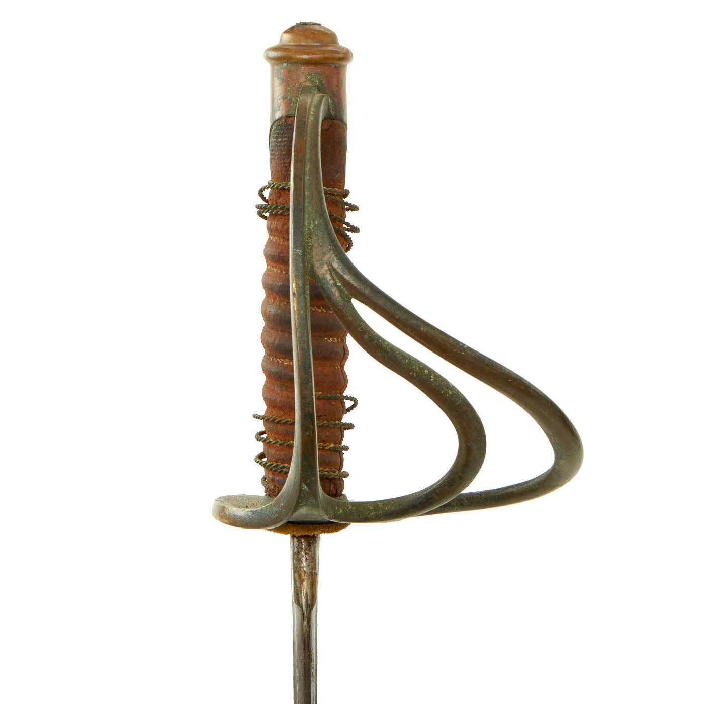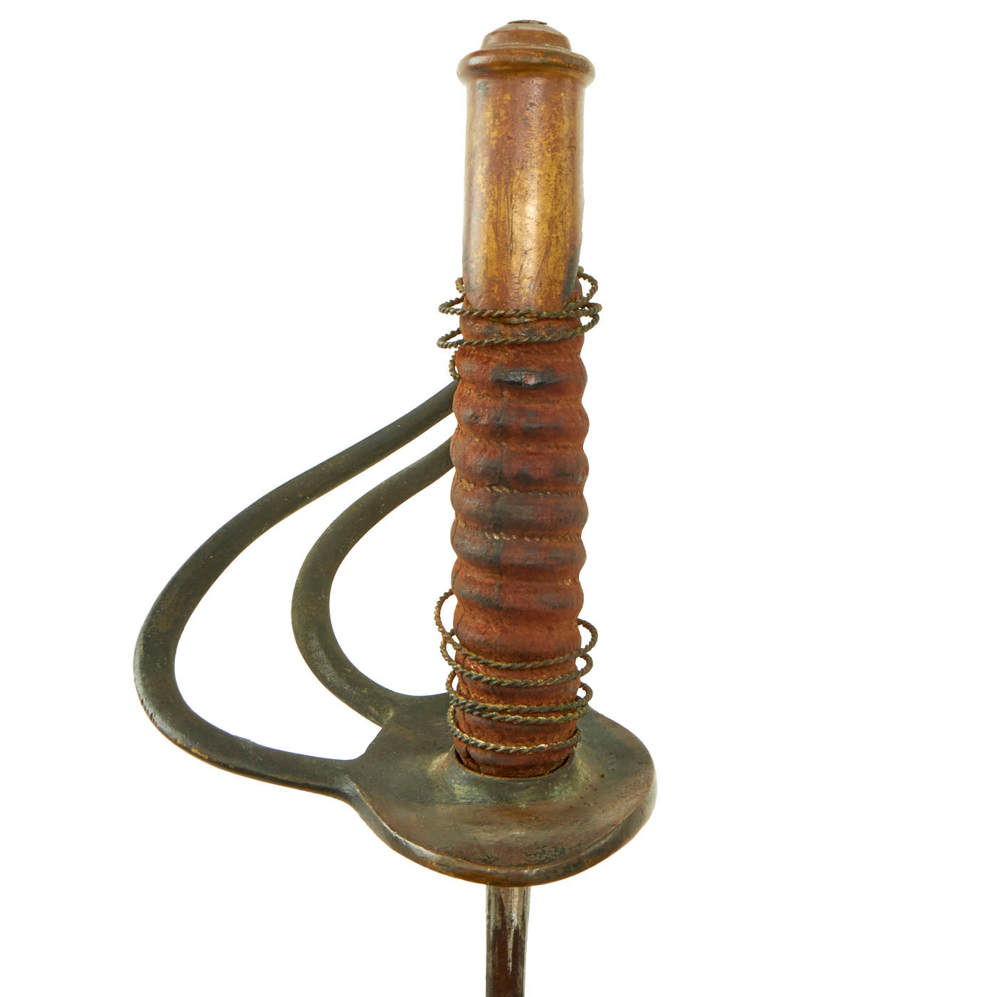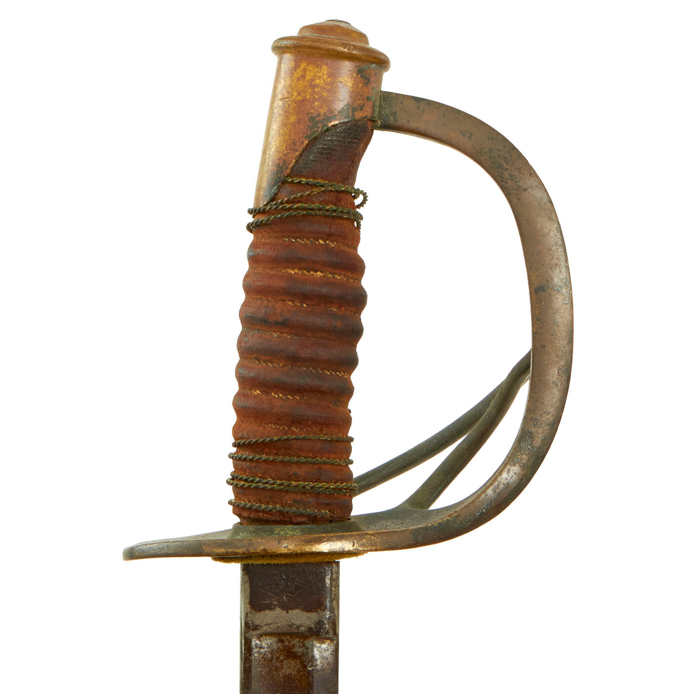 Original Item: One Only. This is a genuine imported Union cavalry trooper's curved M-1860 saber. It is in very good condition with expected wear from age and storage. The markings at the base of the blade are fairly clear, and the brass hilt is in great shape, with a lovely patina. The leather grip binding is missing with remnants of the brass wire wrap, with a bit of wear. The saber comes complete with the correct matched all steel scabbard, which is also in nice shape.