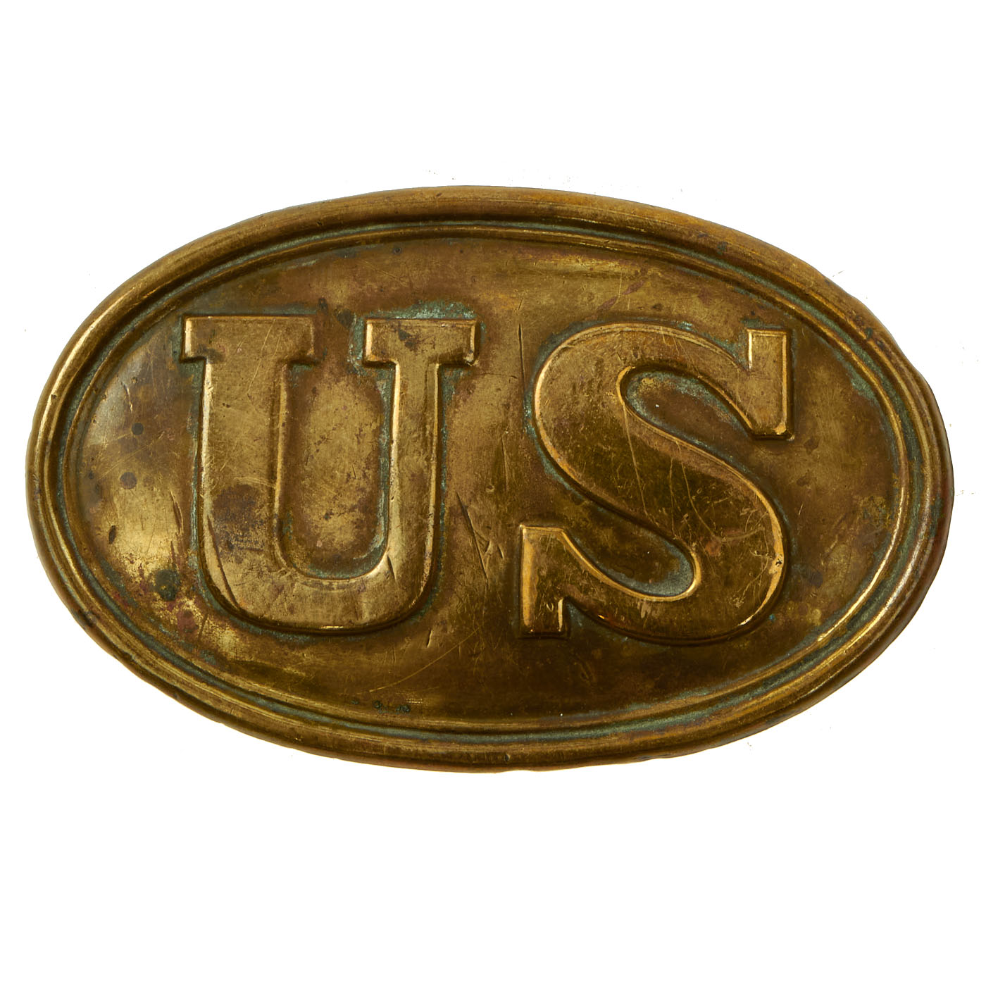 Original Item: Only One Available. This is a genuine Pattern 1861 pattern Federal issue leather cartridge box front plate. A nice unissed example, ready to display or to dress up a cartridge box that has lost the front plate.