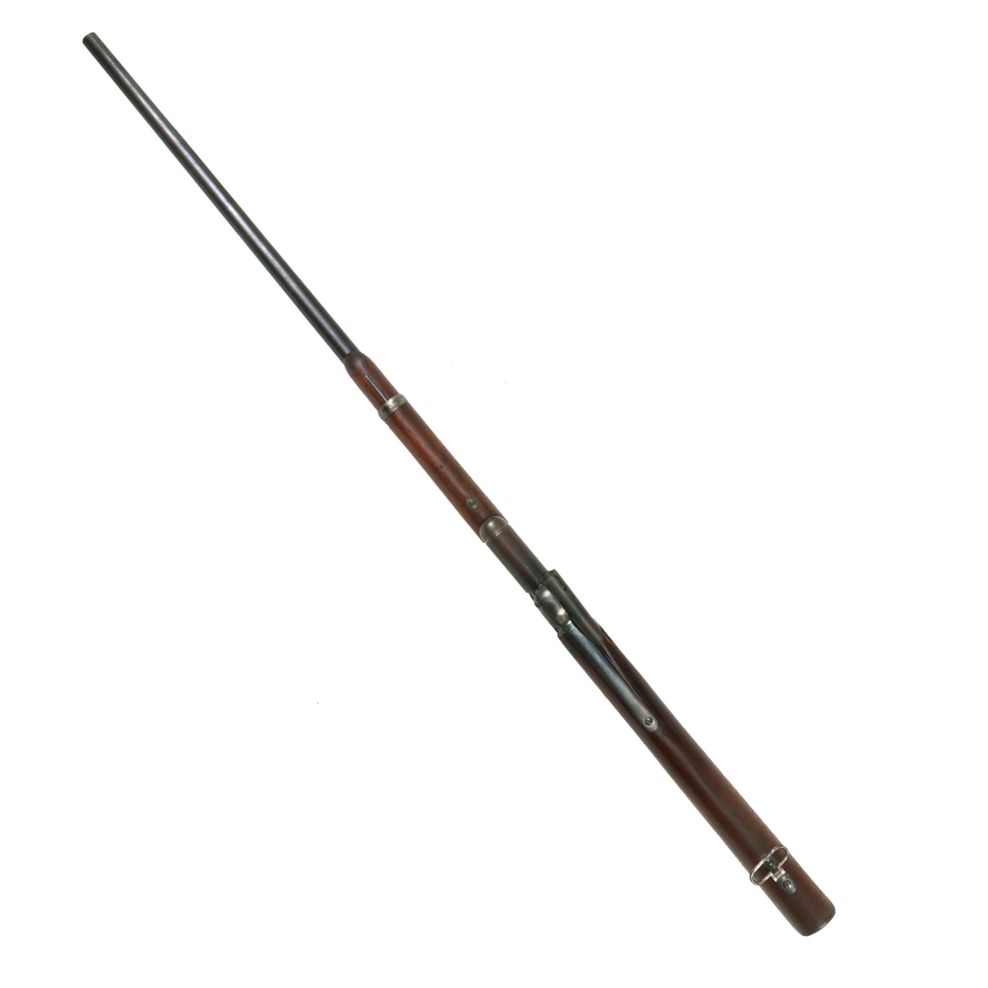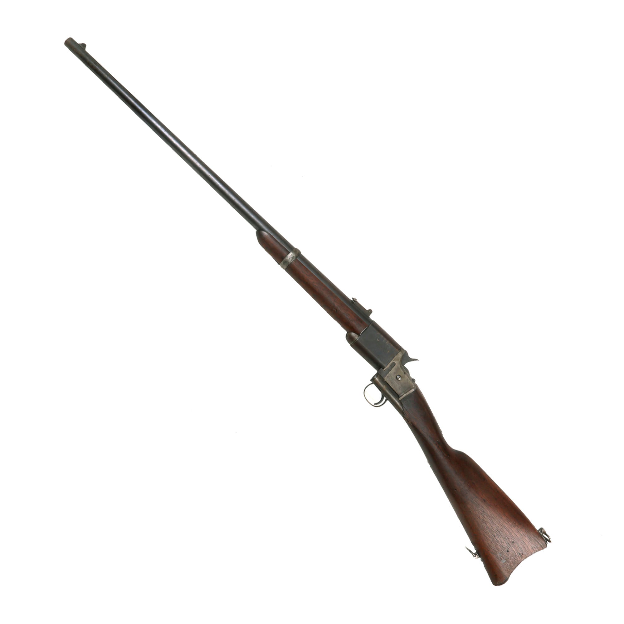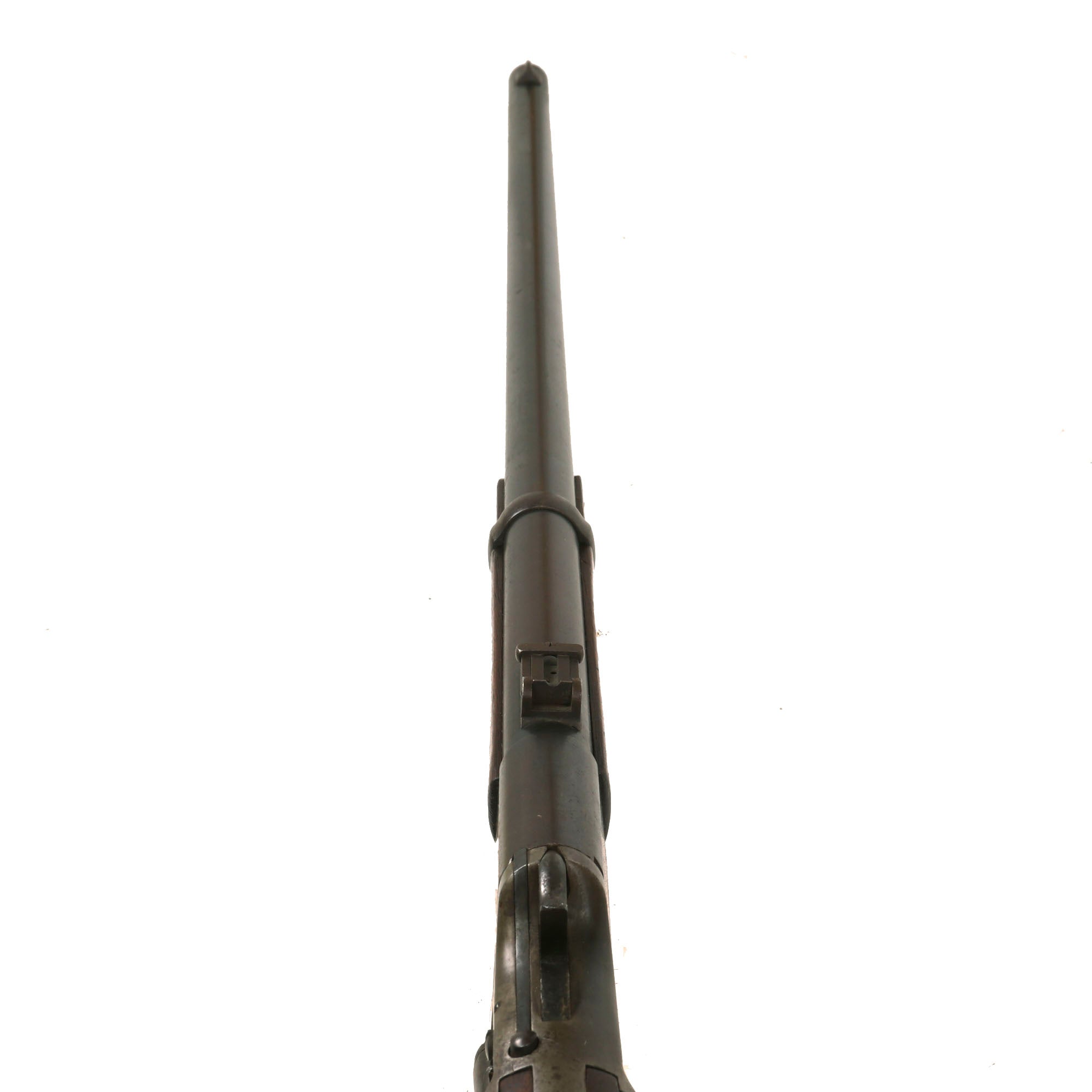 The Triplett & Scott guns were made in two lengths; a short 38 inch carbine with a 22 inch barrel, and a rifle such as this, which is just under 46 inches long with a 30 inch barrel. 2,000 carbines and 3,000 rifles were ordered January 2, 1865, all delivered by April 1865.