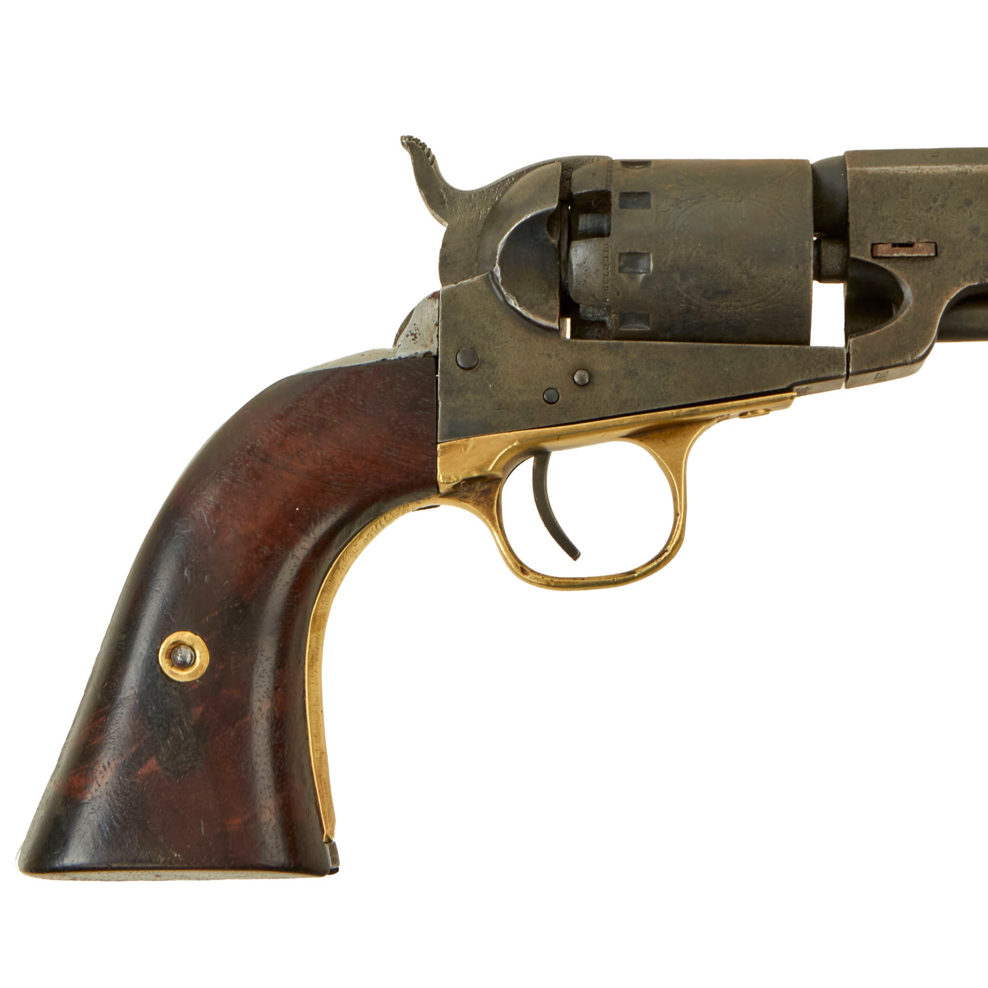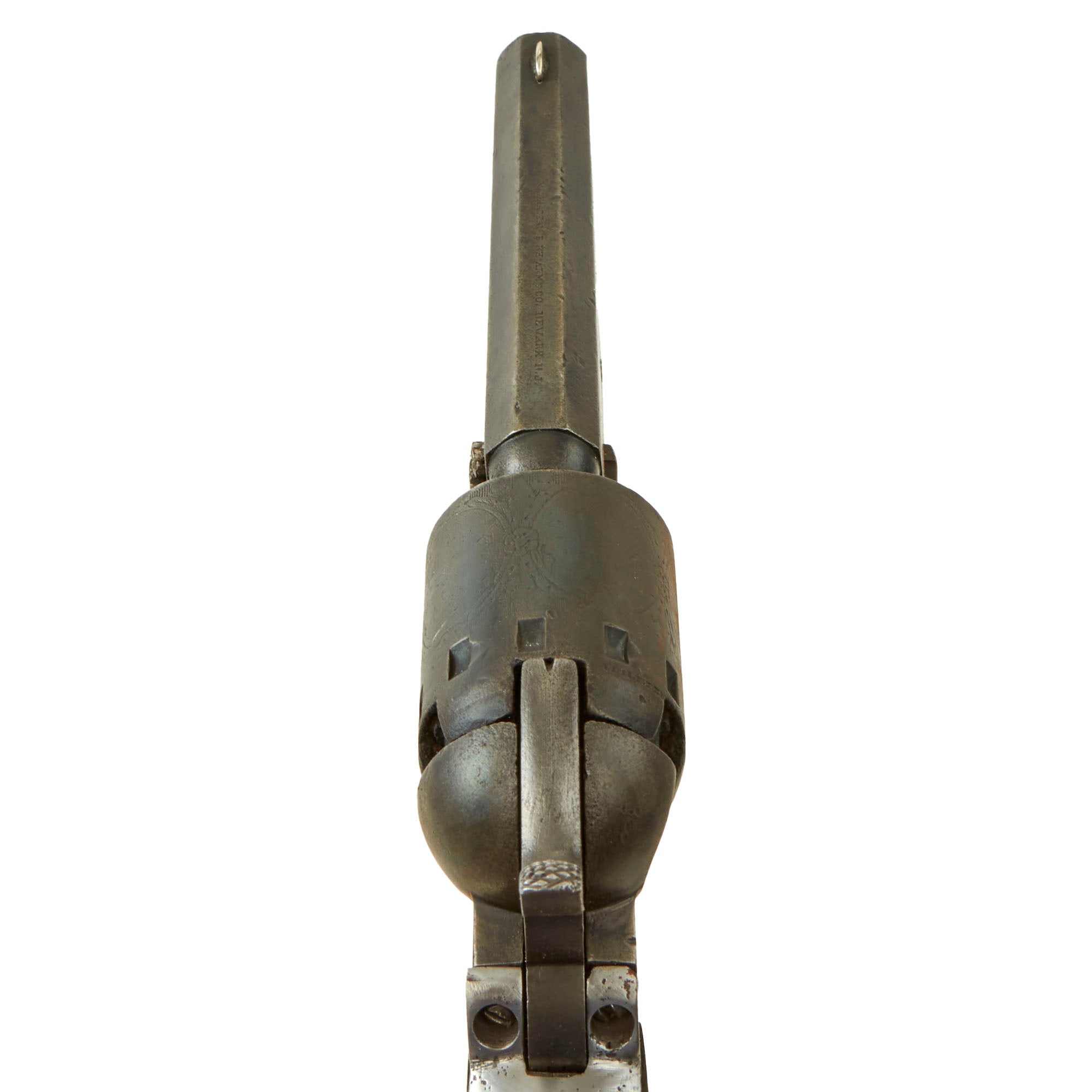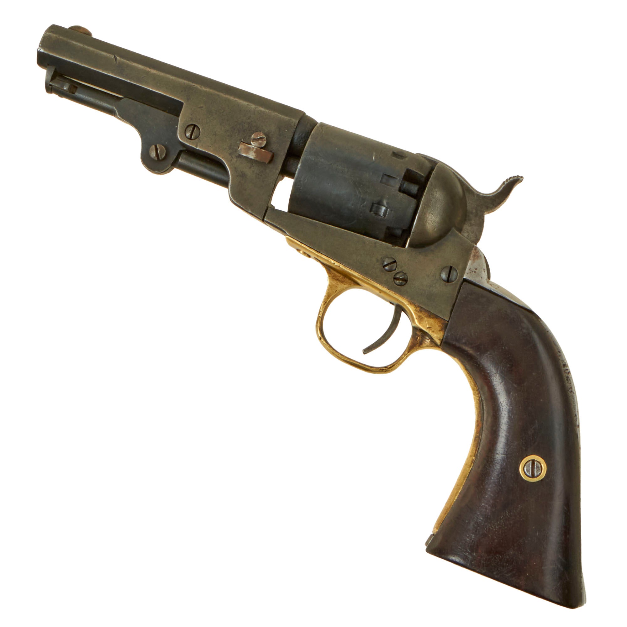 Original Item: Only One Available. Here we have a very interesting service used condition Civil War revolver, made by the MANHATTAN FIREARMS COMPANY of NEWARK, N.J.. The company was originally founded in 1856, mainly to make Colt-style revolvers once their patent ran out in 1857. This revolver looks just like a Colt Navy but it has a five shot cylinder, instead of the Colt's six.