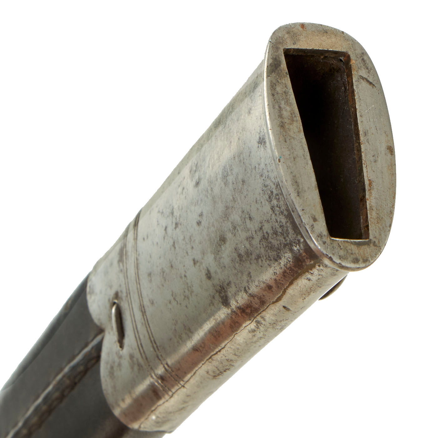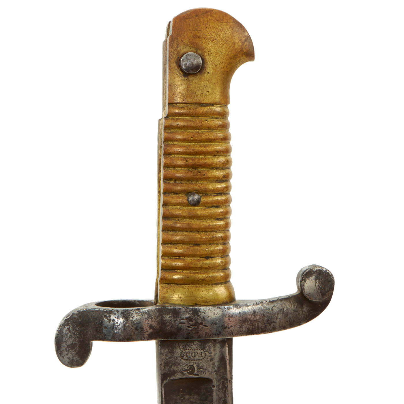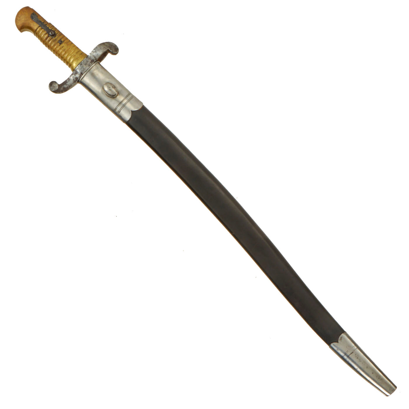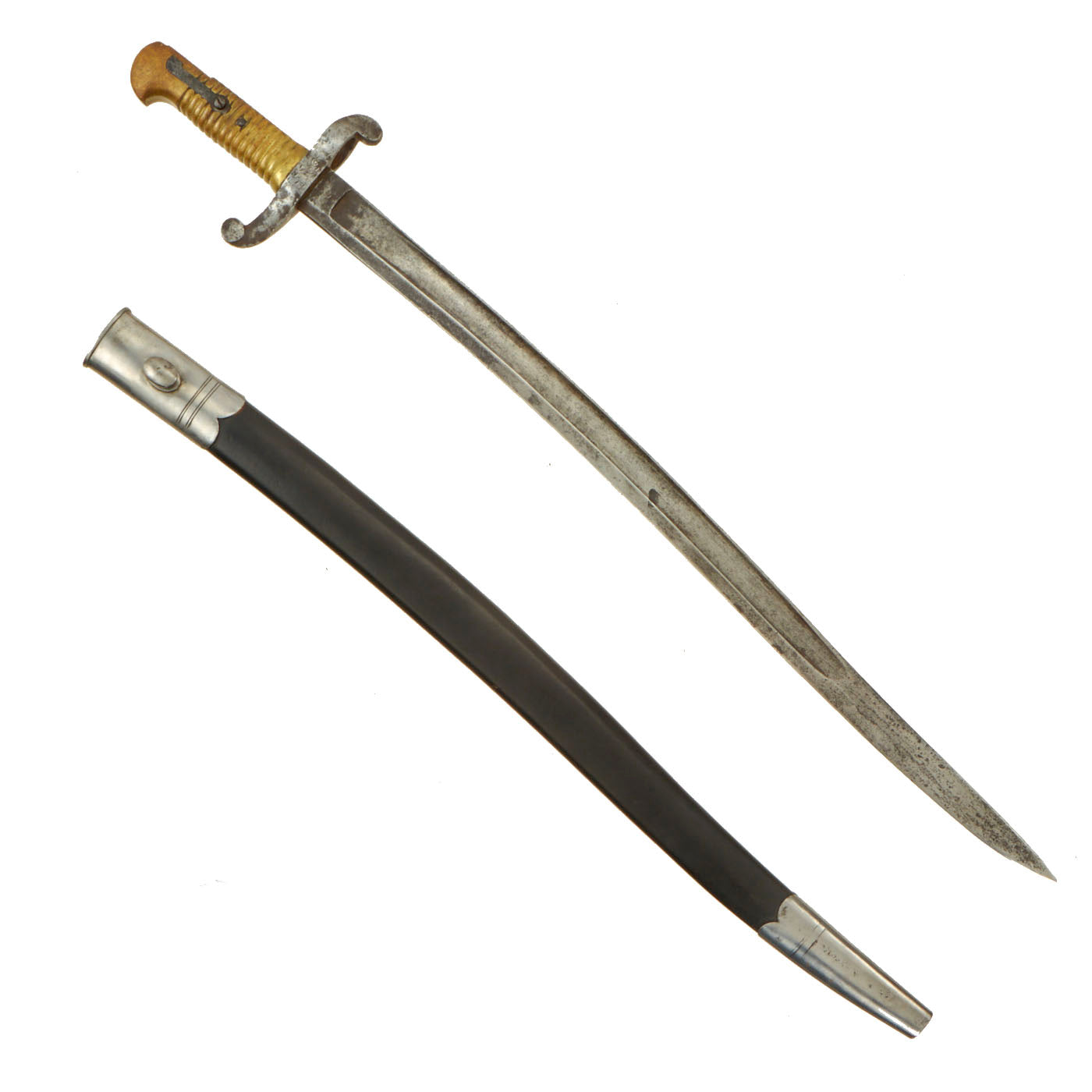 Original Item: Only One available. This Model 1842 Saber Bayonet is a copy of the French Model 1840, but with a "cock's comb" upper finial on the muzzle-ring and a slightly longer blade (22 34" vs. 20 14" on the Model 1840). Steel, single-edged, fullered (both sides), with a re-curved or "yataghan-shape" blade.