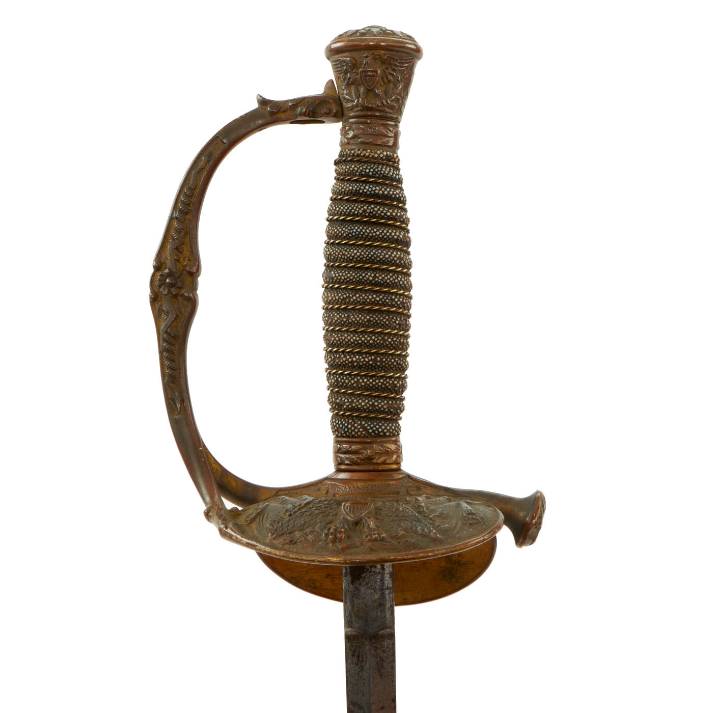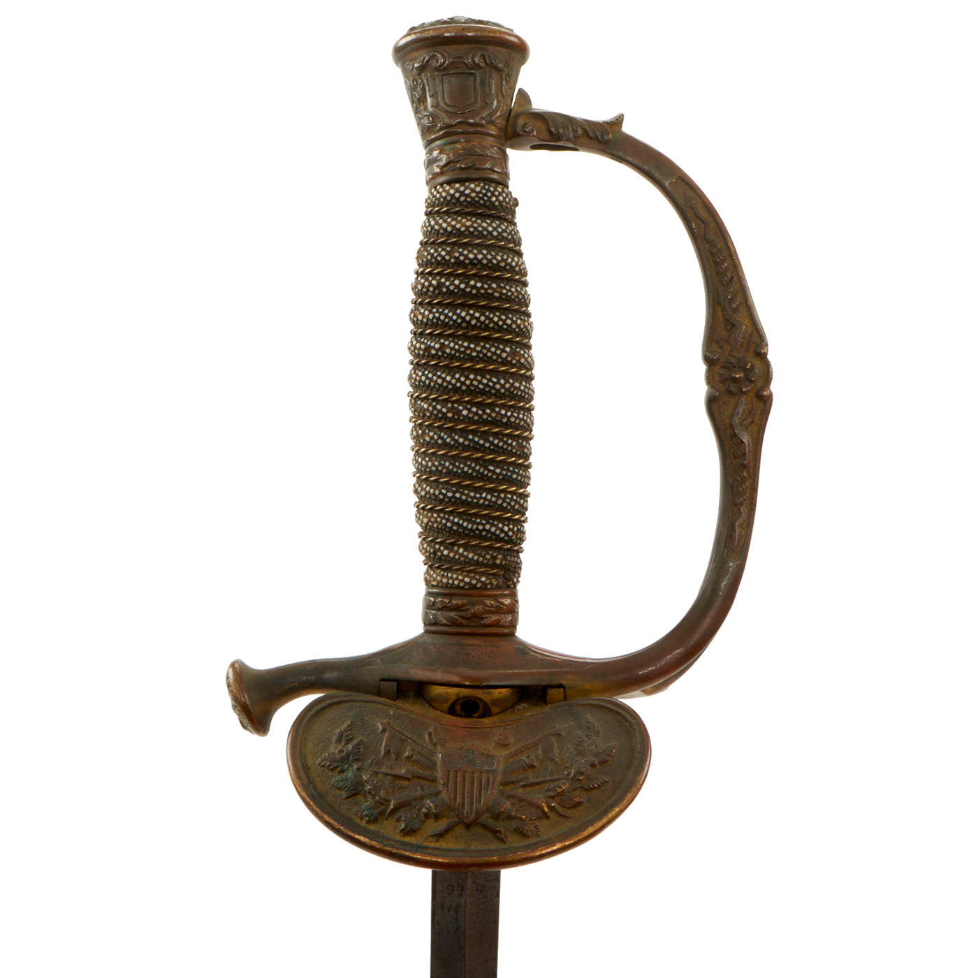 This officer's sword was adopted on August 28, 1860 acting upon the officer who would rarely if ever be called upon to wield a sword in battle. It was not mandatory until after the close of the Civil War, however in 1872, this sword became mandatory for all officers except medical staff, paymasters, mounted officers of infantry, cavalry & light artillery.