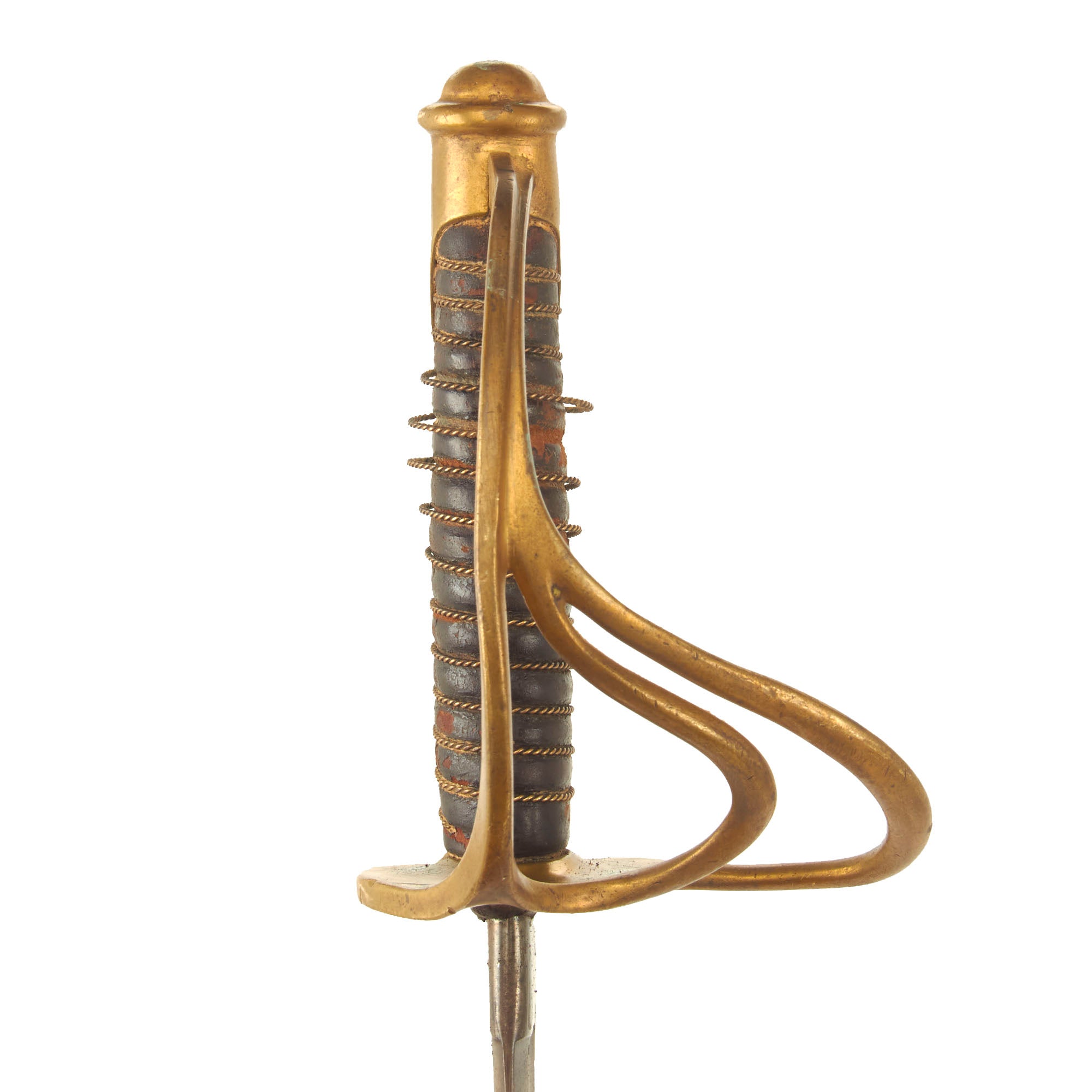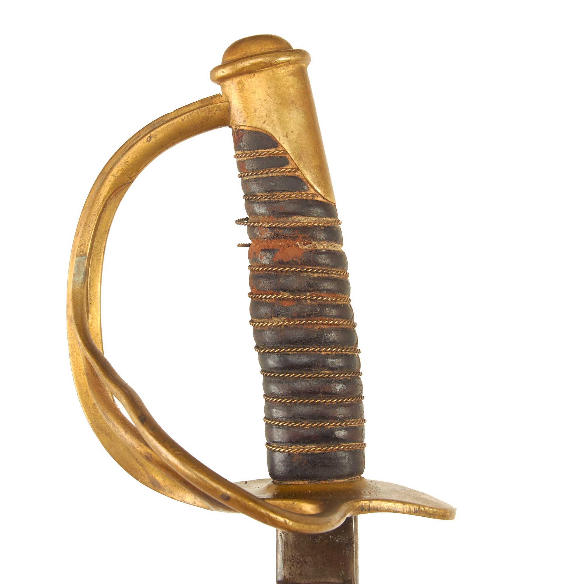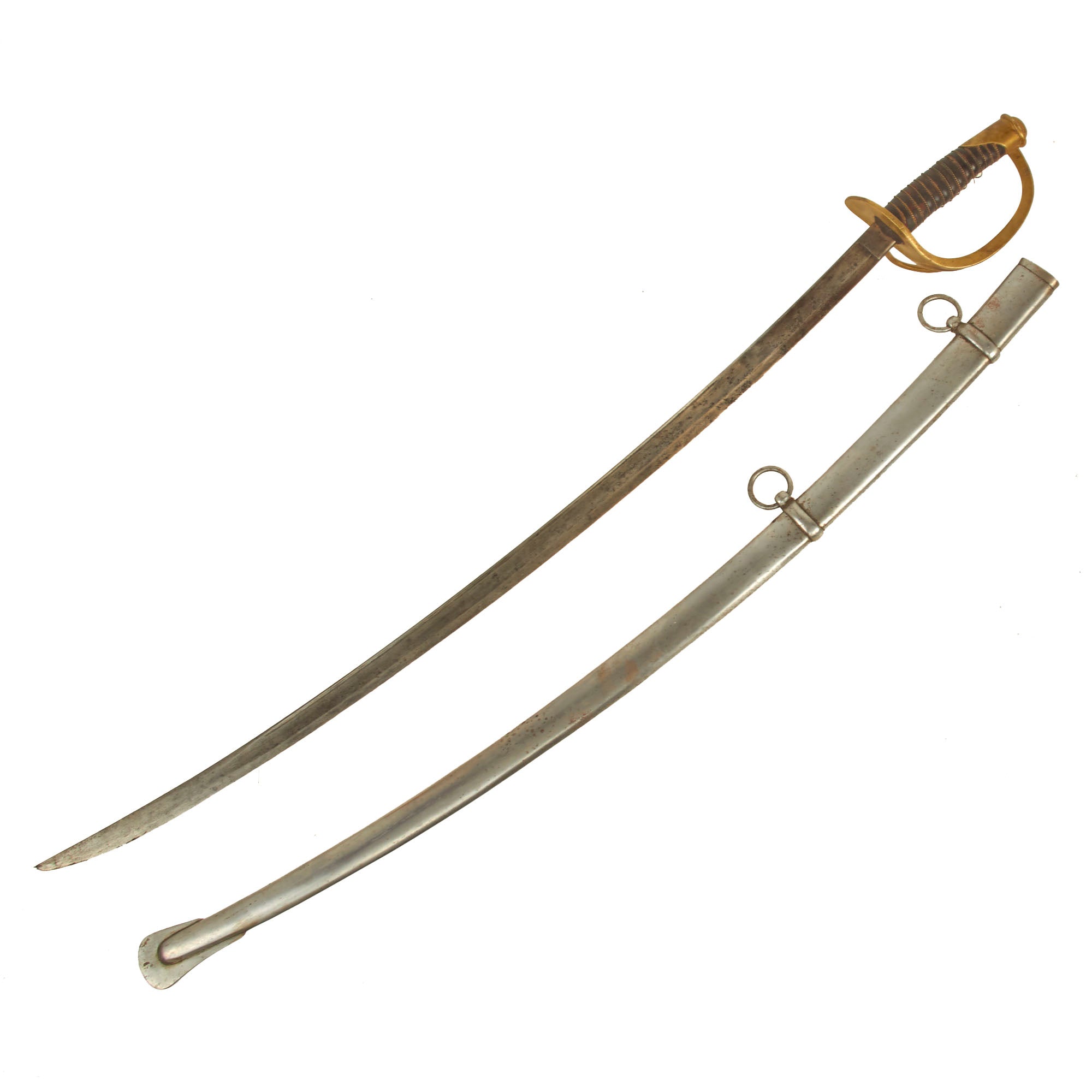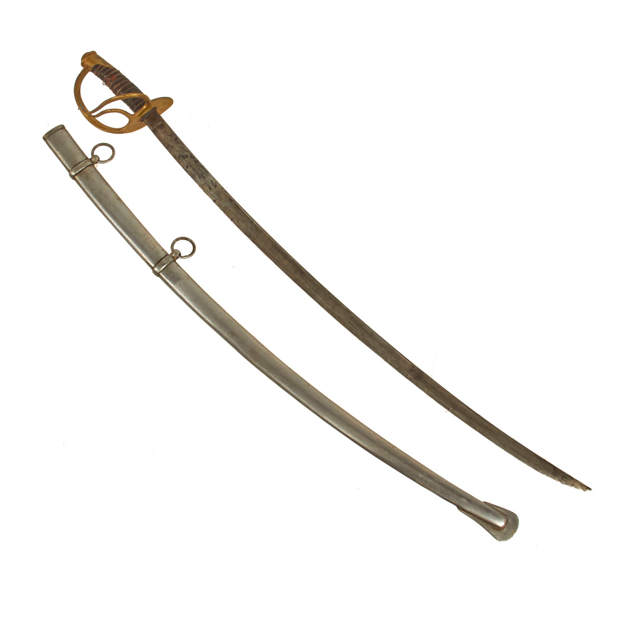 Original Item: Only One Available. This is a genuine Union cavalry trooper's curved M-1860 saber. It is in very good condition with expected wear from age and storage. The leather grip binding is relatively tight and still in place wrapped with brass wire, though a section of the wire broke. The saber comes complete with the correct matched all steel scabbard.