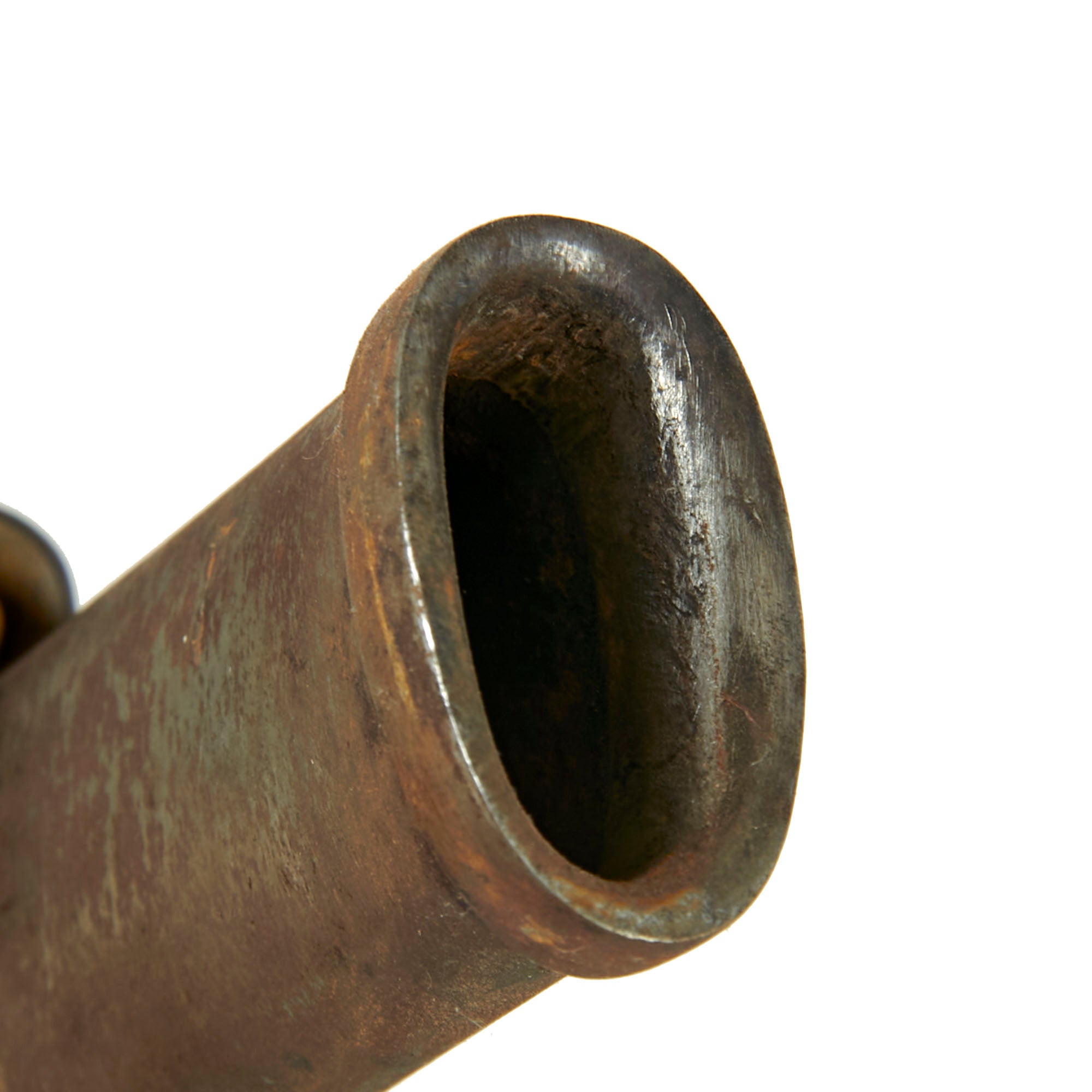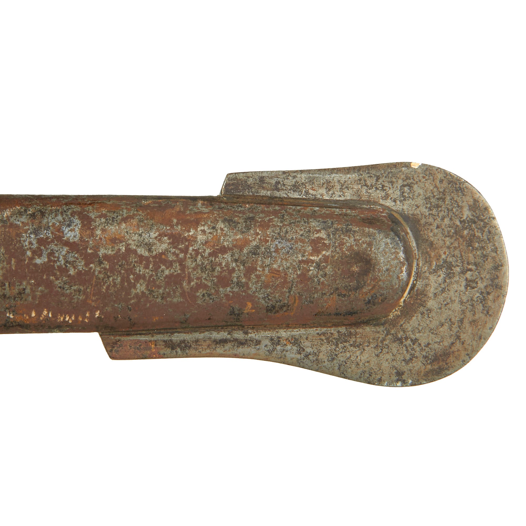 The saber comes with the original all steel curved scabbard complete with both mounting rings. Scabbard is in fair condition with heavy oxidation across the surface.