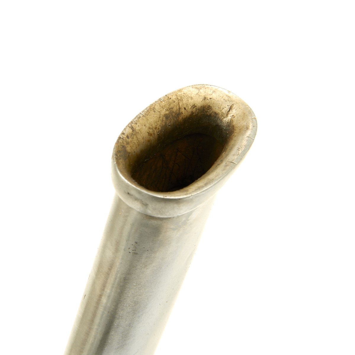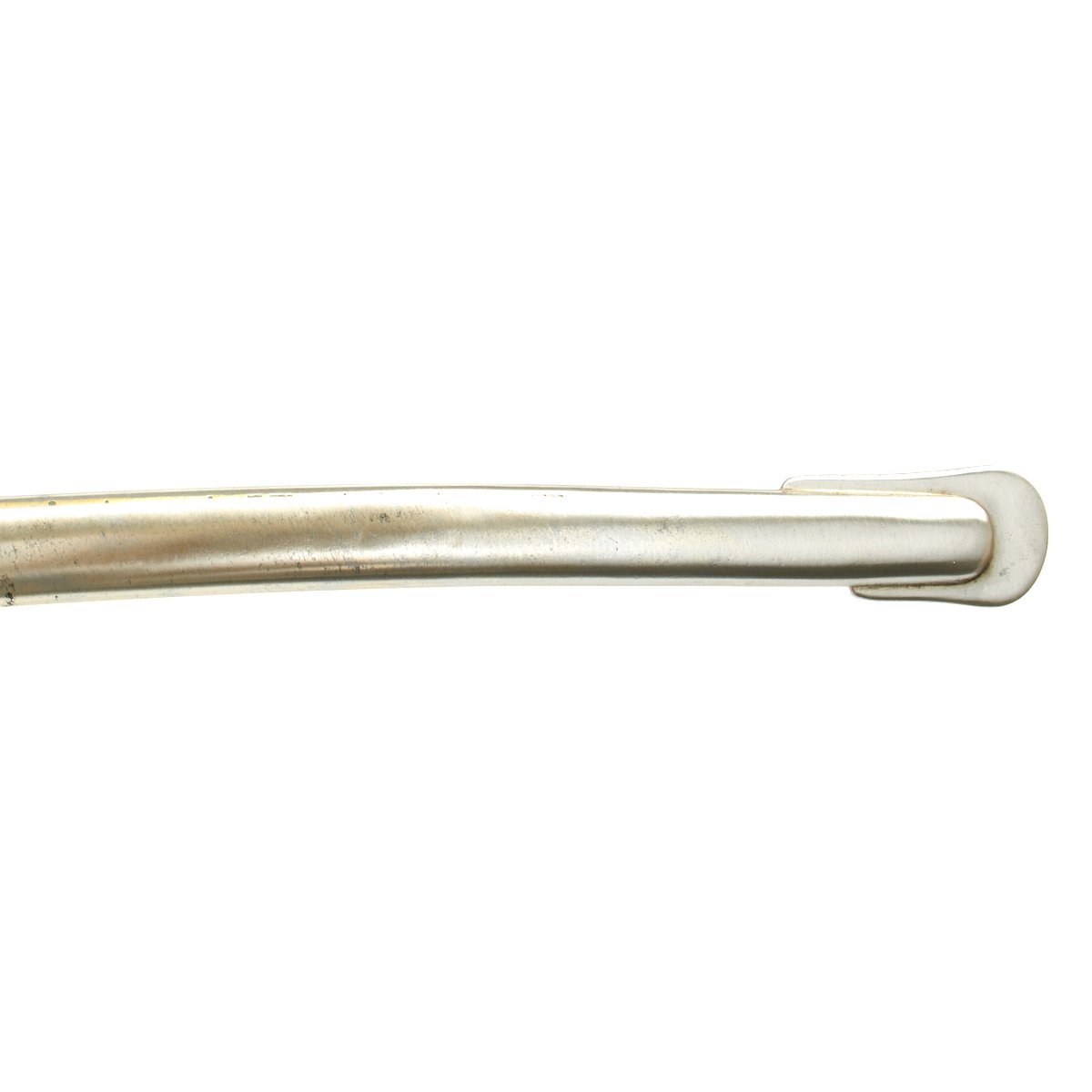 The curved blade of this example was nickel-plated just below the ricasso, and is marked on one side (partially worn off)-