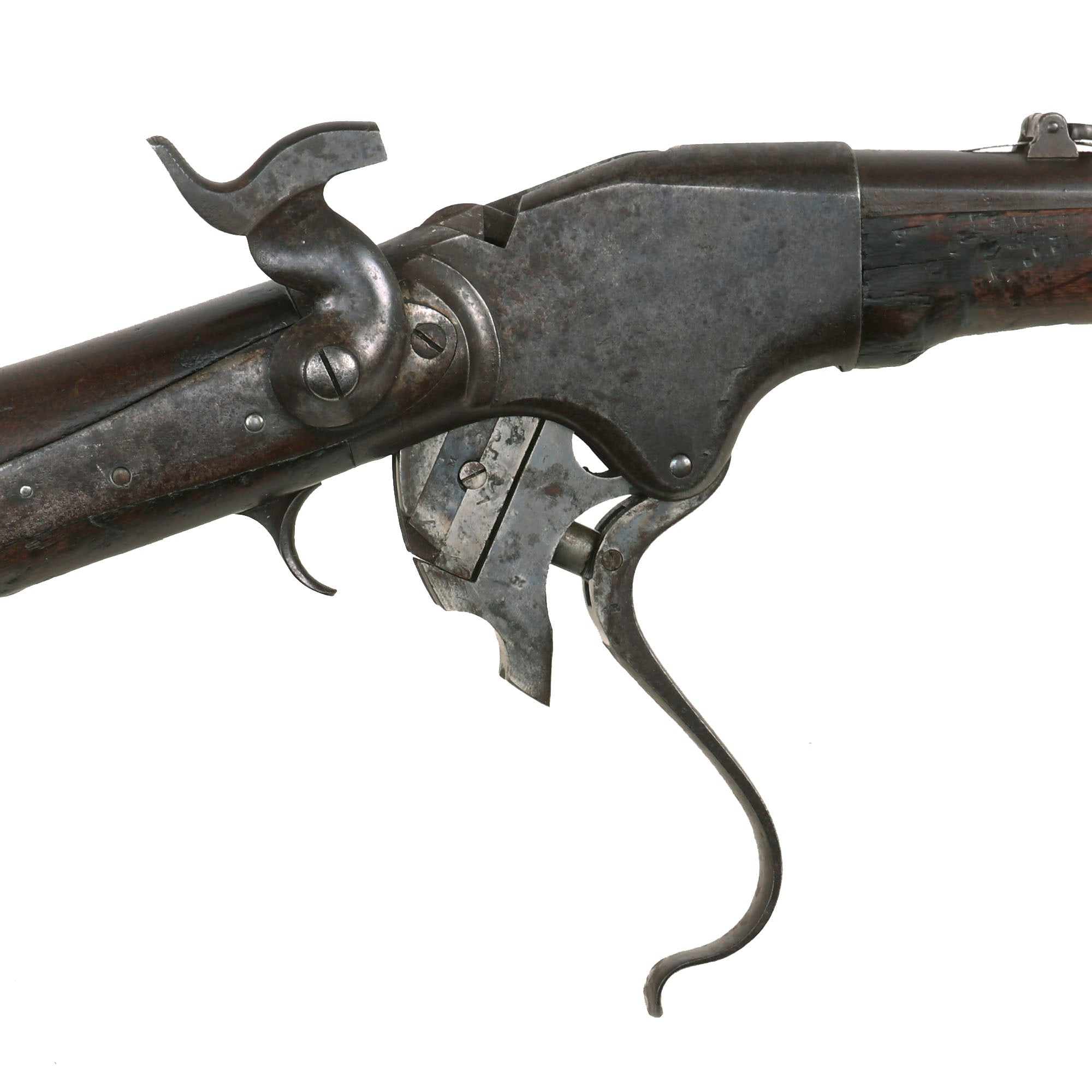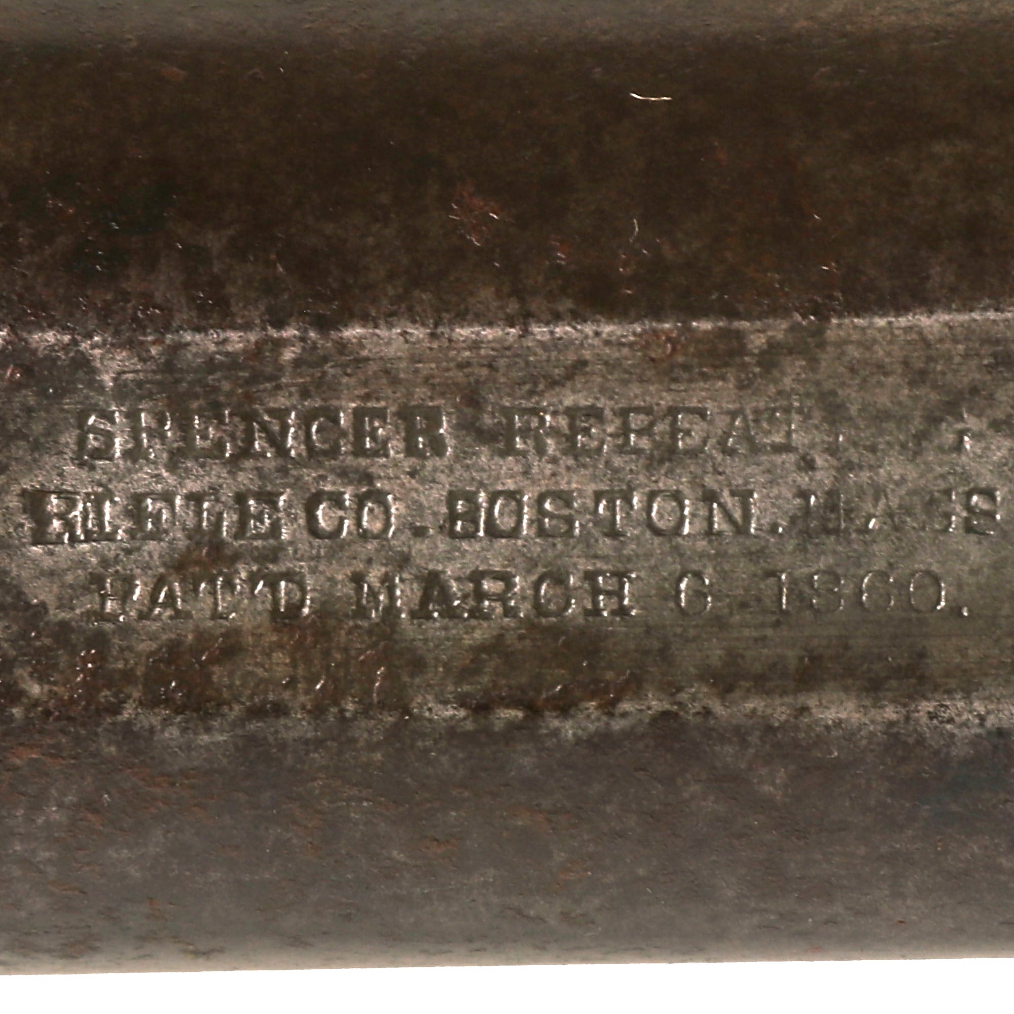 A very nice Spencer Model 1860 Civil War Carbine with Serial number of 56111, indicating mid 1864 manufacture. This number is found on the receiver tang, and on the underside of the barrel. From Spencer's initial order for 7,500 Carbines starting at serial number 11,001, 7,000 were supplied by December 1863 and the balance in early 1864. We checked the Springfield Research Service records, and this serial number does not appear. There are also not any block of serial numbers near it, and serial numbers in the range were being delivered in early 1865.