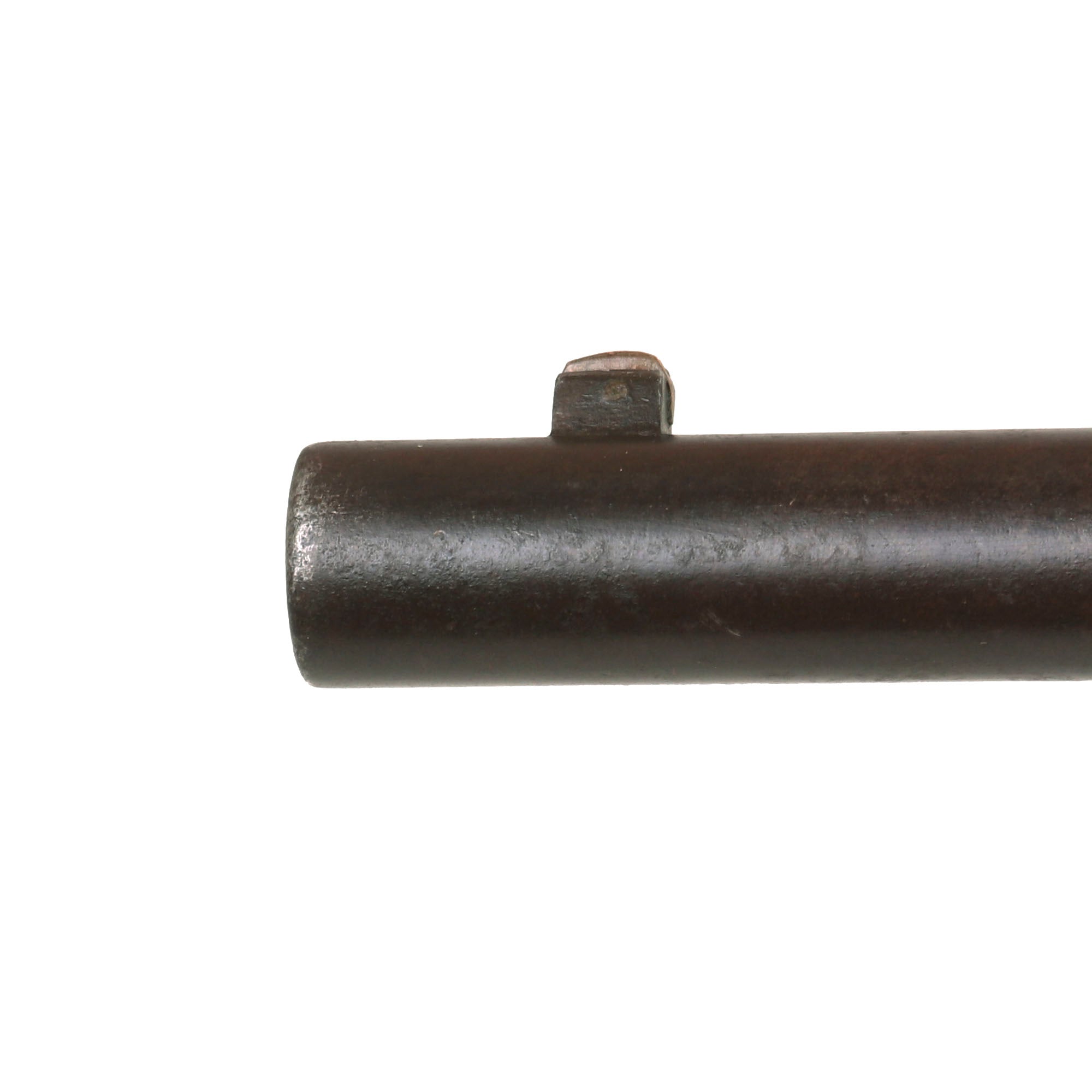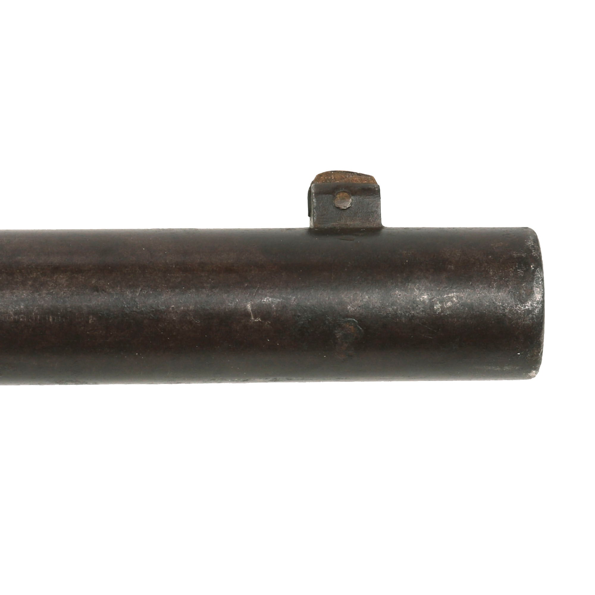 The metalwork overall is in very nice condition, showing a lovely gray polished patina overall from decades of cleaning. There is not any major oxidation we can see, just a bit of light peppering in areas. We checked the bore, and the 6 groove rifling is still in very good condition, showing clear lands and grooves, with a mostly bright finish. There is some wear, as well as some fouling and light oxidation in the grooves, but for a black powder era gun this is definitely a very nice bore! The carbine functions well, and we did not notice any issues with cycling. We did not try it with any dummy ammo to see if it could still feed. The magazine looks to be functional, with an intact spring and follower. The rear sight is present and fully functional, though the slider is definitely loose, and the front sight is intact as well