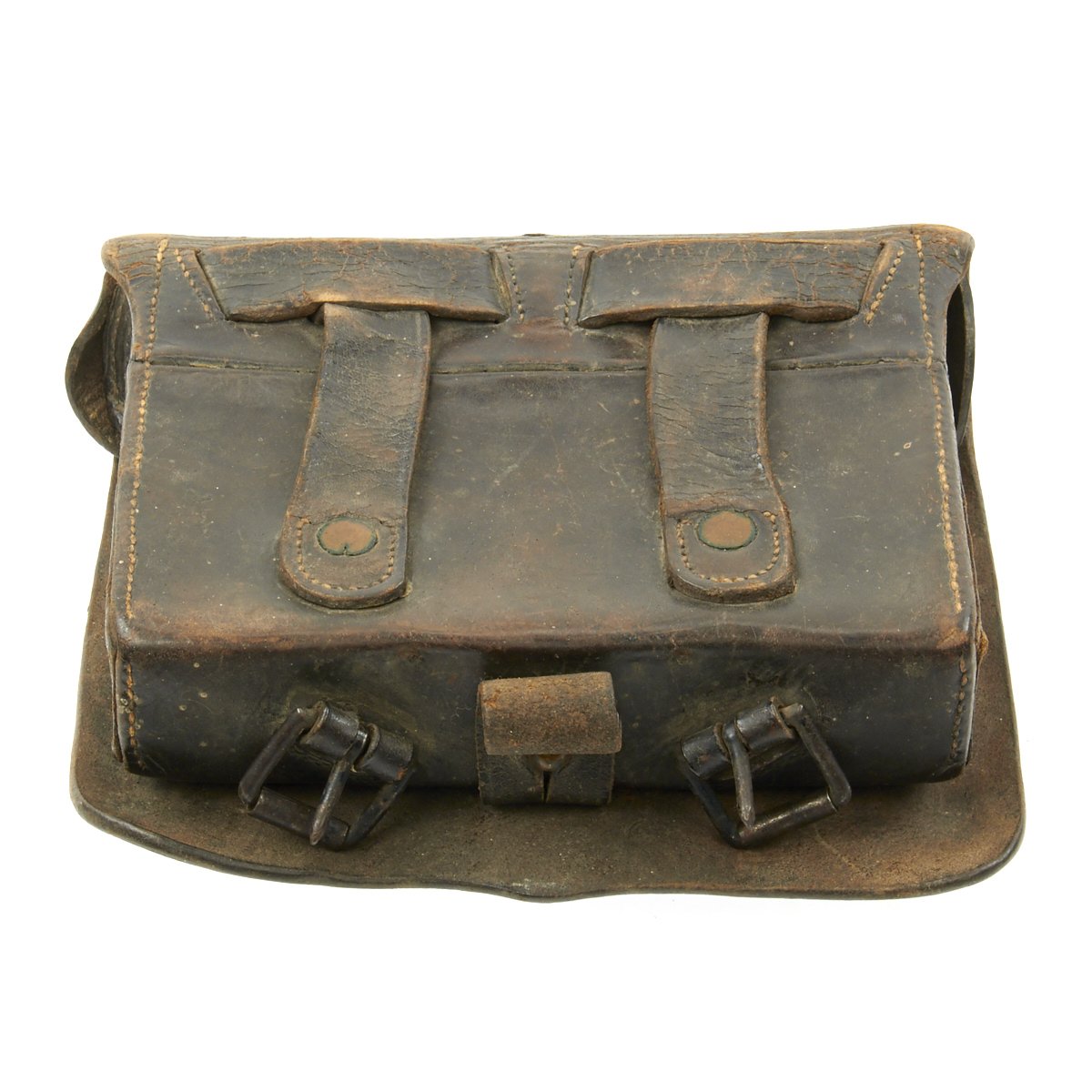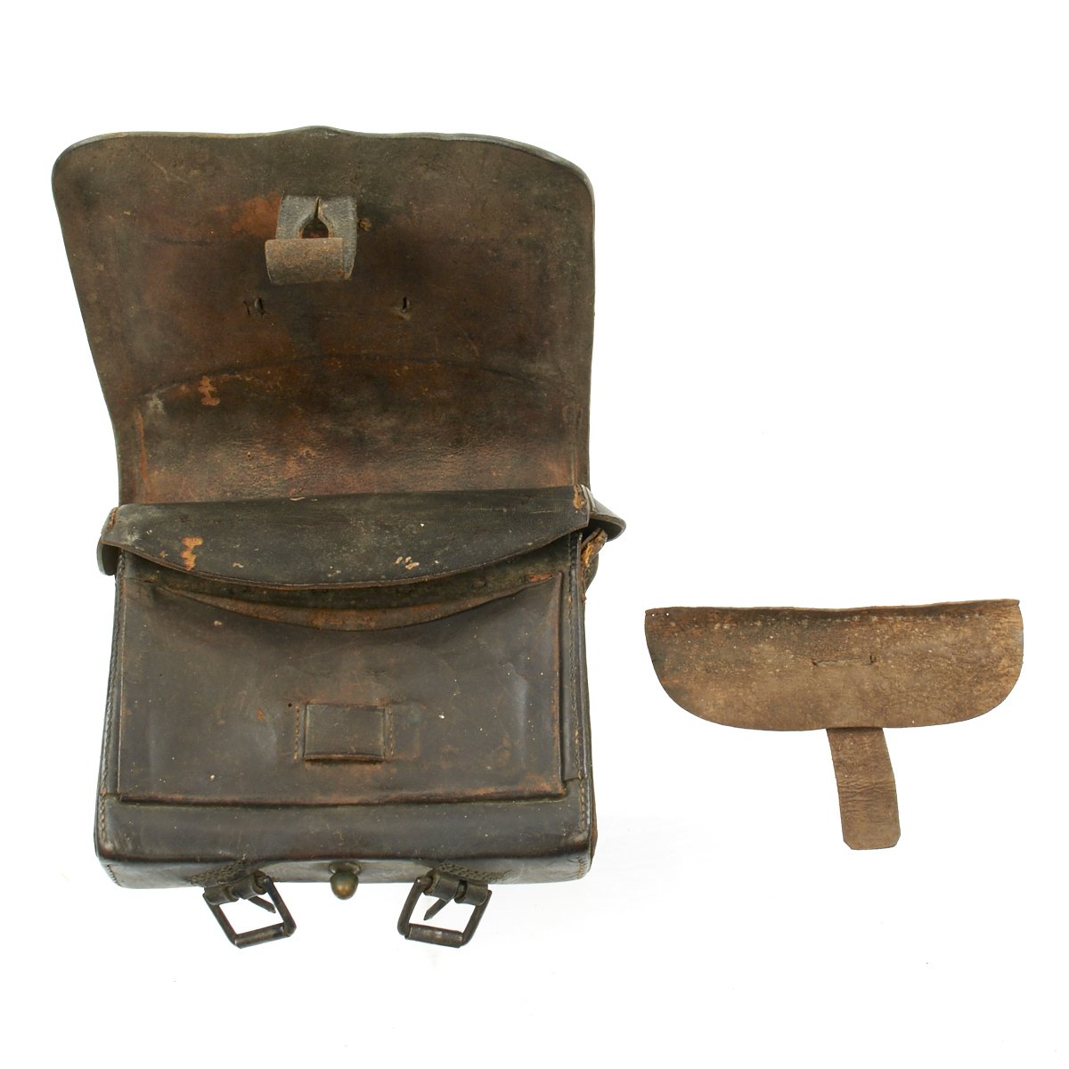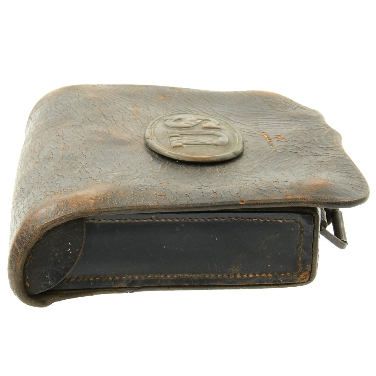 Original Item: Only One Available. This is a genuine Federal issue leather cartridge box is the Pattern 1861 pattern .58 Caliber. Outer flap has light surface wear with a latch tab that is attached by straight line stitching.