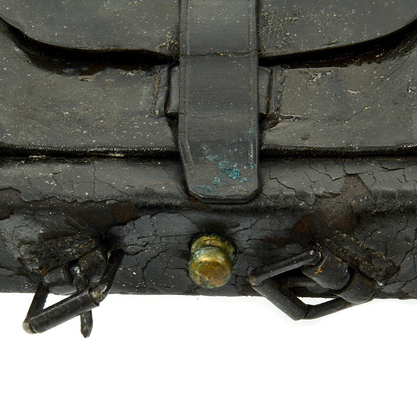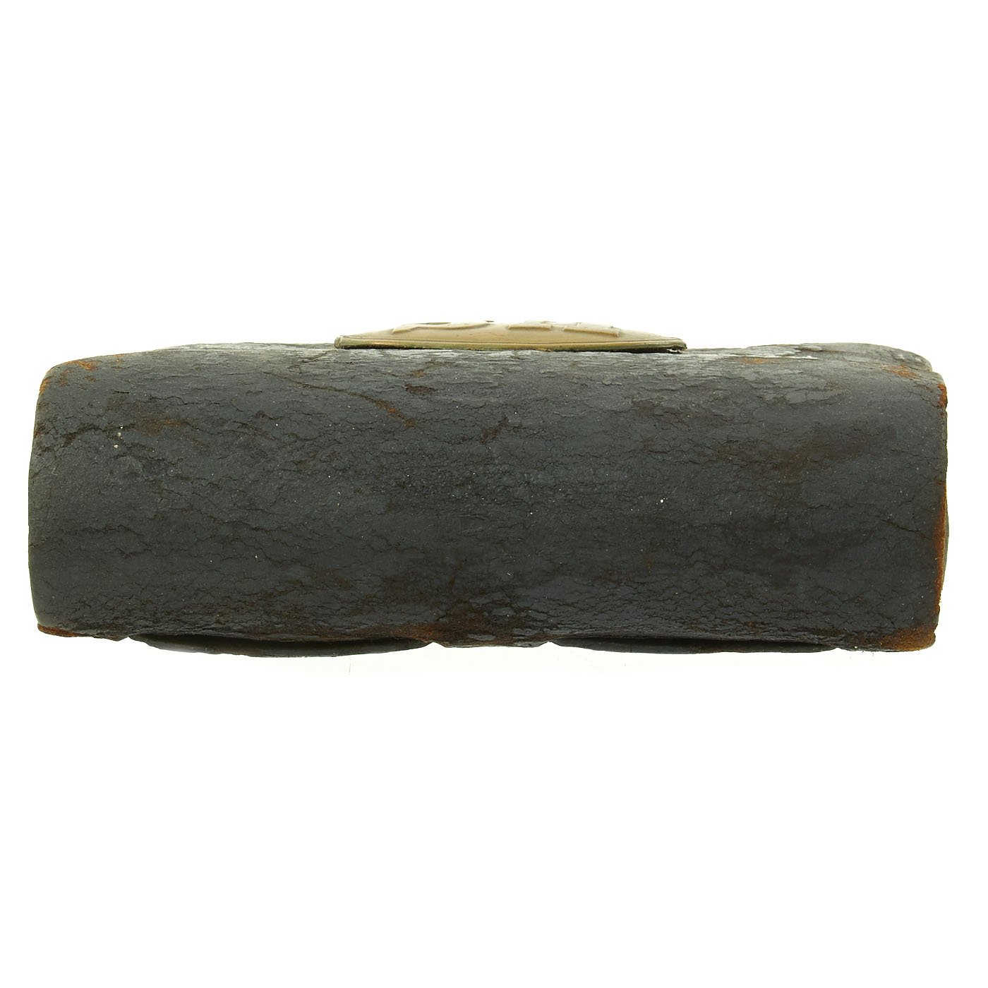 Interior flap is in very good condition and is complete with both ears. The inside flap is nicely stamped C. Peters. Both tins are present. Bottom of the box has both roller buckles. Reverse of the box has both belt loops. Best of all the original brass U.S. Plate is still attached. Offered in overall very good condition with signs of use and age.