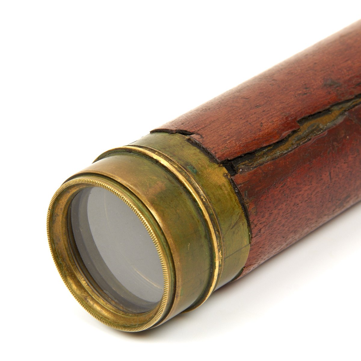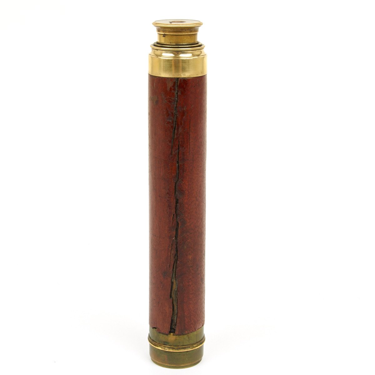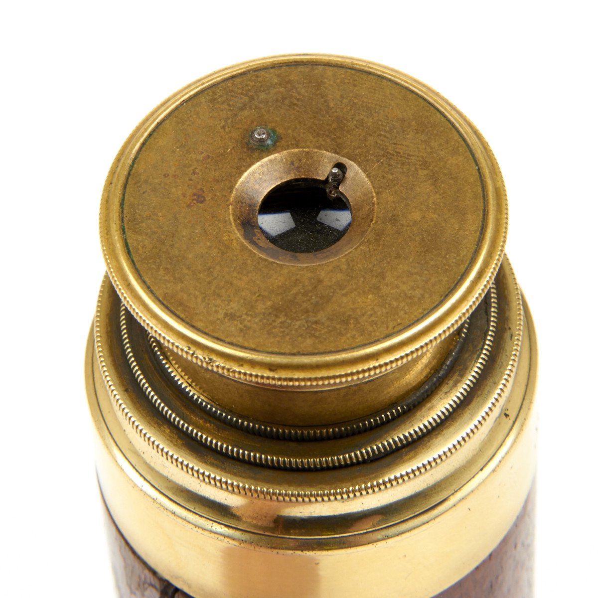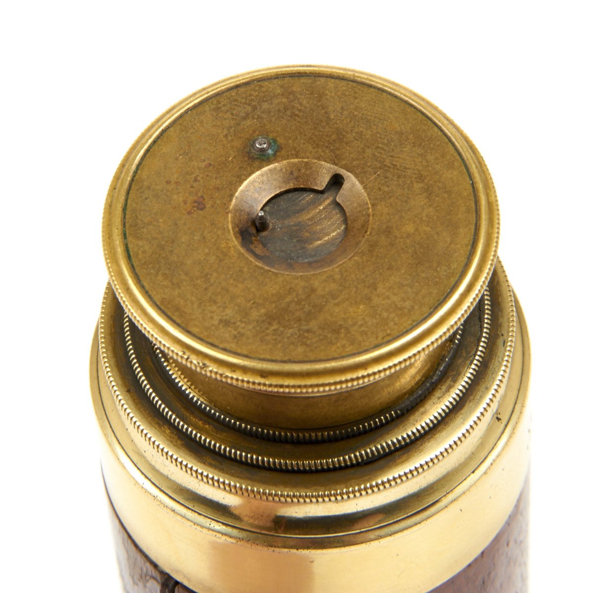 The wood laminate barrel cover has one split running the full length caused by continual wood expansion and contraction. The instrument appears to be in perfect working order. A nice accessory from a named Officer in the Union Signal Corp during the Civil War.