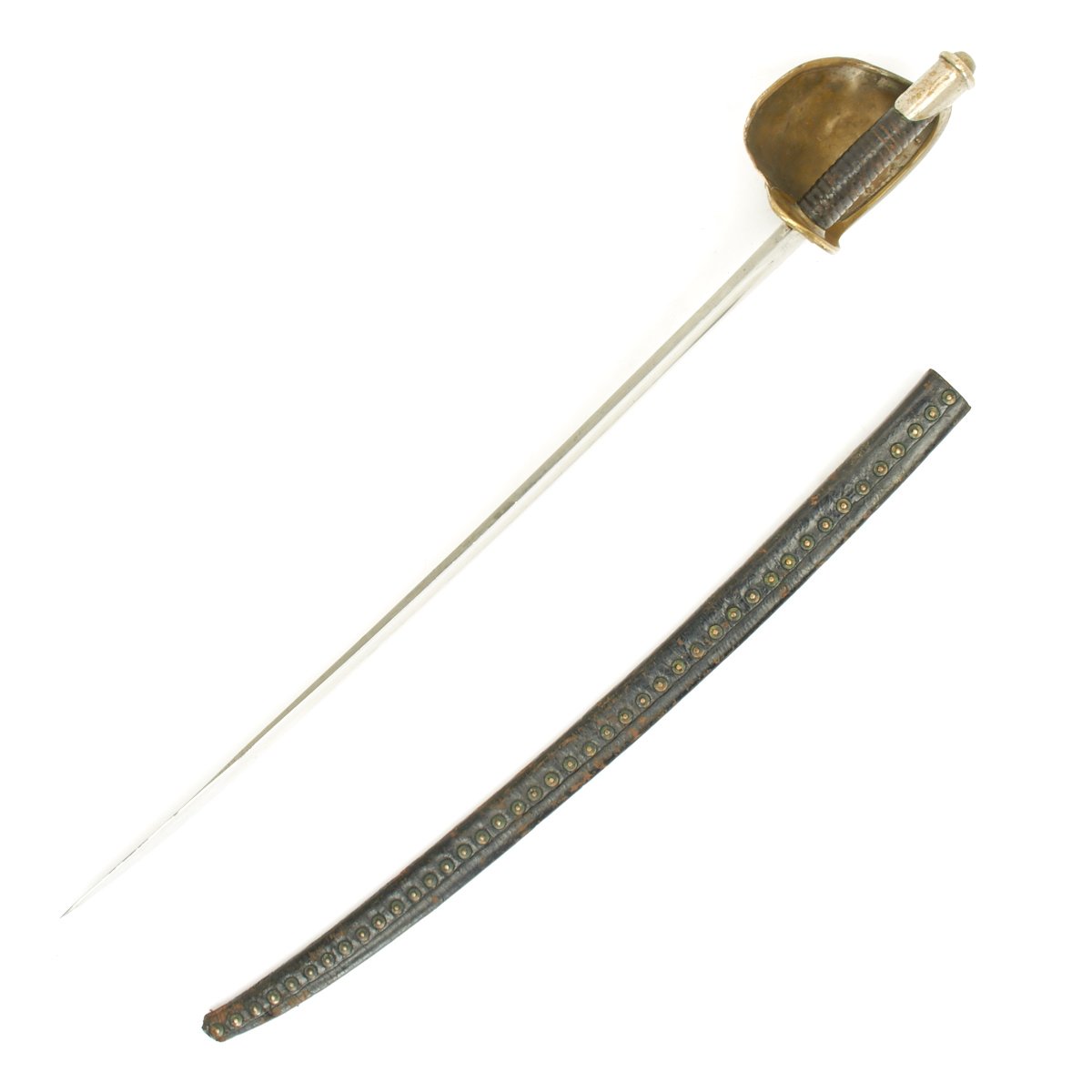 A great and hard to find example in such condition of a Civil War U.S. Naval Cutlass with scabbard.