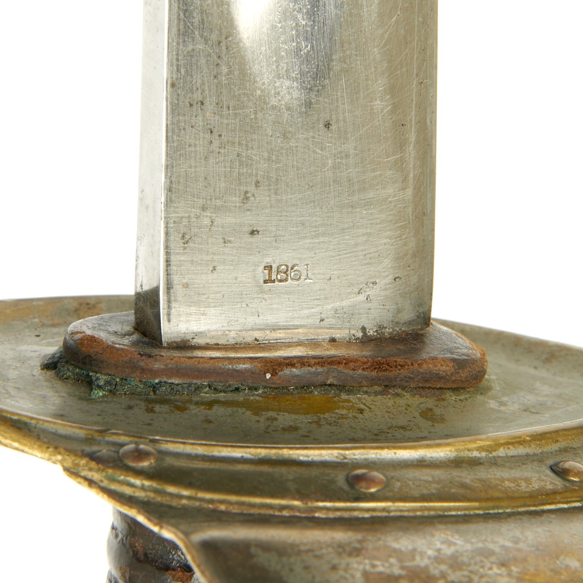 Original Item: Only One Available. This is a genuine early United States Naval Boarding Cutlass dated 1861 on the blade ricasso. The reverse has a scroll emblem with the maker name inside: