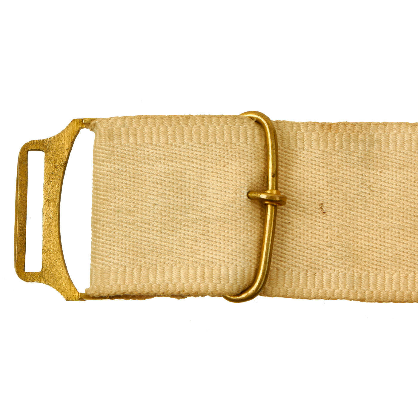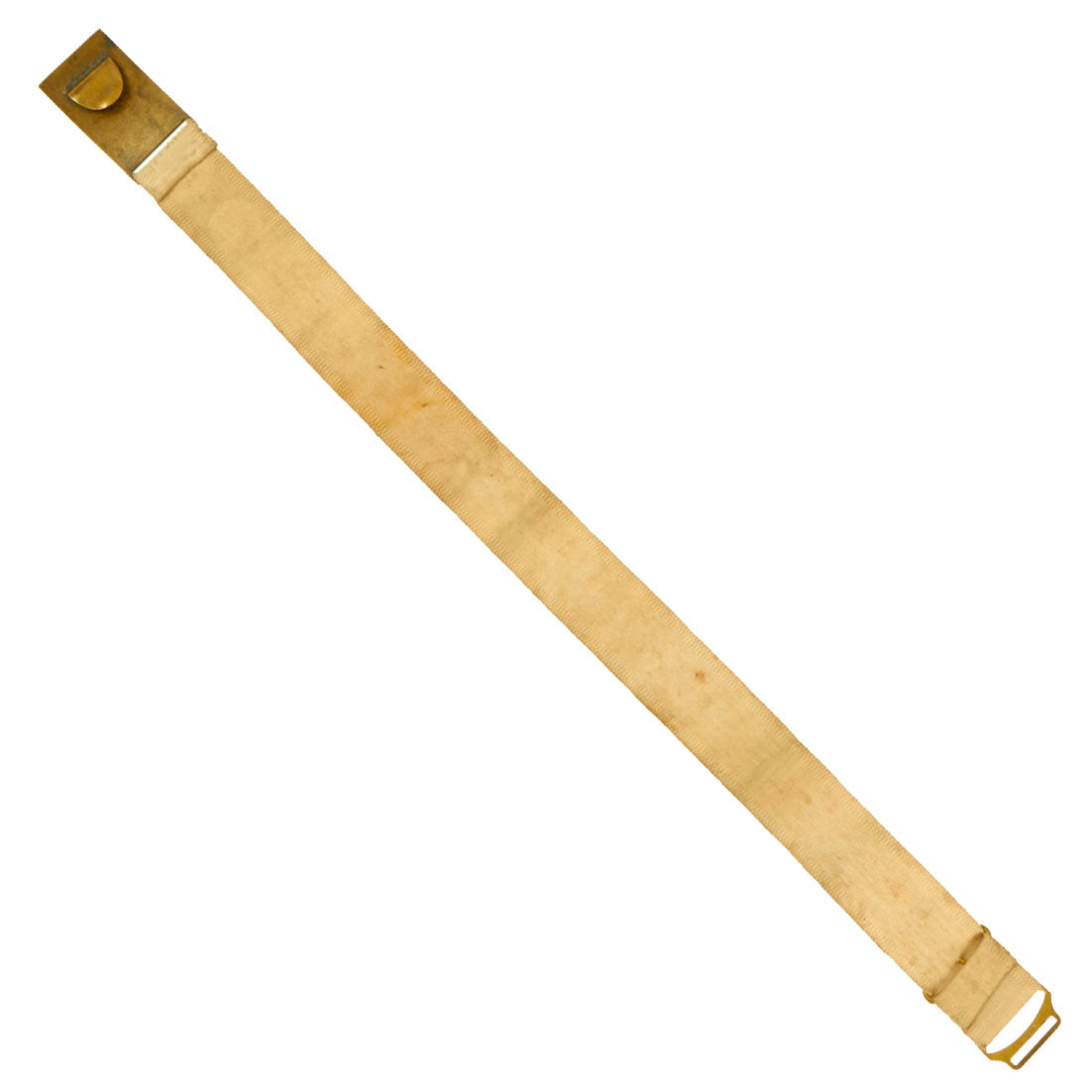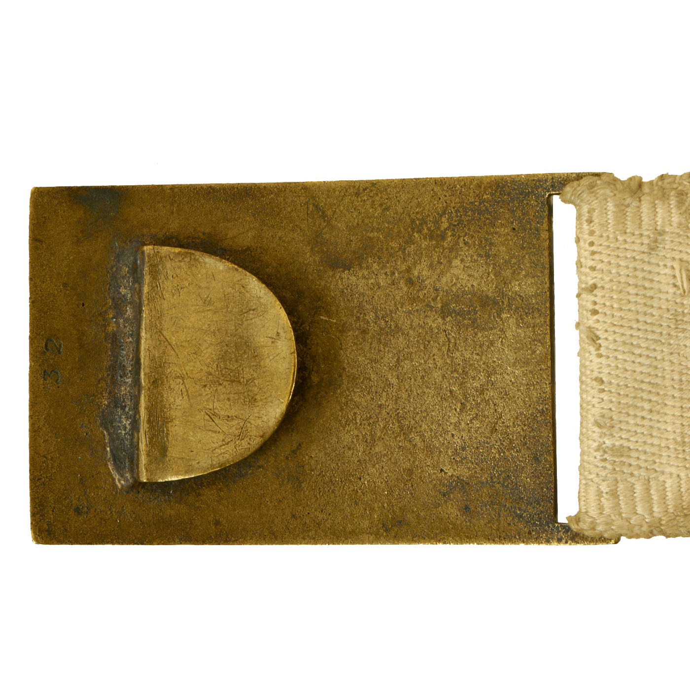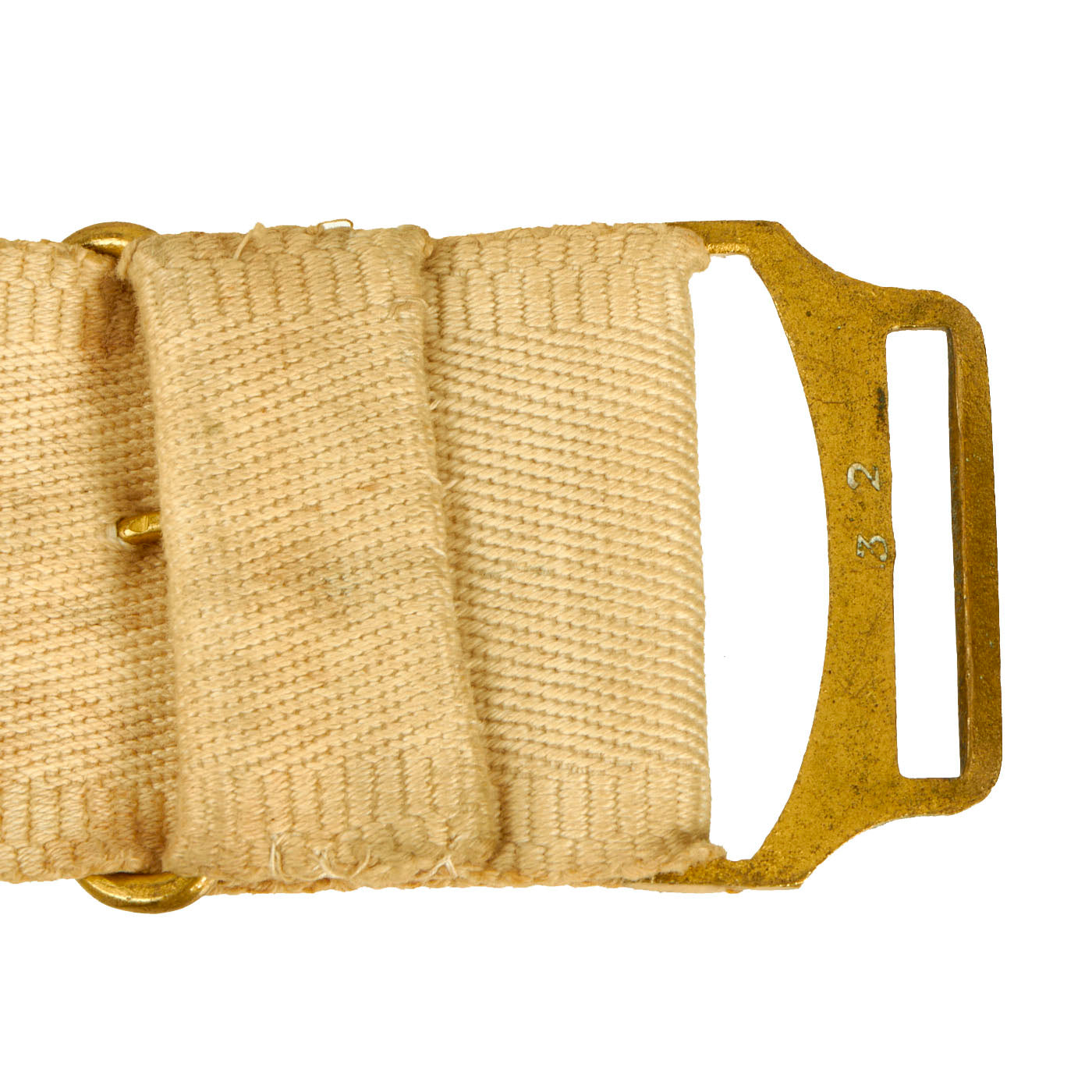 Original Item: Only One Available. This belt is a fine example of the early, original white cloth Model 1851 belt worn by Federal Officers prior to and during the Civil War. It remains in overall good condition, with its original, bench numbered, regulation 1851 pattern, brass eagle belt plate, with its matching keeper. Constructed of strong white canvas, the belt measures 31″ long, 1 ⅞” wide and exhibits staining and age toning.
