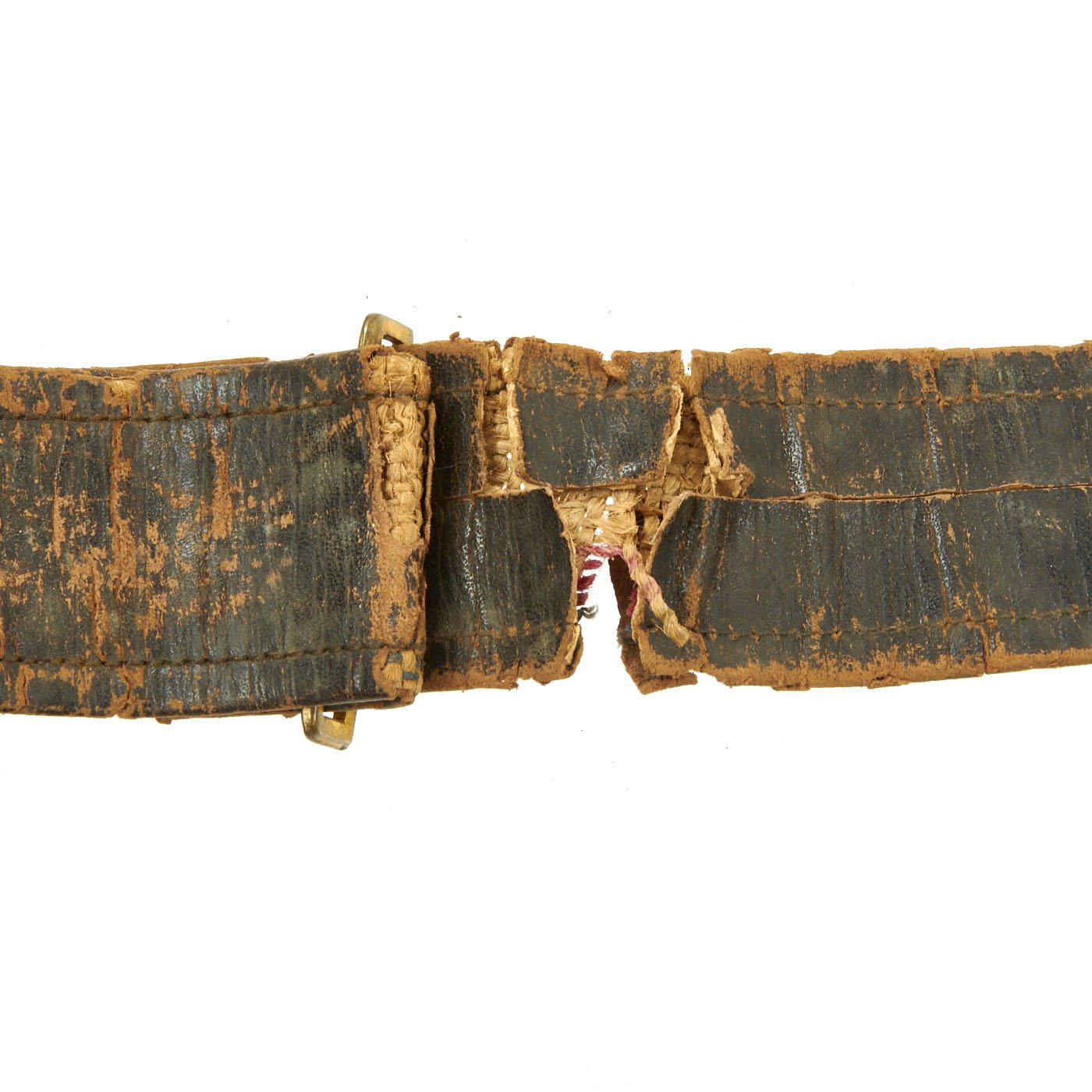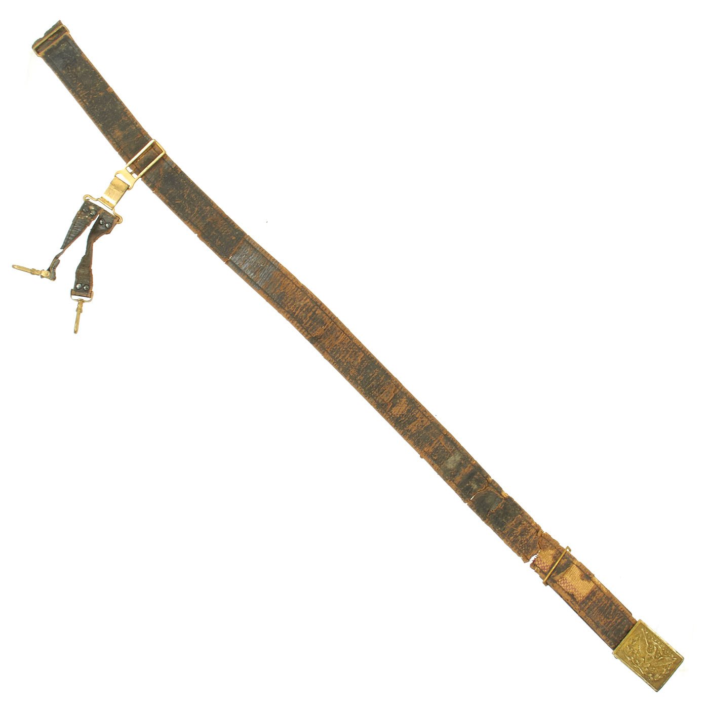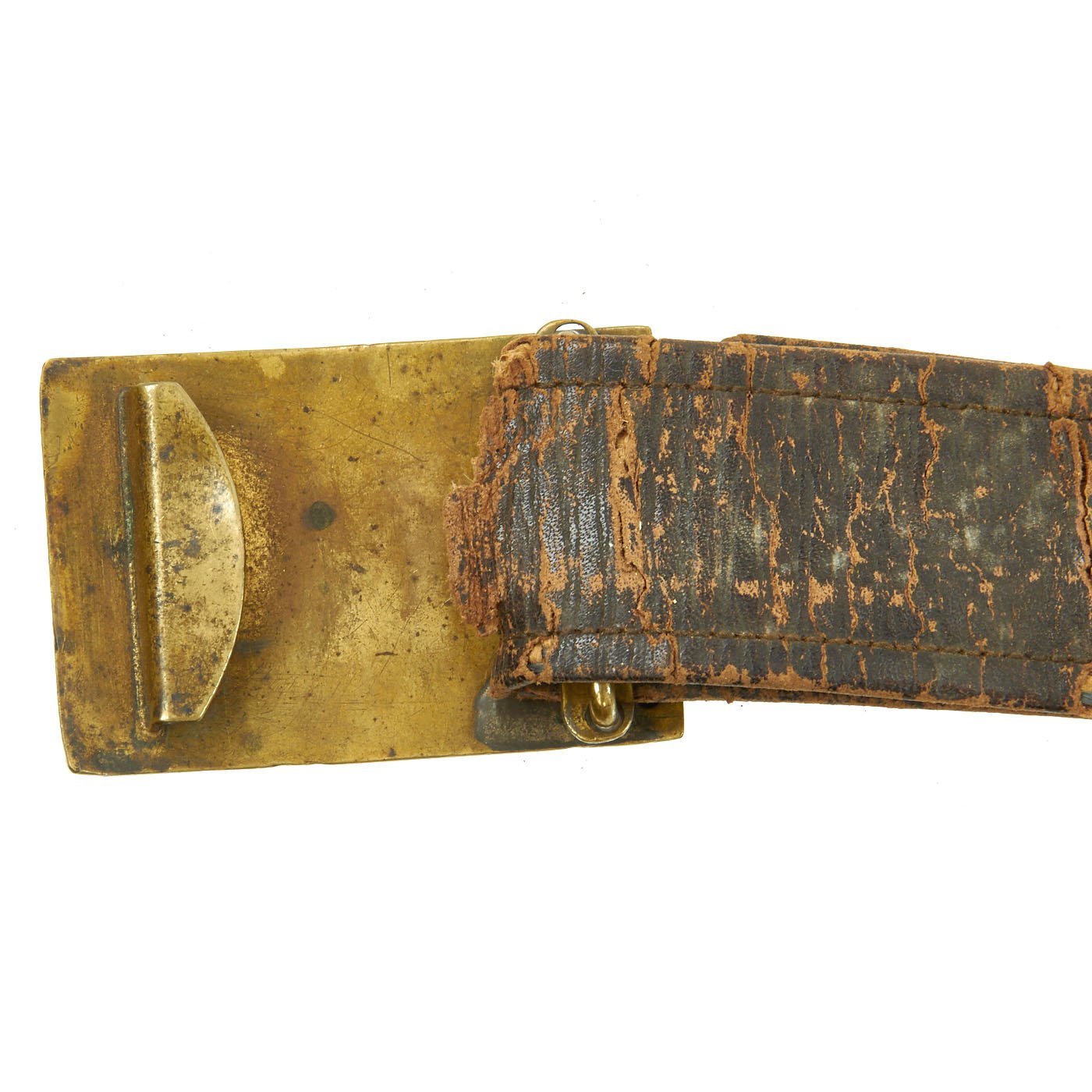 Overall condition is good but definitely shows significant wear. These belts unfortunately did not hold up well over the years, so they are rare in ANY condition. While it is deteriorated, this belt still has all of its components, and would make an excellent pat of any civil war collection.