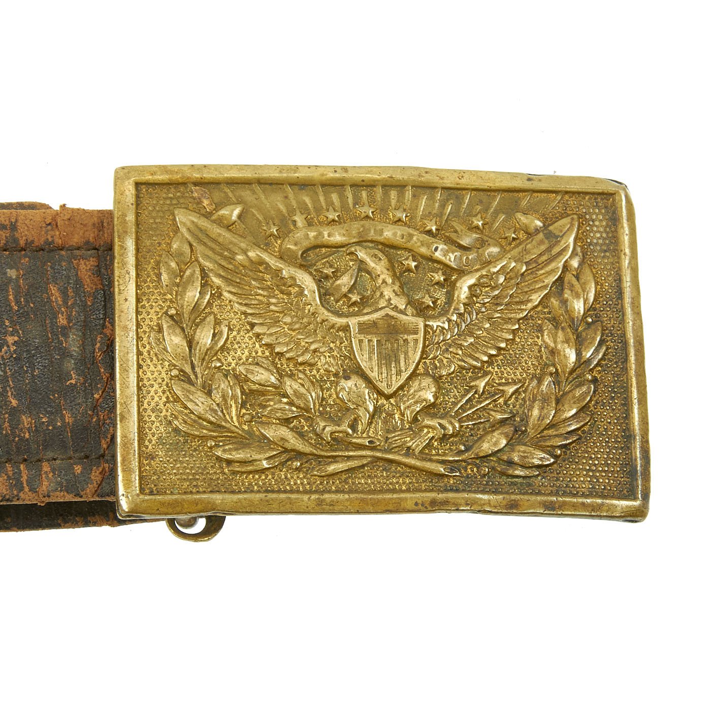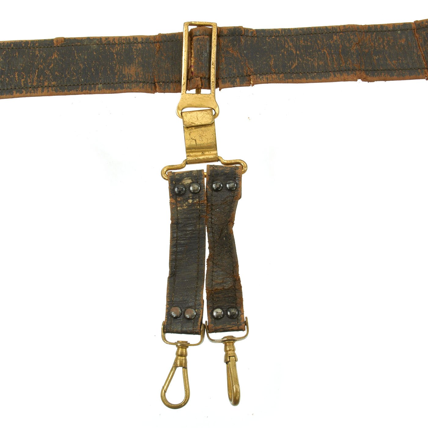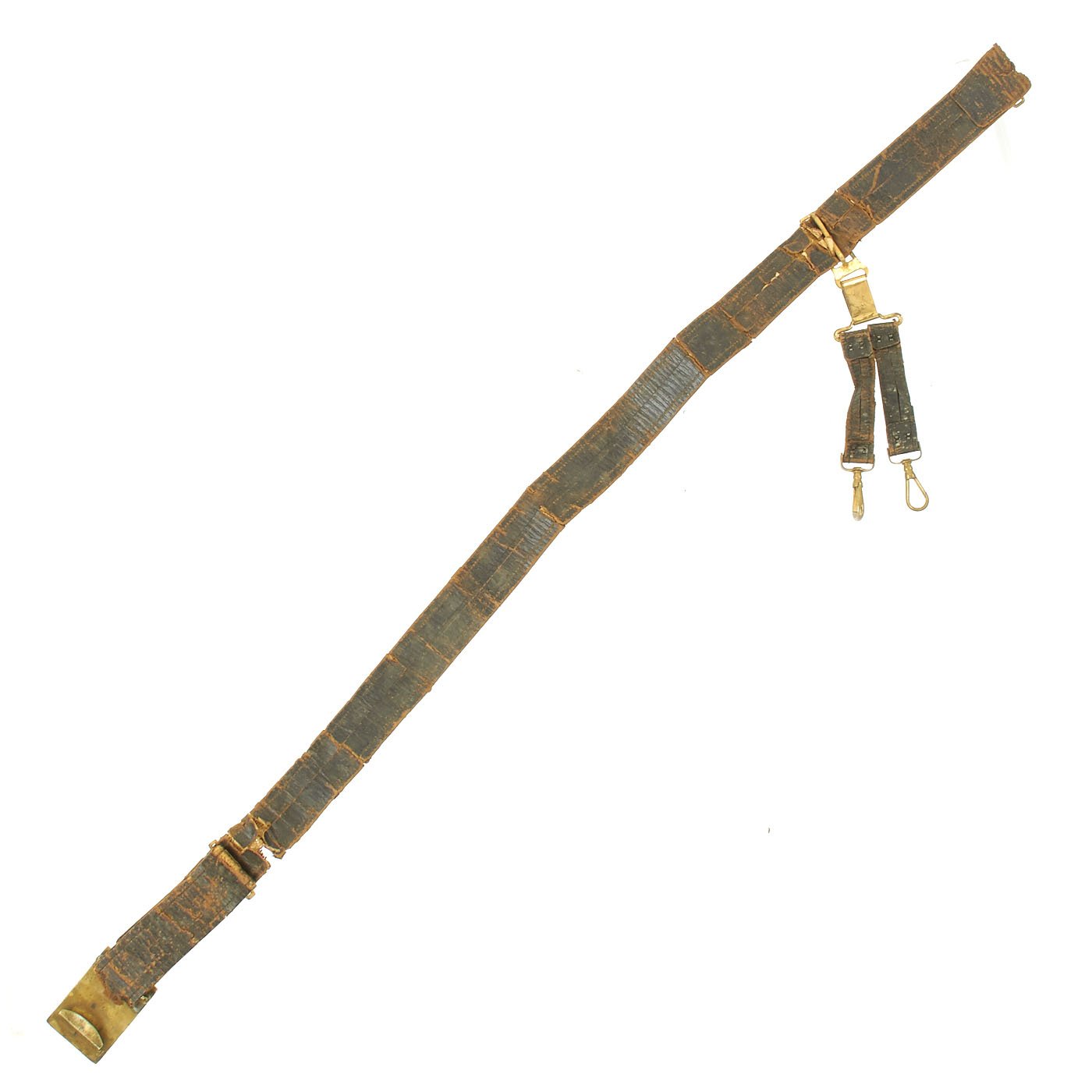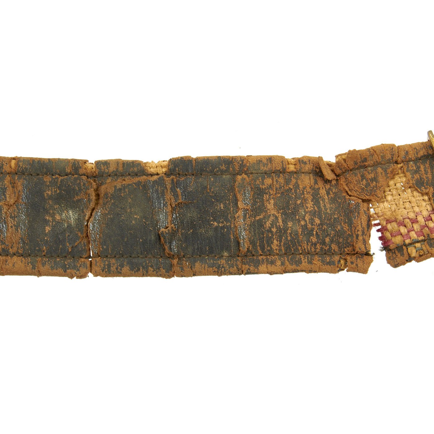 Overall condition is good but definitely shows significant wear. These belts unfortunately did not hold up well over the years, so they are rare in ANY condition. While it is deteriorated, this belt still has all of its components, and would make an excellent pat of any civil war collection.