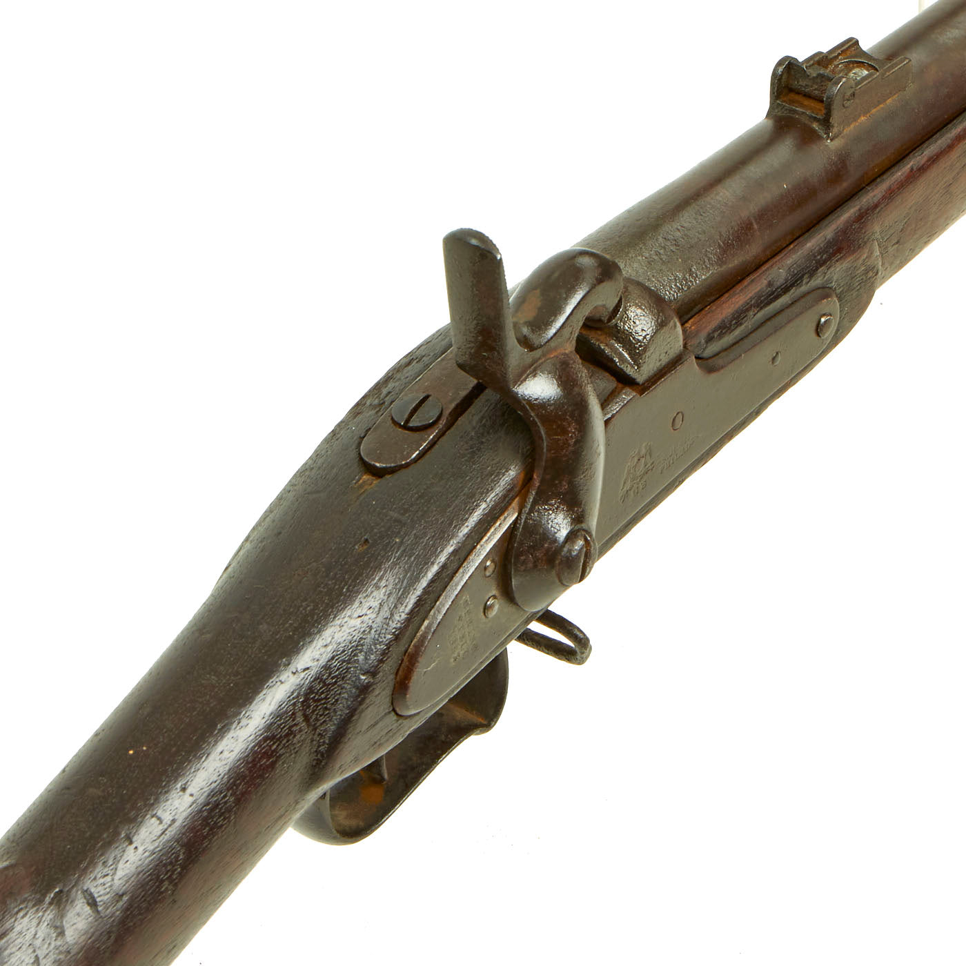 Original Item: Only One Available. Here we have a VERY interesting U.S. Civil War Short Percussion rifled musket, marked on the lock with P.S. JUSTICE / PHILADA, to the right of the usual Federal Eagle / U.S. marking. It is also marked SPRING / FIELD / 1852 on the lock plate tail, so it should be a lock from a Springfield Model 1842 Percussion musket.