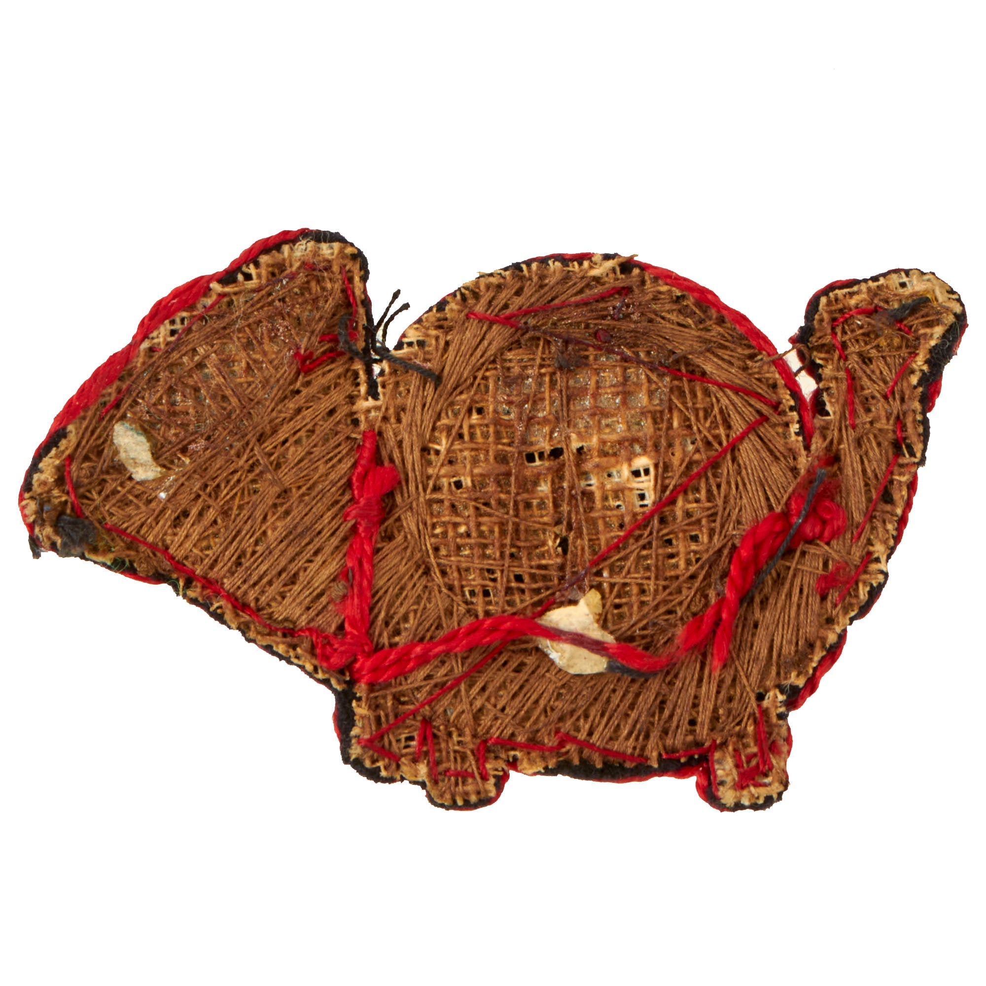 • Original Item. Only One Available. The regulations of 1859 for the U.S. Marine Corps distinguished between headgear for “dress” and for “fatigue” (i.e. every day and field use.) The specified insignia for officers’ fatigue caps was gold bullion embroidered hunting horns with a silver Old English “M” in the loop on a crimson ground.