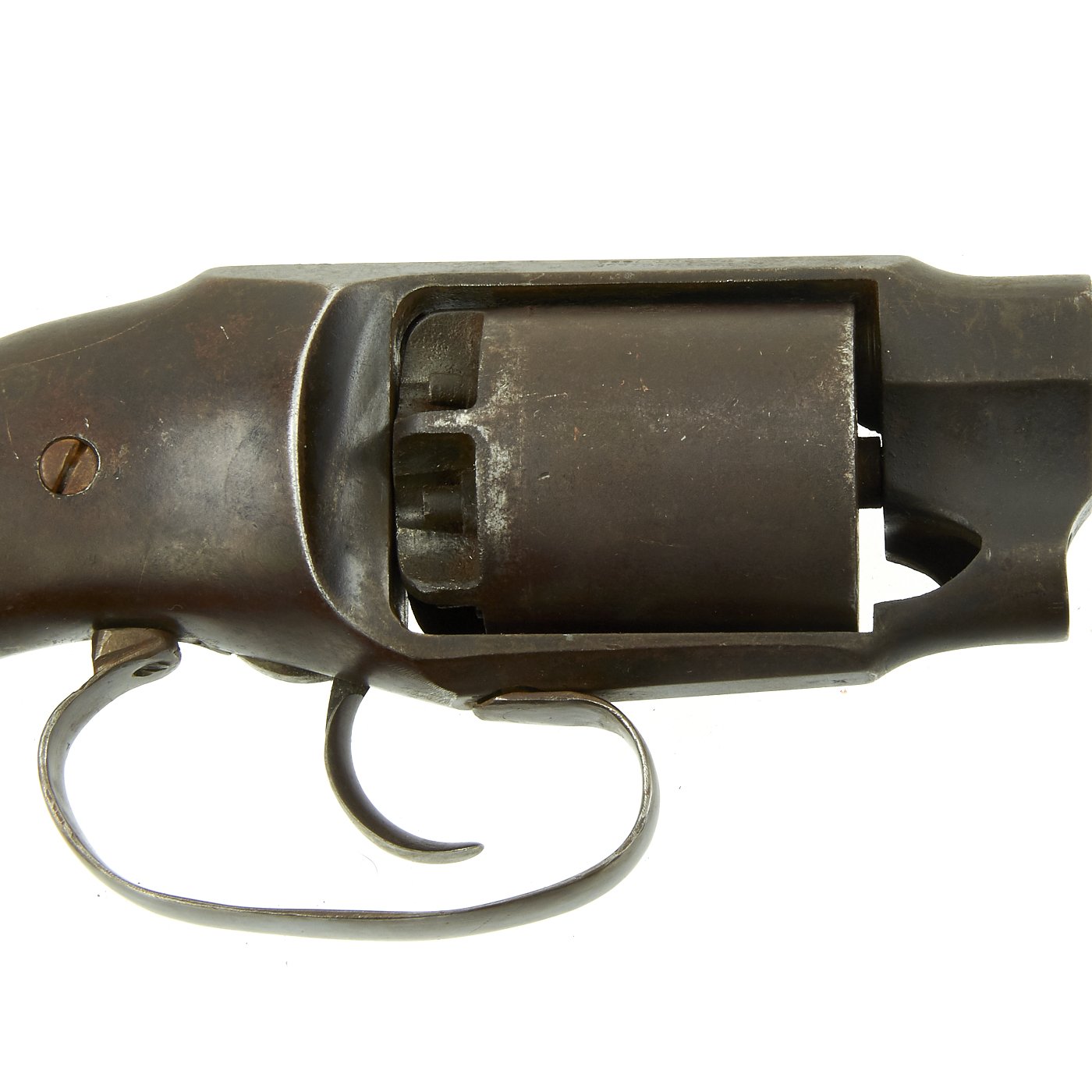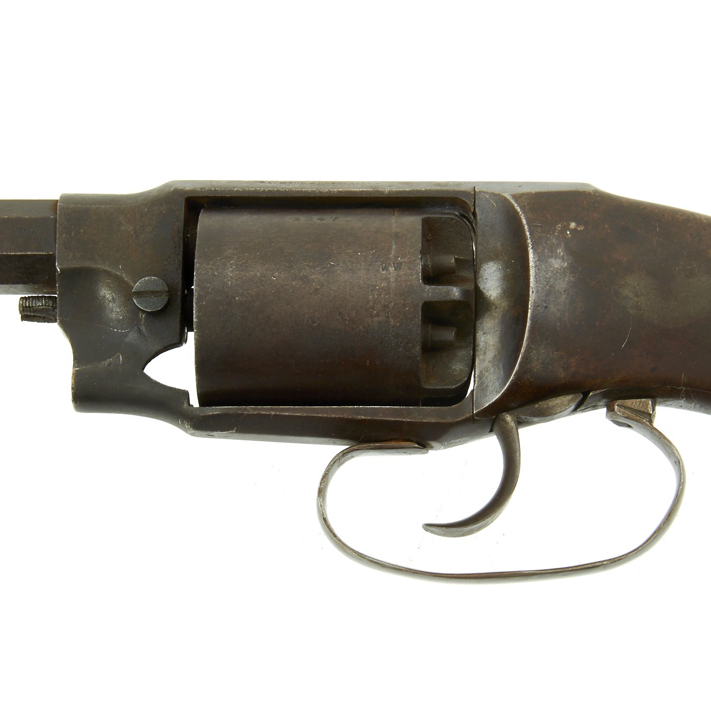 This appears to be of the last delivered to the Army, being #3247 of 3,400, which would production right in early 1863. Interestingly the ram rod assembly, located under the barrel similar to the Civil War Colt and Remington Revolvers, has been removed and is now absent however the front catch is still present. Possibly quite easily replaced.