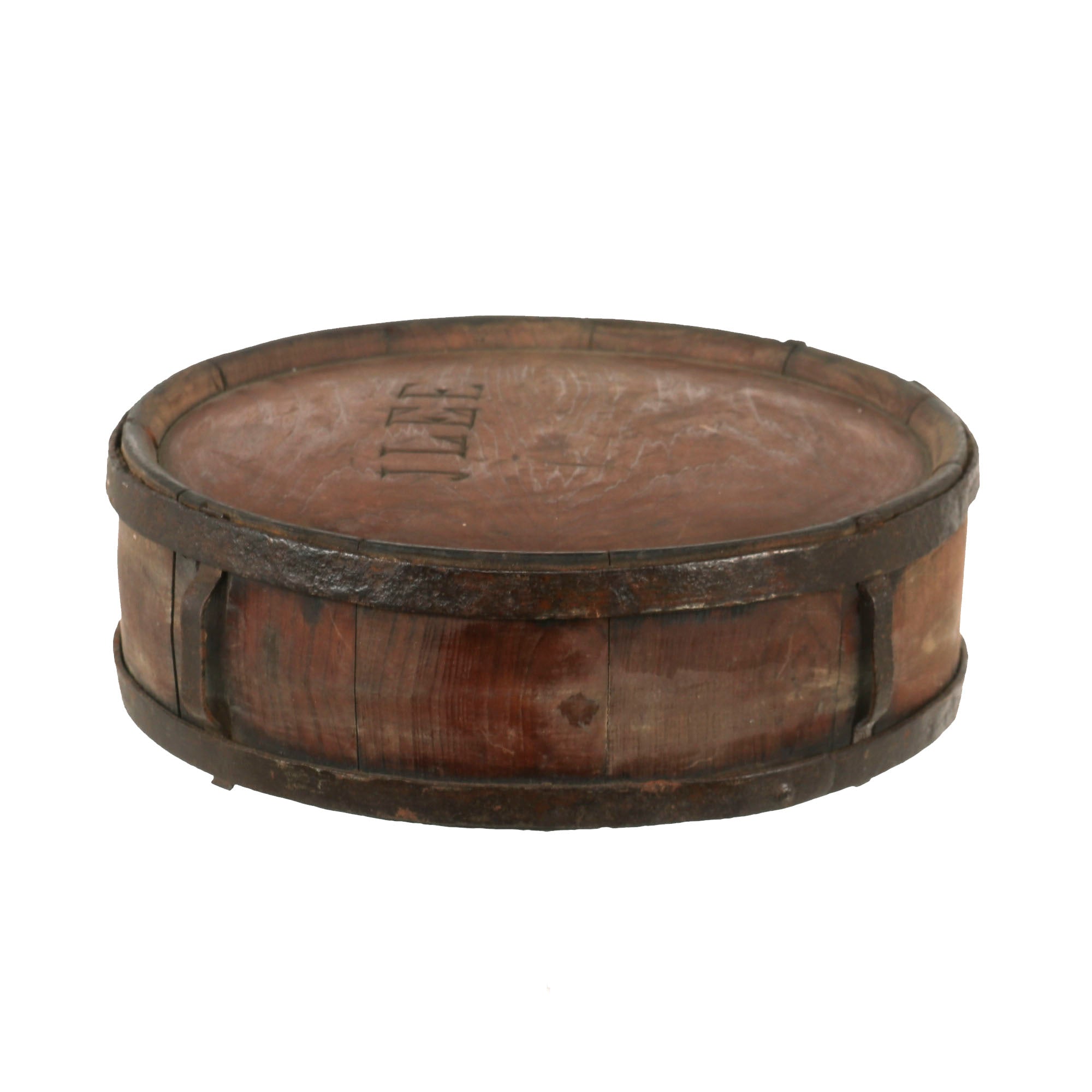 Original Item: Only One Available. Prior to 1858, canteens were made of wood or tin and came in a variety of forms and sizes. The two most prominent ones used were the “barrel type” like this one which is made of wood with side slats like a barrel, and the “cheesebox” type made of wood with a single wrap around the side.
