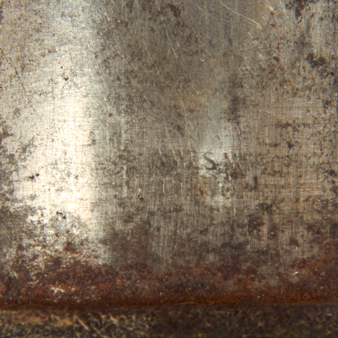 The underside of the guard is marked with rack number 17M / 368. The guard of this example, and others we have seen, was coated with lacquer to improve the appearance and protect it, with some of this getting on the blade ricasso.