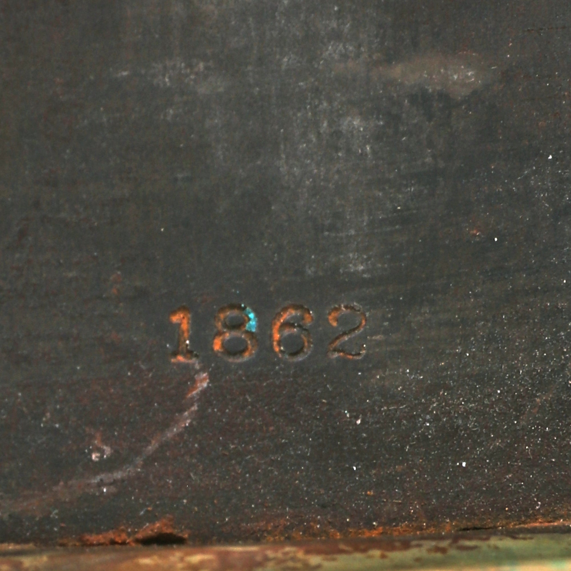 The obverse ricasso is marked 1862. There are no other markings on the cutlass. The blade is in very good worn condition for not having a scabbard, and retains most of its original darkened finish. There are a few scattered nicks but overall the blade is in great condition.