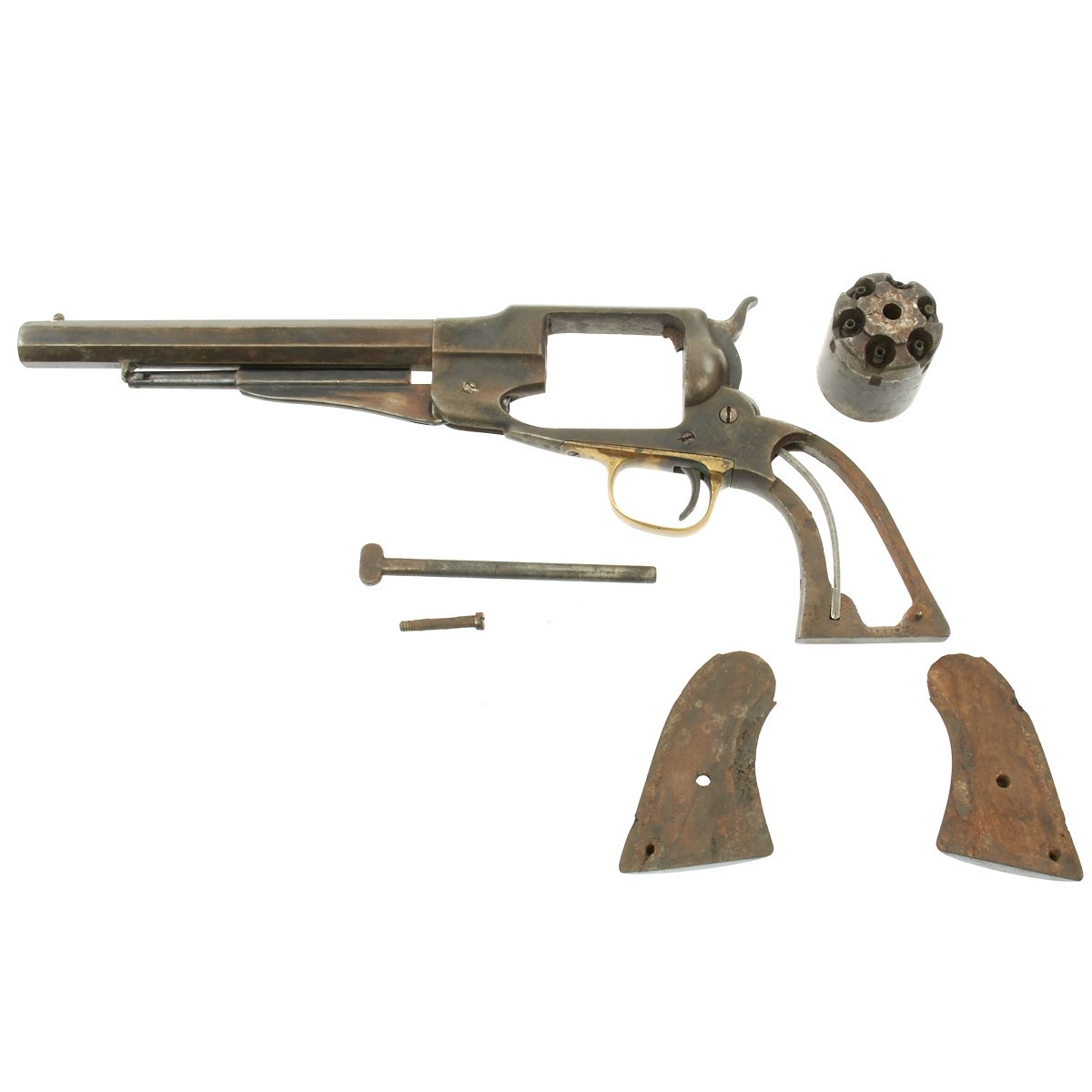 Original Item: Only One Available. This is a nice Remington 1861 "Old Model" Army Revolver in .44 caliber percussion. It is a 6 shot single-action revolver, with an 8-inch octagon barrel, which replaced the earlier "Remington-Beals Army Model Revolver". The top of the octagonal barrel still has the original barrel markings, which are partly clear: