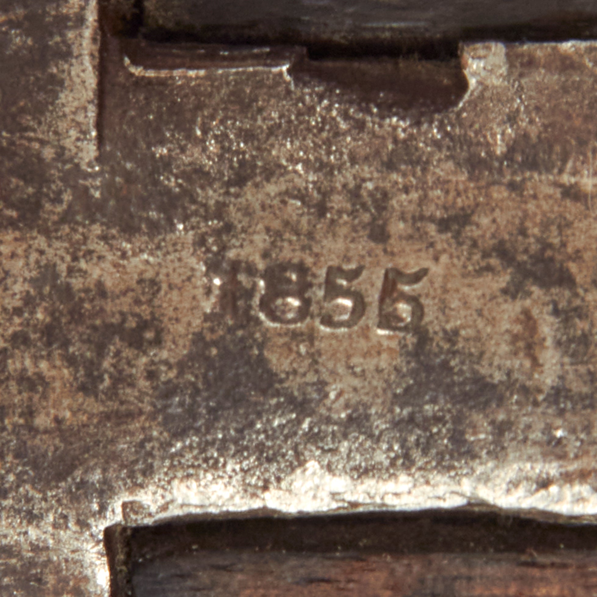 The Maynard tape primer lock was one of the 20,000 produced by the Remington Arms Co., however only traces of the original markings are still visible due to wear an cleaning. Close inspection however confirms that it is undoubtedly one of the Remington conversions. There is also marking of 1855 on the barrel tang, part of the replaced breech portion of the barrel.