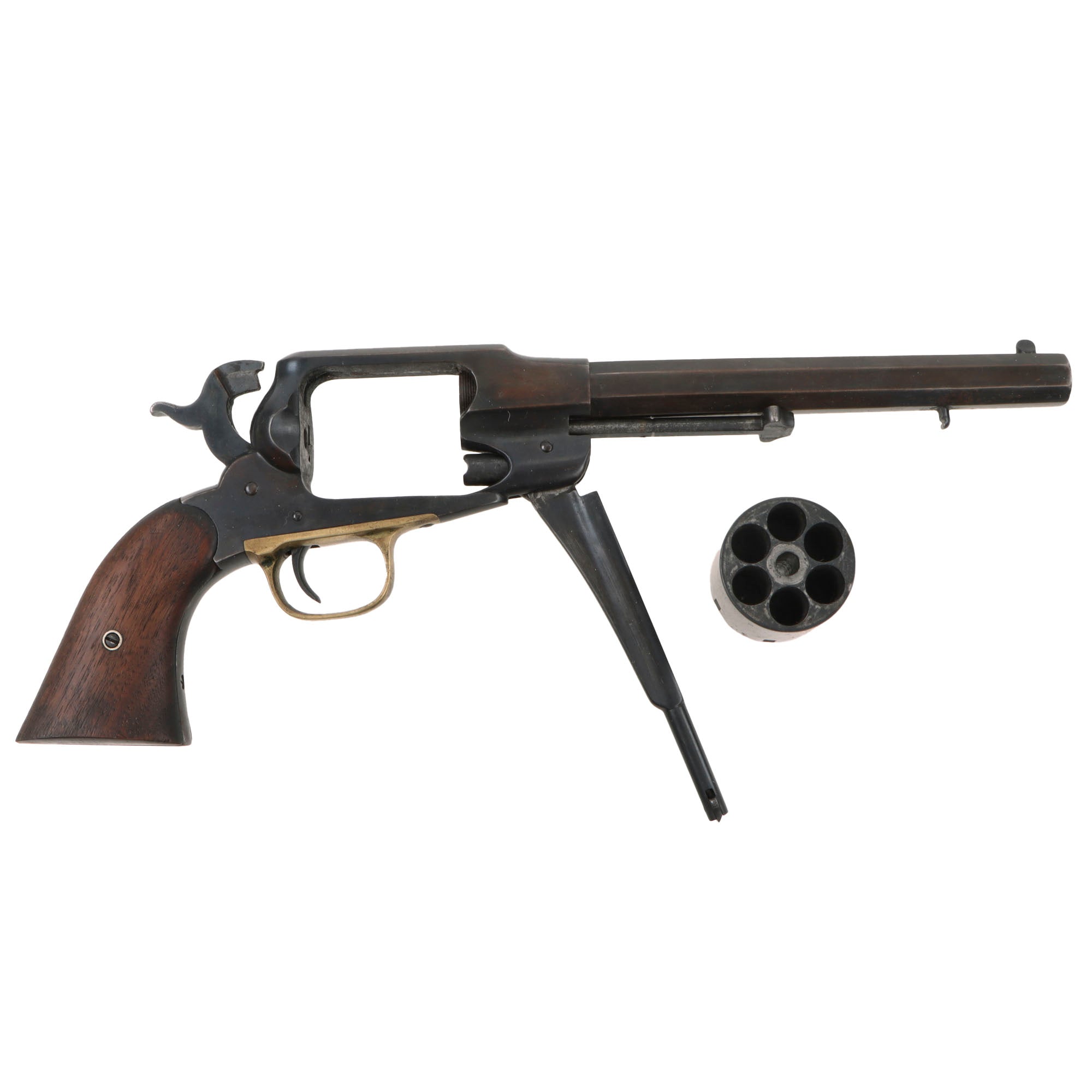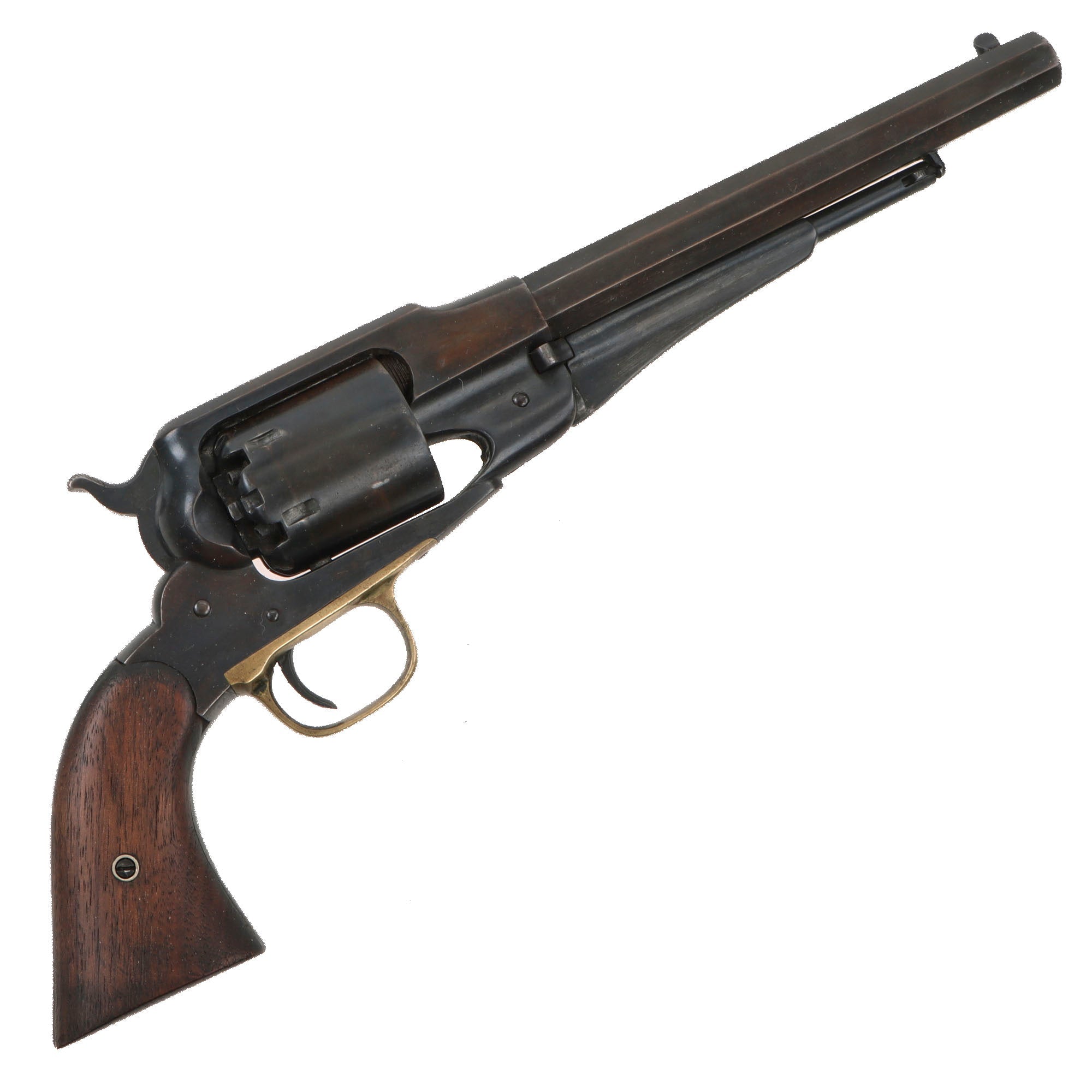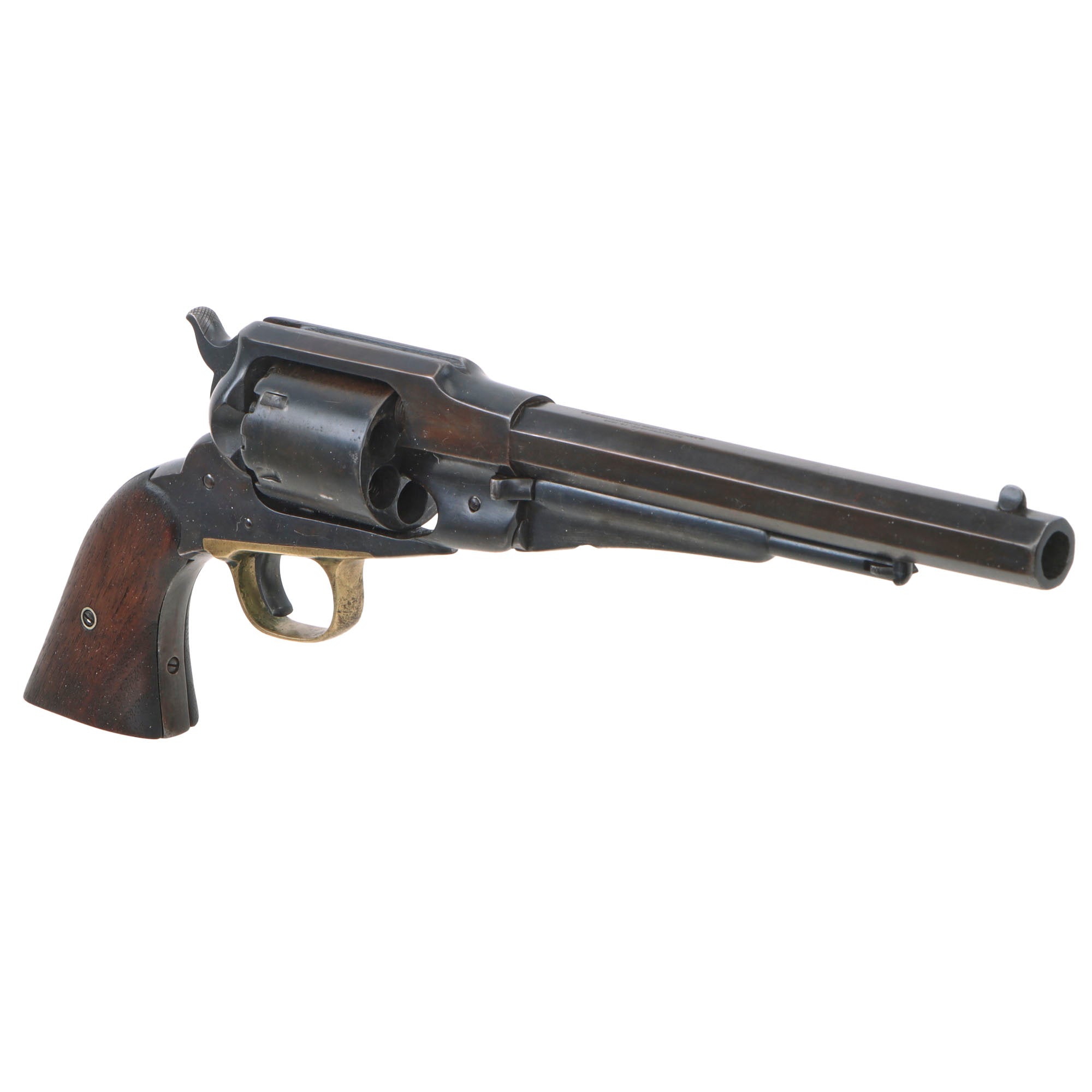 The New Model 1863 Army was the last of Remington's .44 caliber percussion revolvers. Remington Armies were used from the beginning to the end of the Civil War in all fields. They were considered to be among the finest martial handguns of the day. The Remington New Model 1863 Navy and it's forbear, the Remington-Beals Navy, also saw action during the war.