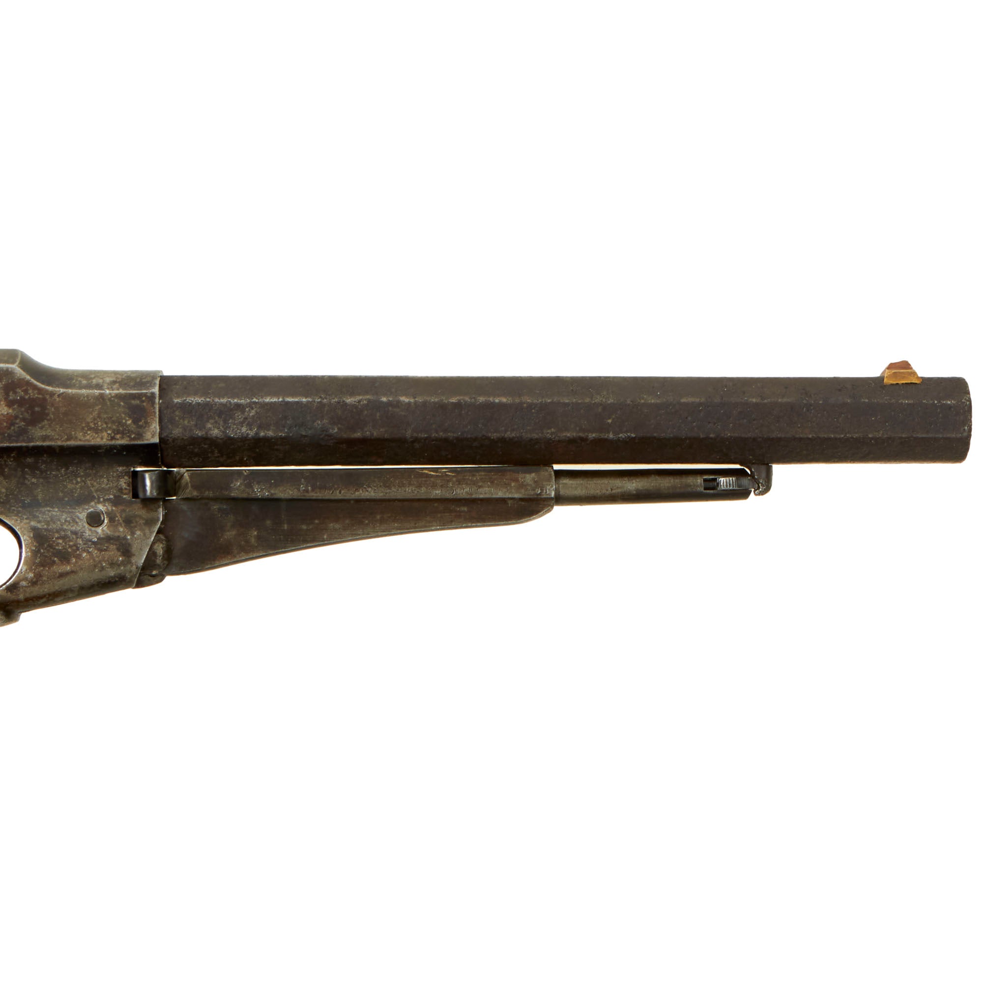 The Remington New Model 1863 Army Revolver represents Remington's highest production martial pistol. Approximately 126,000 were manufactured from 1863 to 1875. After Colt, it was the Northern government's most purchased and issued pistol. Serial numbers of the New Model Army continued from the Model 1861 Army. Reference sources estimate this change from between serial number 15000 (Flayderman) to 22000 (Reilly). This is probably due to a long transitional period in which there was a gradual change over of the design features between the two models. The earliest production models utilized the 1861 frames and had a somewhat longer grip. The stamping "New Model" on the barrel of the early models can also be noted to have been stamped with a separate die. Nearly 110, 000 New Models were purchased by the government during the Civil War, at prices between $10.82 and $15.50 each. These prices were lower than Colt's and by mid-1863, Colt was eliminated from the government contract business. The State of New Jersey also purchased several thousand for Civil War issue.