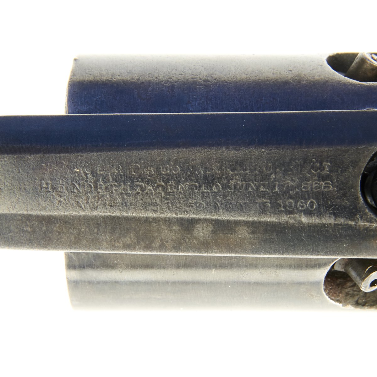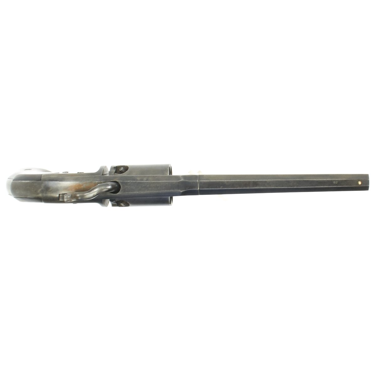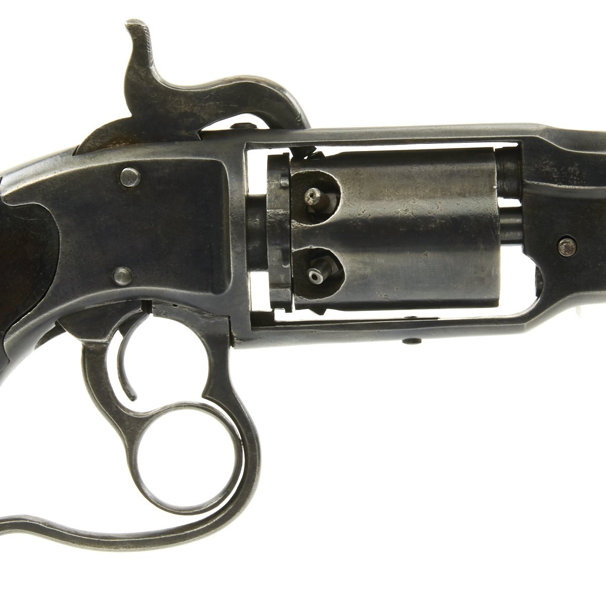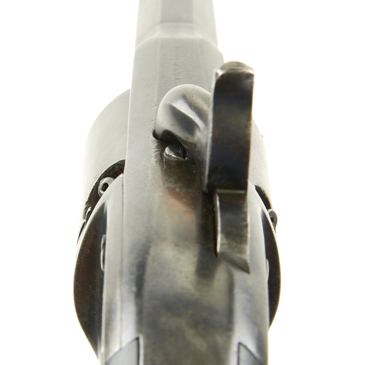 Overall the pistol is in great condition with traces of past pitting, functions nicely and is completely original. The cylinder and chambers are crisp and all 6 cap nipples are intact, which is rare for this style revolver, as the hammer tension is strong. The barrel has worn lands and grooves, with a dull finish.