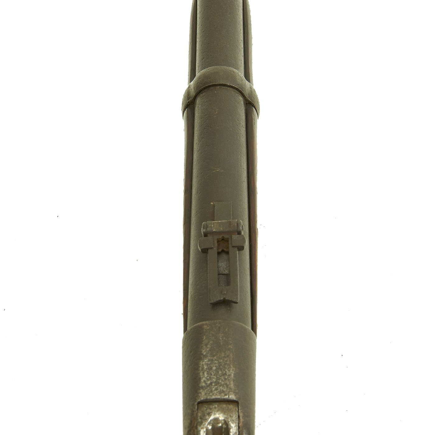 The metalwork is overall worn and lightly pitted, indicating that this carbine spent quite some time outdoors, or in a moist environment. This is over the entire exposed exterior, which has removed any additional markings that may have been present. Under the fore stock and inside the action, the metalwork is still in very good condition. The bore shows clear lands and grooves, though it does have oxidation from lack of care, particularly near the muzzle, so it probably rates an 7 out of 10. The carbine functions well, cycling and dry firing. The magazine tube removes easily, and is in good condition.