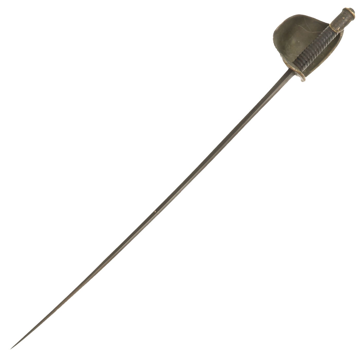 Original Item: Only One Available. Now this is a rare bird! This is a very nice service used example of the rarely seen U.S. Naval Cutlass, as used from 1860-1865. The boarding cutlass was derived from the French pattern of 1833, often referred to as a “cullere a pot,” or more commonly called the “soup ladle” weapon. As originally issued, these featured all brass mounts, a wooden leather wrapped sword grip, and a nice brass-fitted leather scabbard. Unfortunately, exposure to the sea air and moisture would rapidly degrade the leather components, so this example is missing the leather grip wrapping, as well as the entire scabbard. However these are hard to find in ANY condition, and we have only had a few previously.
