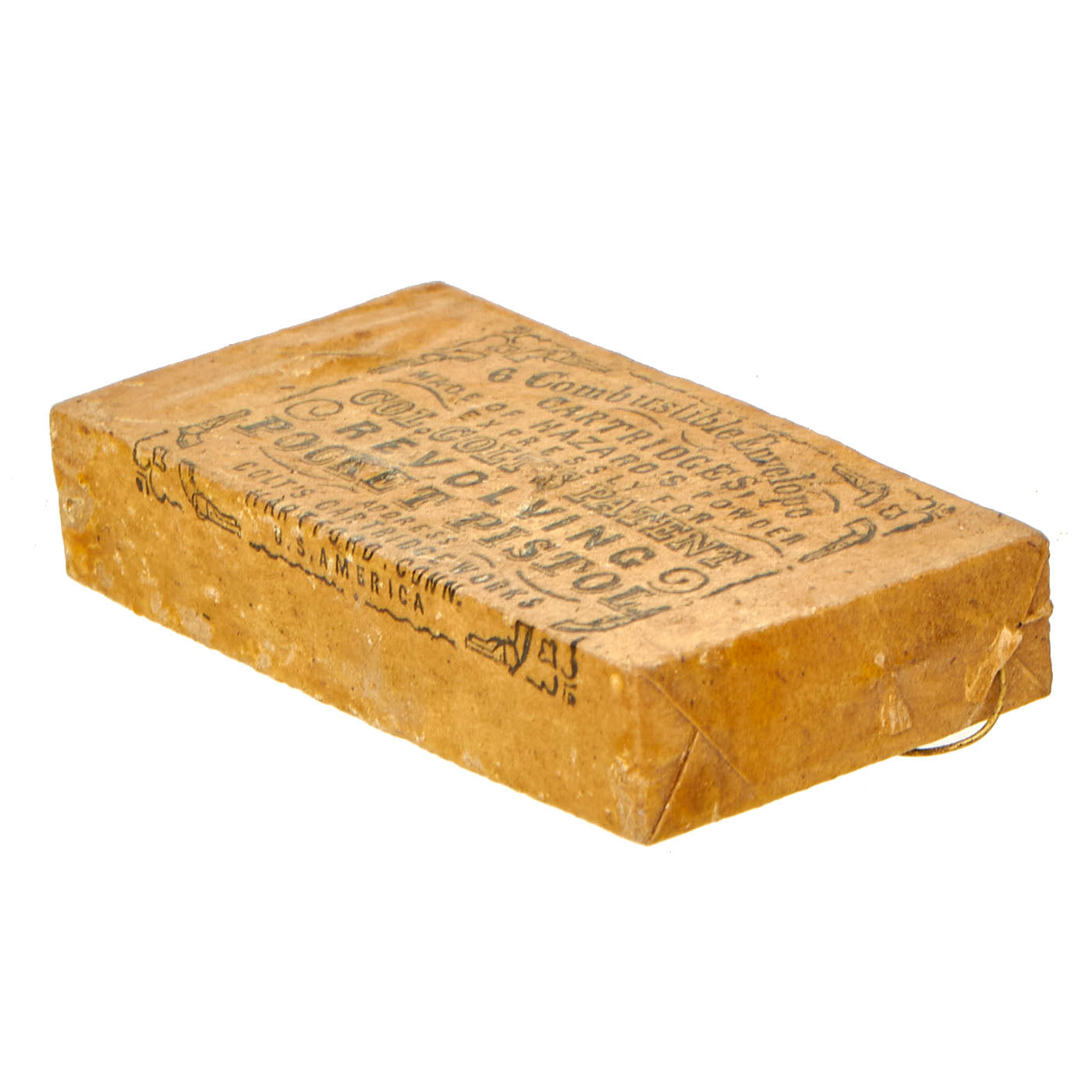 Original Item: Only One Set Available. This is a set of six original Civil War .31cal percussion cartridges, still in their original SEALED packaging. With 6 cartridges, this would fully load the cylinders of virtually all .31cal percussion revolvers of the time made by Colt, Whitney, Manhattan, and others. This would in fact often leave one cartridge left over, as most pistols followed the Colt M1849 by having 5 chamber cylinders. However, due to improved steel quality, in 1861 Colt updated the Model 1849 Pocket revolver with a stronger 6 chamber cylinder, and started making six round cartridge packages to match.