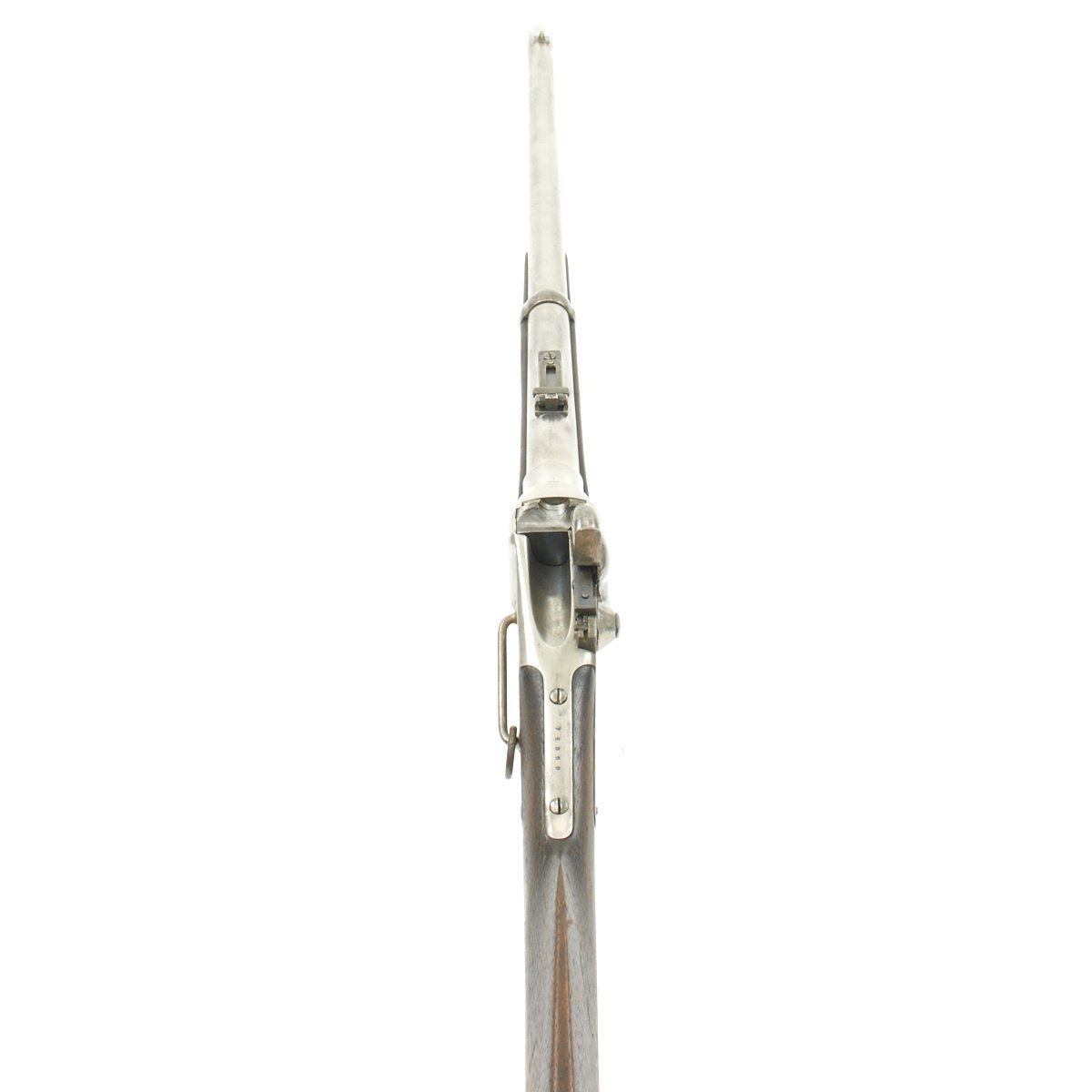 The Sharps, which used a nitrated linen or paper cartridge, was available in rifle or carbine models. Approximately 3,000 New Model 1859 Carbine produced early in the production run featured brass furniture and a brass patchbox. Many of these saw service with Georgia troops during the Civil War. About 30,000 more were produced with iron furniture and an iron patchbox. All featured a pellet priming system as part of the lock plate. The New Model 1863 and New Model 1865 Carbines were essentially the same as the earlier model, the differences being confined to barrel markings. SN 32532