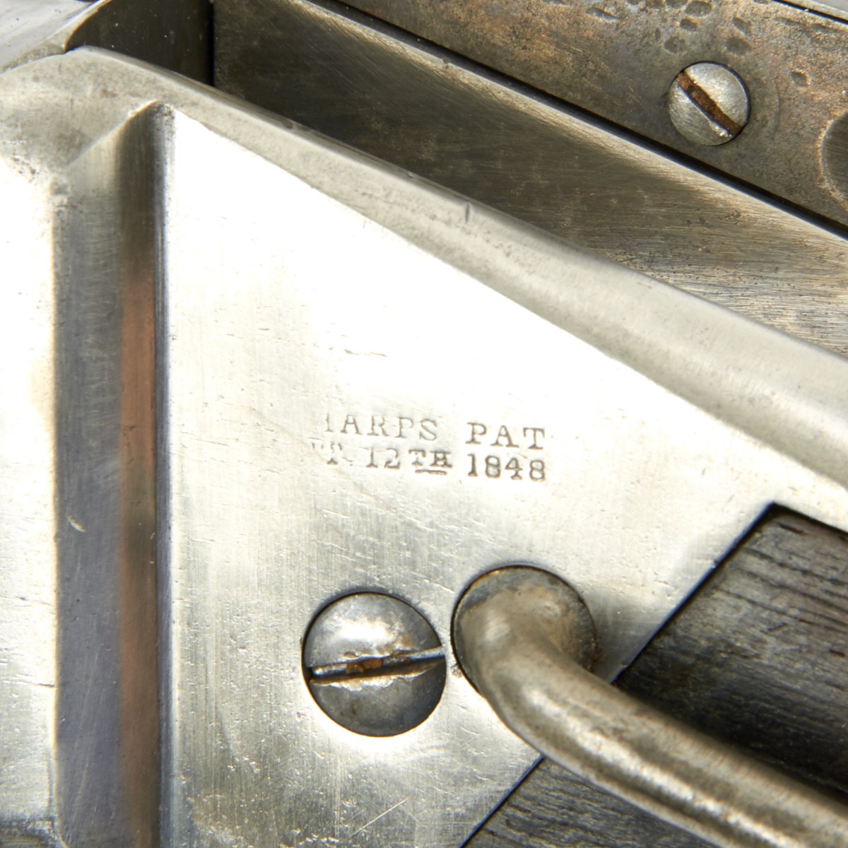 Christian Sharps (1811-1874) was the originator of a line of sturdy, practical, and popular military and sporting rifles and handguns that were associated with several events that shaped American history in 19th century, including armed conflict in Kansas during the 1850s, the Civil War, the era of the Plains buffalo hunter, and the rise of modern long-range competition shooting during the 1870s. Sharps worked at John Hall's Rifle Works in Harpers Ferry, Virginia, where he learned the principles of arms manufacturing. His first breechloading rifle design was patented in 1848, and the toggle-linking trigger guard and vertically operating sliding wedge breechblock of later Sharps rifles and carbines date from that patent. These features are still with us today, and have seen use in both rifle and artillery breech mechanisms. The spring lever-toggle-breech mechanism of the Borchardt-Luger semi-automatic pistol also had its roots in Christian Sharps' lever-linked breech.