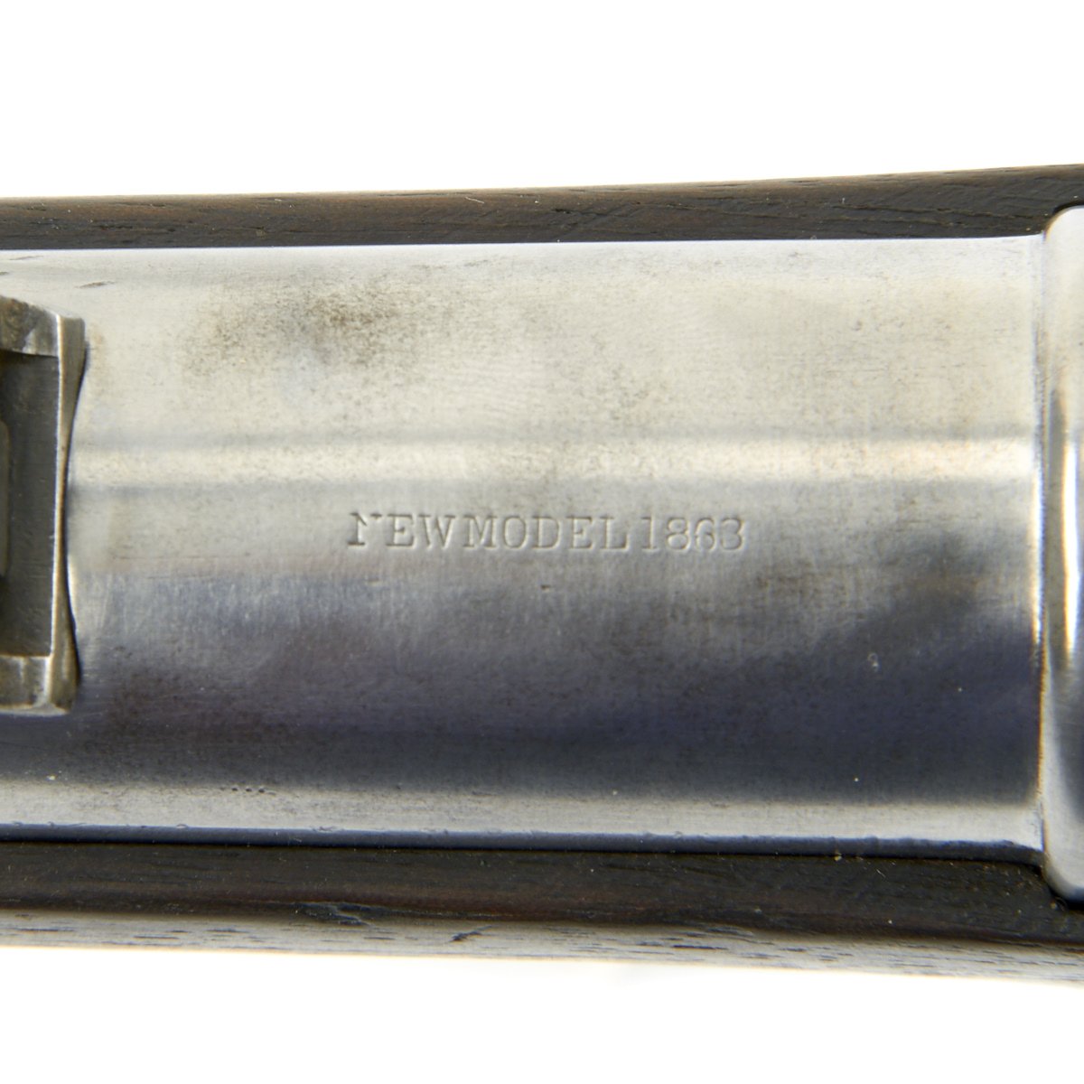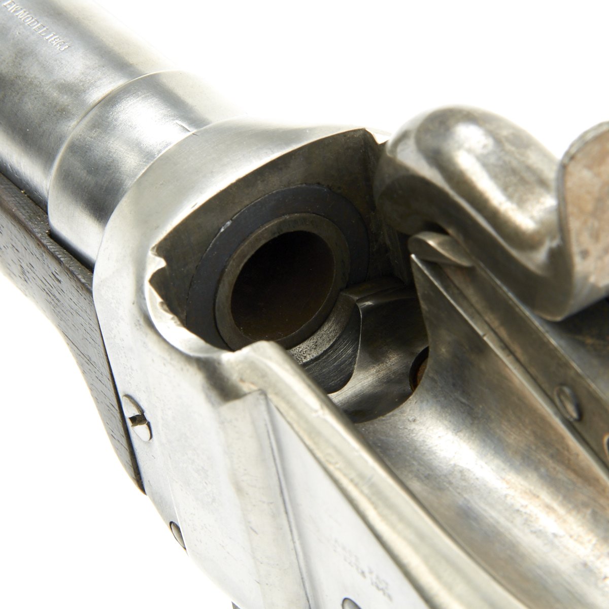 The falling block action lent itself to conversion to the new metallic cartridges developed in the late 1860s, so many were converted in the late 1860s and were used during the Indian Wars in the decades immediately following the Civil War. This example however is still in the original configuration, and is probably the best 1863 model we have had.