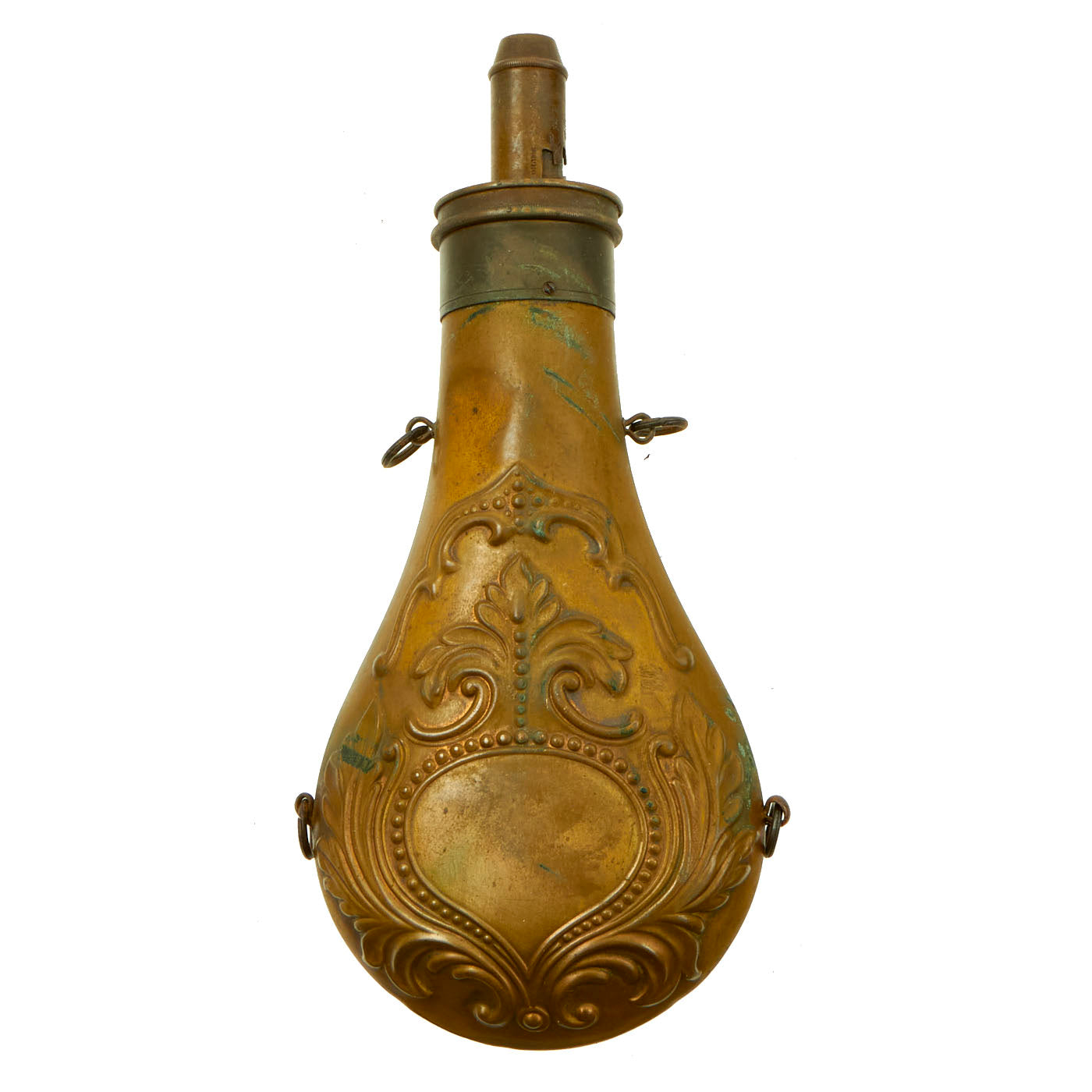Powder Flasks: A powder flask is a small container for gunpowder, which was an essential part of shooting equipment with muzzle-loading guns, before pre-made paper cartridges became standard in the 19th century. They range from very elaborately decorated works of art to early forms of consumer packaging, and are widely collected. Many were standardized military issue, but the most decorative were generally used for sporting shooting.