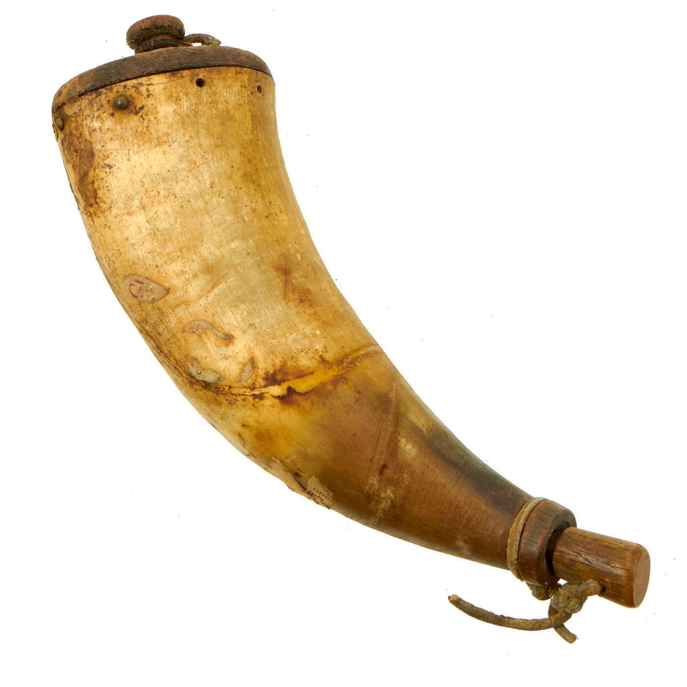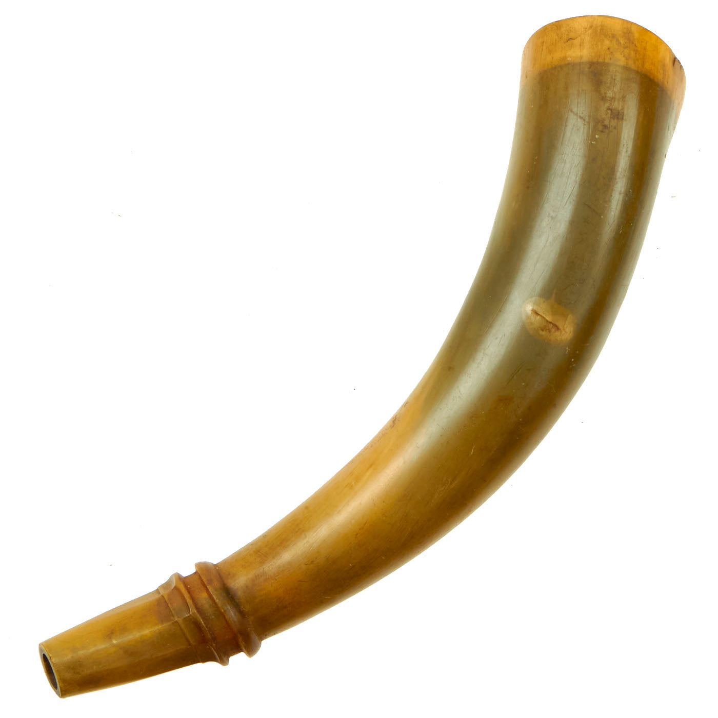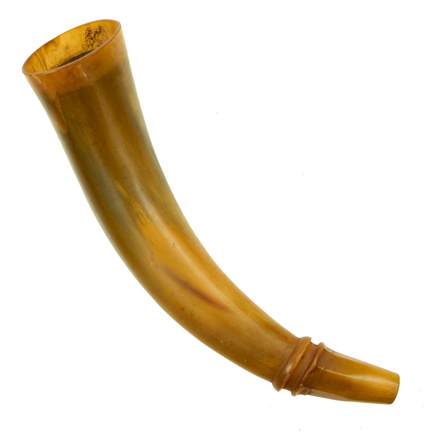 Powder Horns: A powder horn was a container for gunpowder, and was generally created from cow, ox or buffalo horn. The term may also be used for any personal container for gunpowder, the shape has to be long and curved for which powder flask is the strictly correct term.