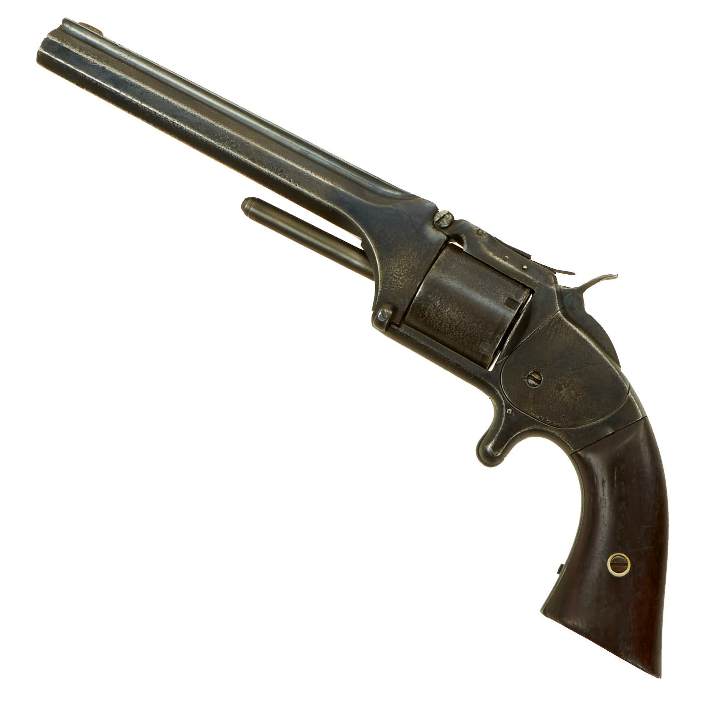 Original Item: Only One Available. This is a very nice early Civil War example of a Smith & Wesson .32-caliber rimfire Model 2 Army Revolver, with a 6 inch unshortened barrel. These were very popular as backup weapons for Union officers, used after their percussion revolver's cylinder was spent.