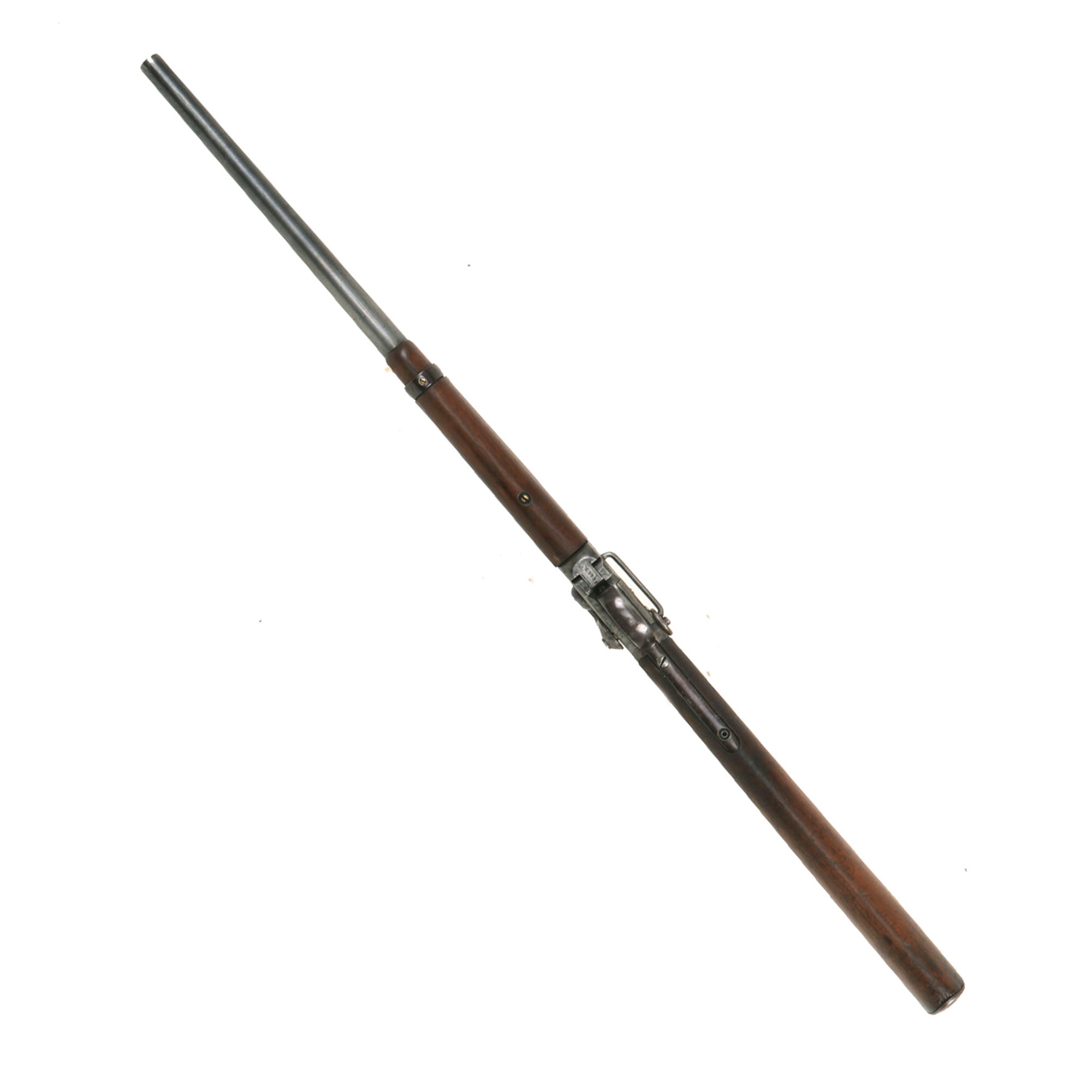 These antique guns are not sold in "live" condition, and are not tested for the the ability to feed or load any type of cartridge. They are sold as collector's items or as "wall hangers" not for use, and we make no guarantees regarding functionality aside from what is stated in the description. Any attempt at restoring an antique gun to be operational is strongly discouraged and is done so at the risk of the customer. By purchasing an antique gun from IMA you thereby release IMA, its employees and corporate officers from any and all liability associated with use of our Antique guns.