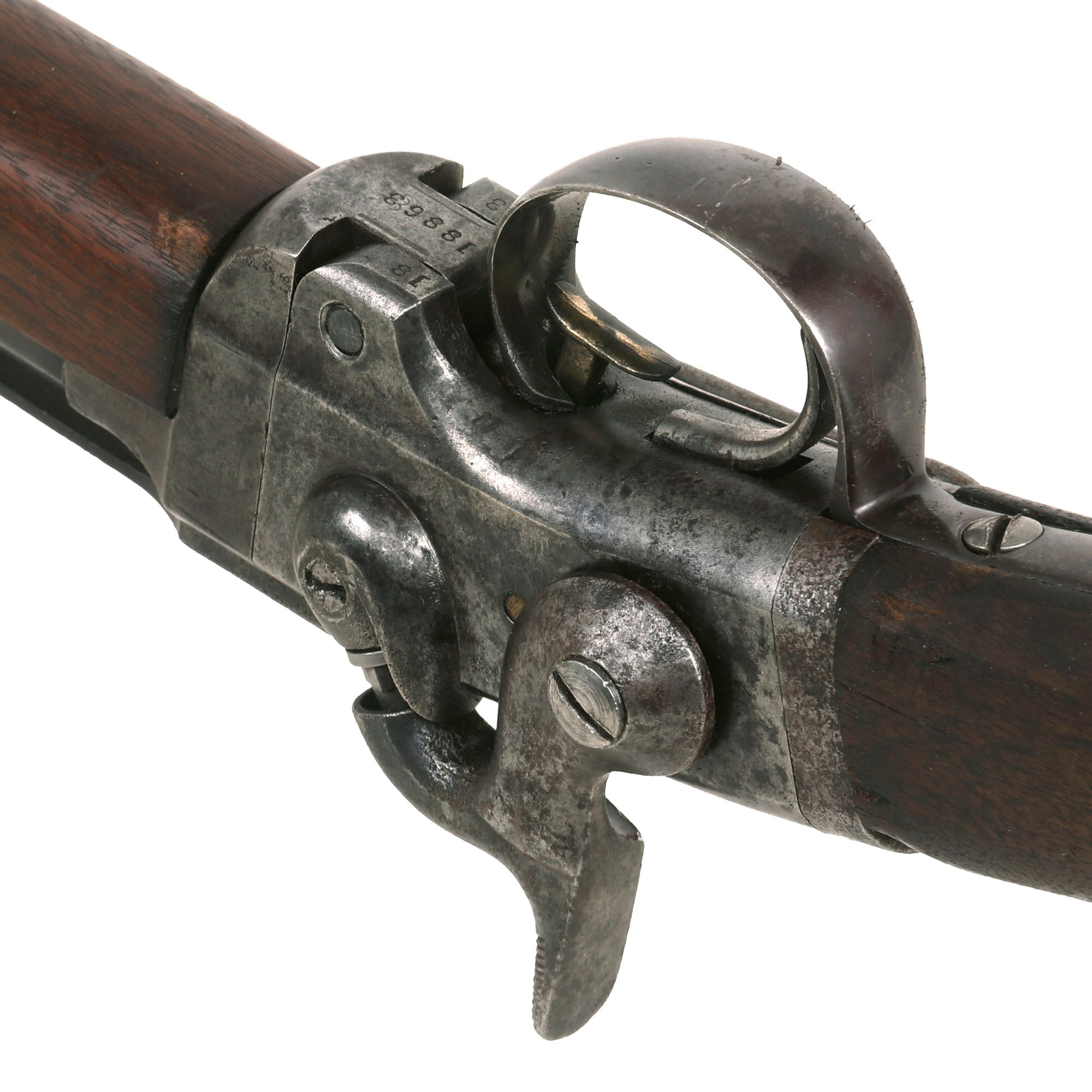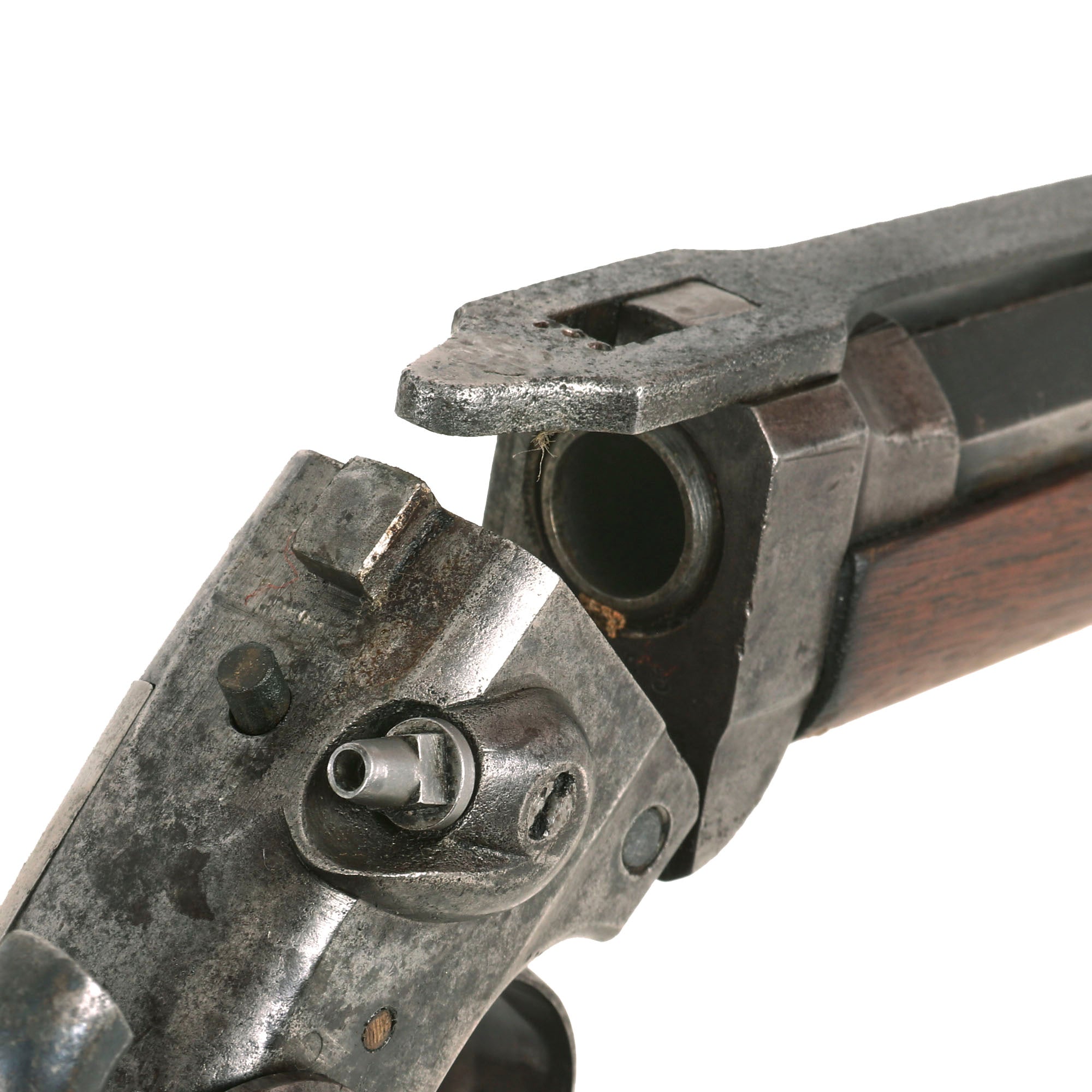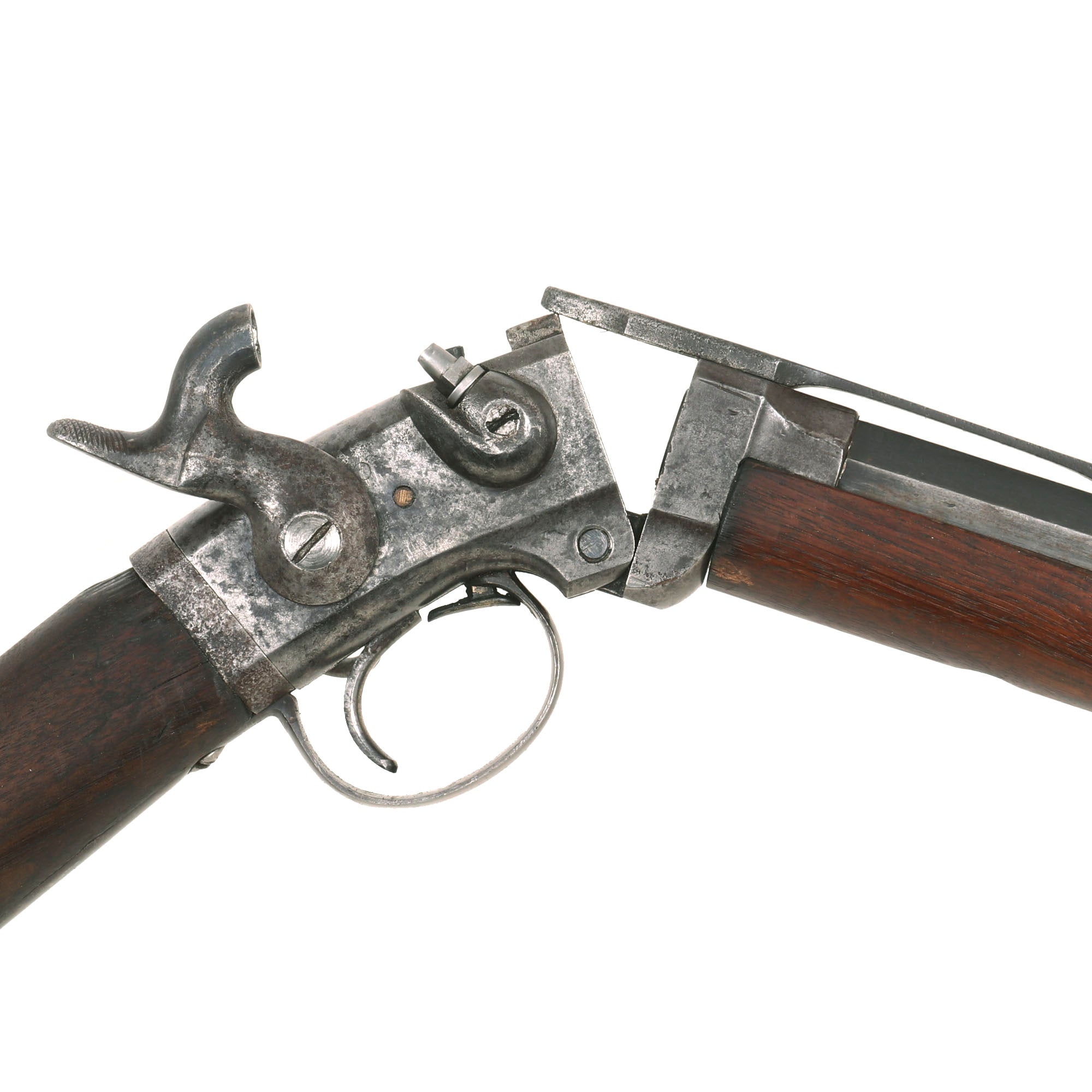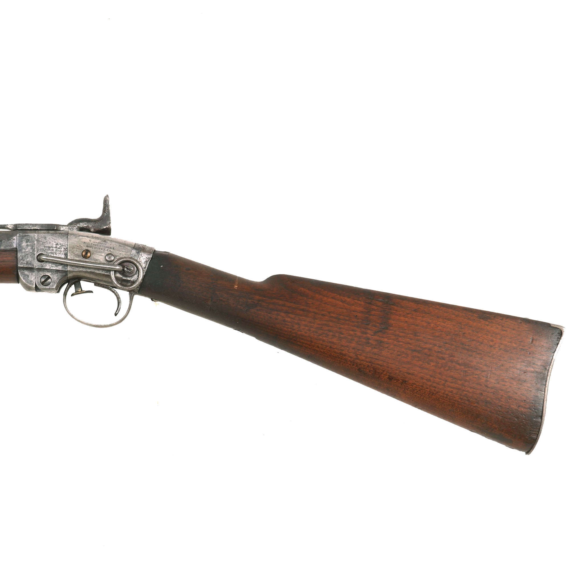 Original Item: Only One Available. The Smith Carbine was a 0.50 caliber breech-loading rifle patented by Gilbert Smith on June 23, 1857 and successfully completed the Military Trials of the late 1850s. It was used by various cavalry units during the American Civil War. It was unique in that it broke apart in the middle for loading, and that it used rubber cartridges which sealed the gases in the breech. The downside was that these cartridges were difficult to remove. It was one of the many "capping breech loader" firearms that bridged the gap between percussion and cartridge firearms.