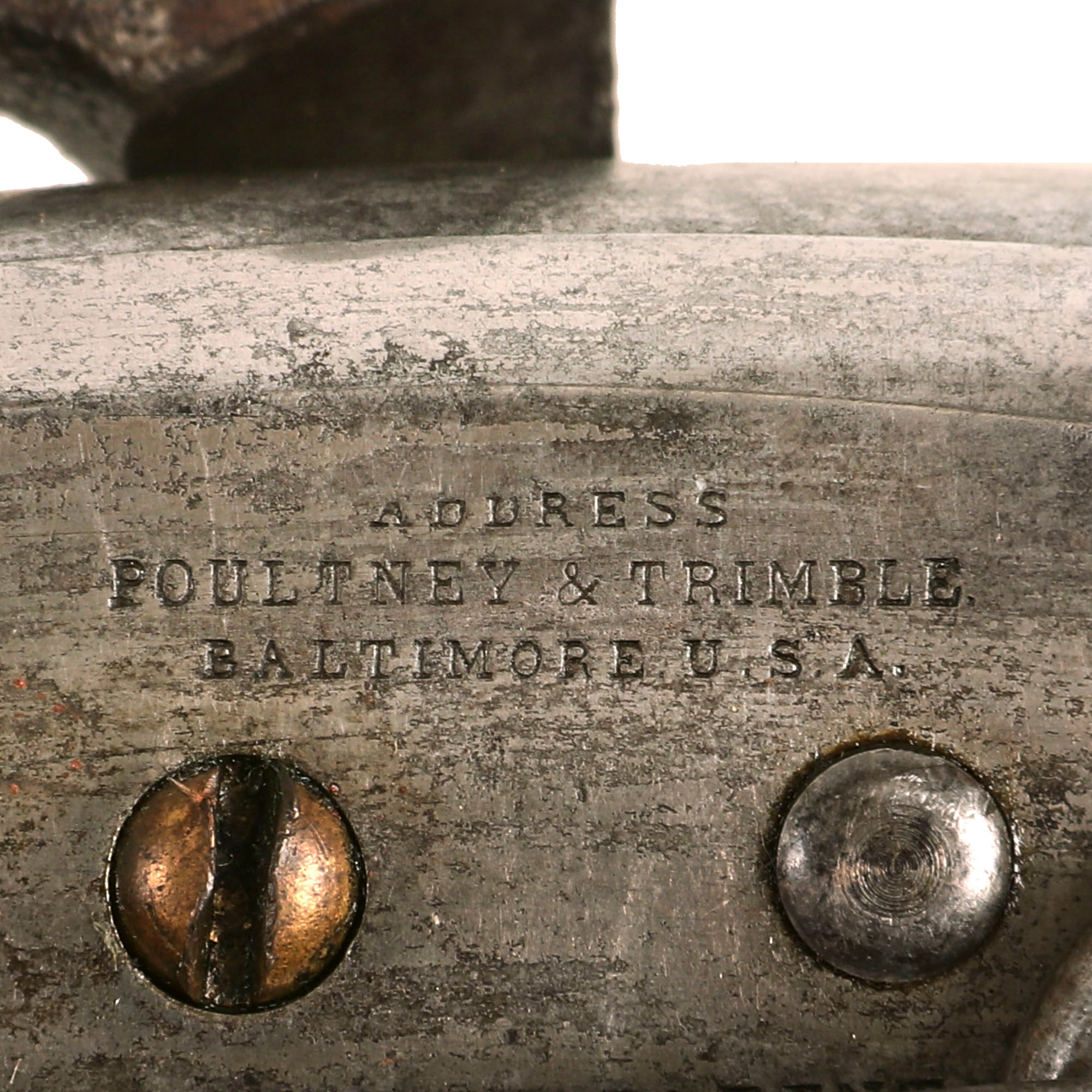 The carbines were built by three companies: Massachusetts Arms Company of Chicopee Falls, Massachusetts; the American Machine Works in Springfield, Massachusetts; or the American Arms Company in Chicopee Falls. The name of the distributor for the manufacturer, Poultney & Trimble of Baltimore, Maryland, is often stamped on the carbine's receivers, as is the case with this example.
