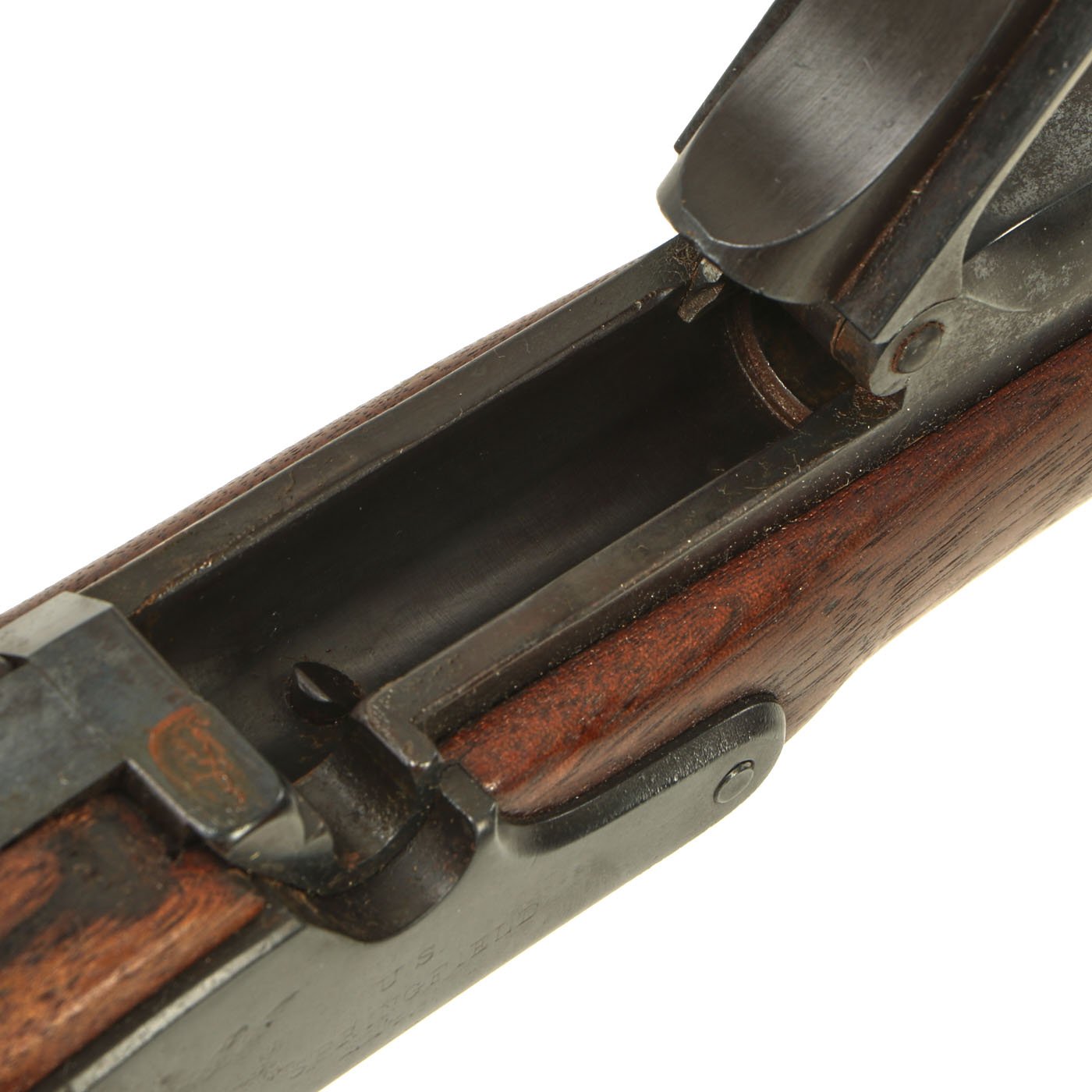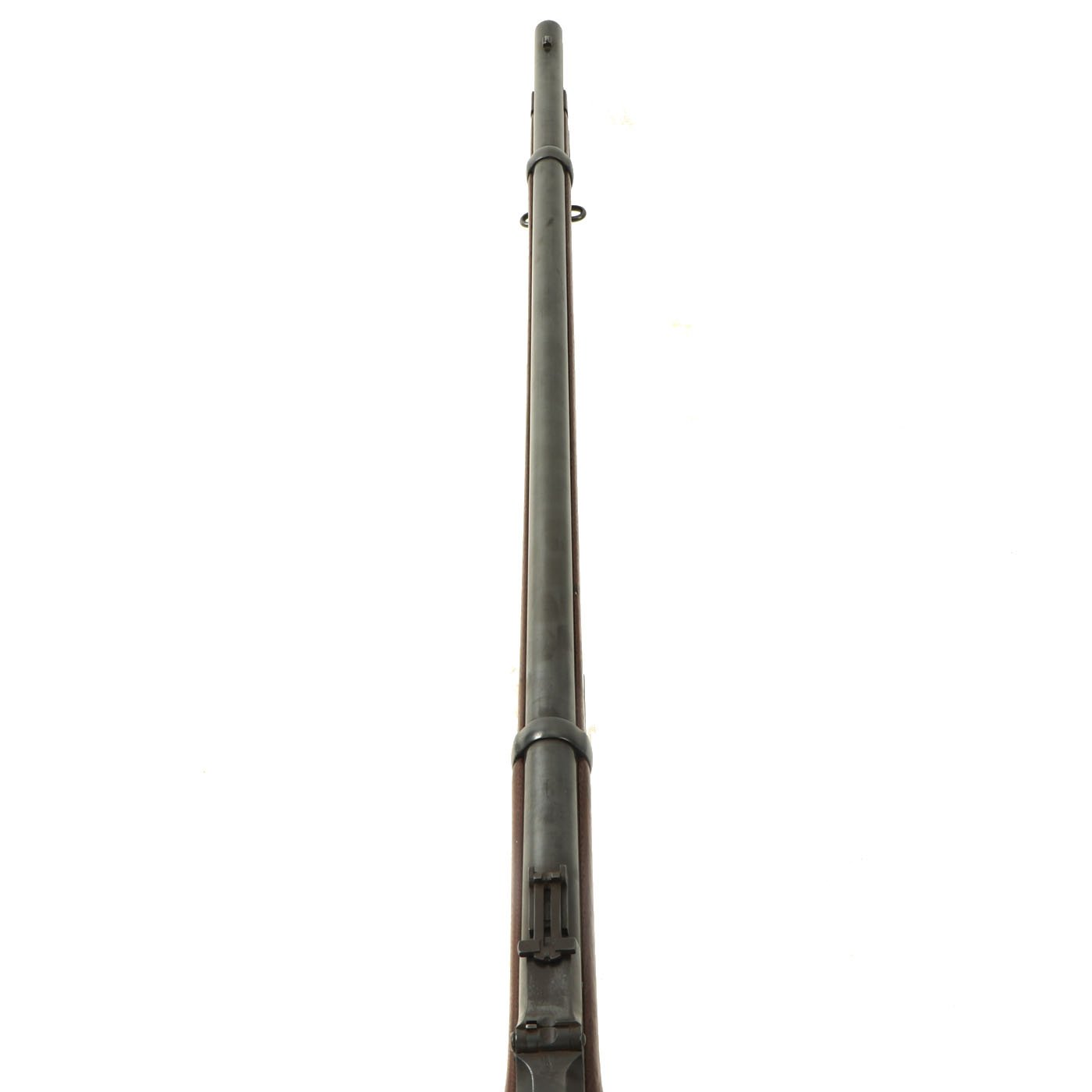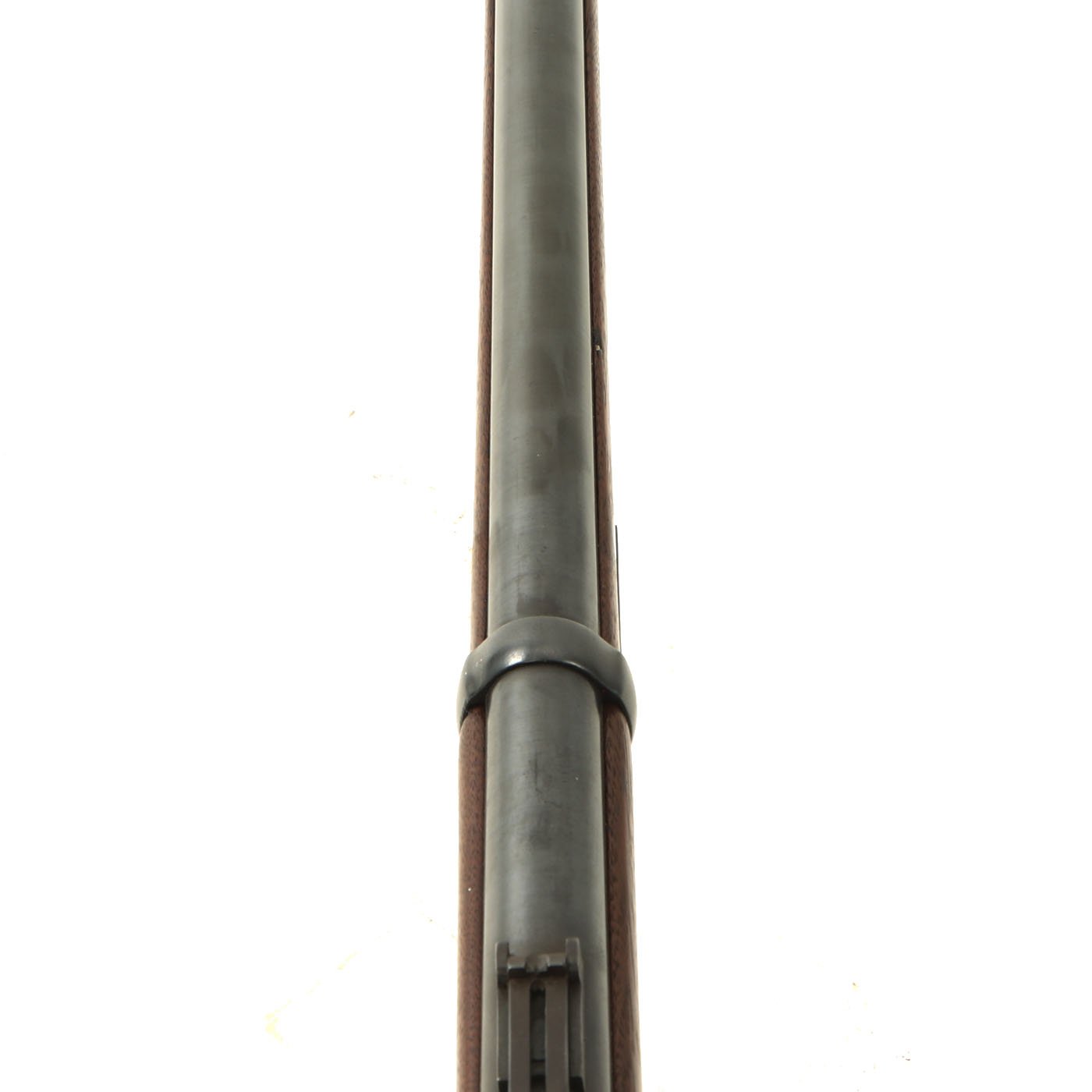 The bore is very good, with crisp lands and grooves, and a mostly bright finish with just a bit of hazing. The cartridge extractor is present and fully functional, though we have not tested its ability to eject spent brass. As can be seen, the rifle was definitely completely restored at some point but it was done very tastefully, as the markings are still visible on the metal components. It has a lovely look, and will look great as part of any collection!