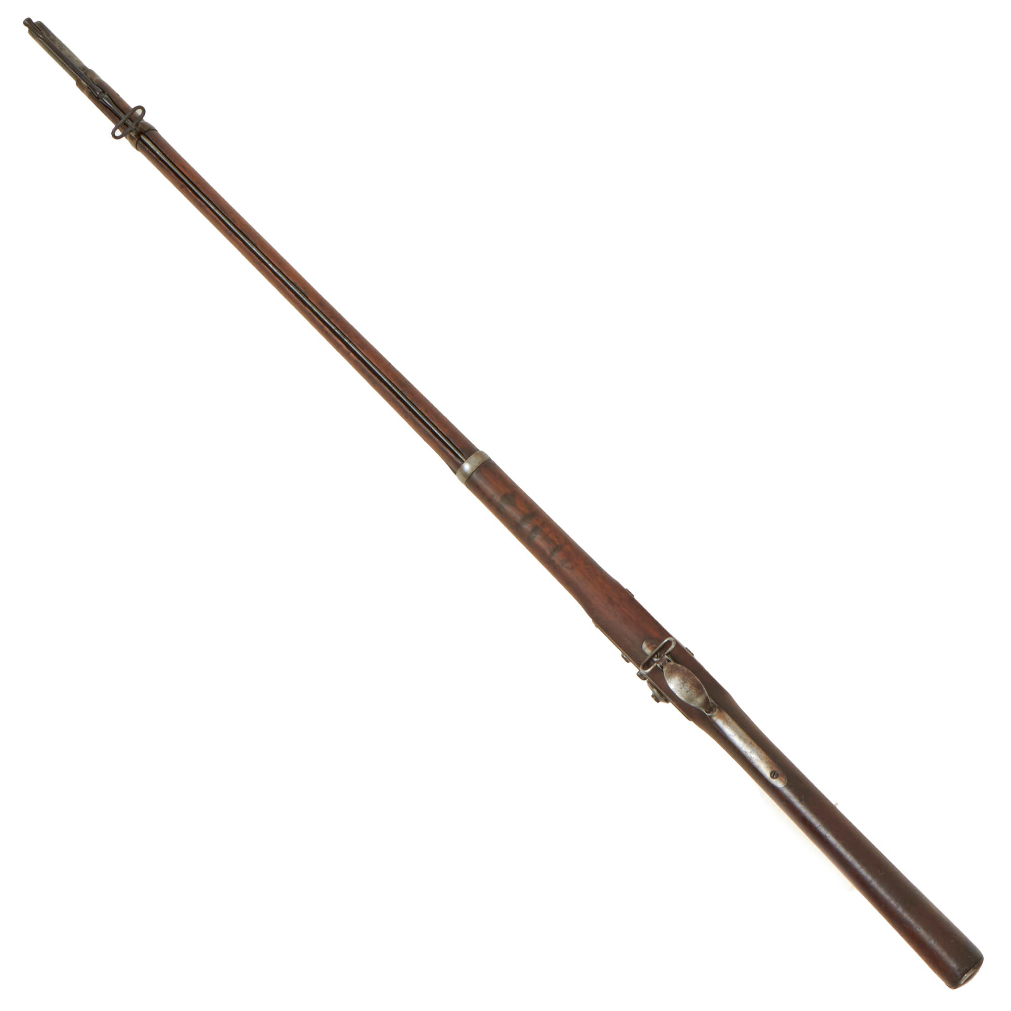 The Metal components are also in very good condition, with the original finish faded to a gray patina, and no sign of refinishing. The bore is in very good condition, with strong lands and grooves and a mostly bright finish on the three groove rifling. There is some fouling and oxidation from service, as to be expected. The rear sight is still intact and fully functional, and both sling swivels are present, with the double shouldered cleaning rod still in place.
