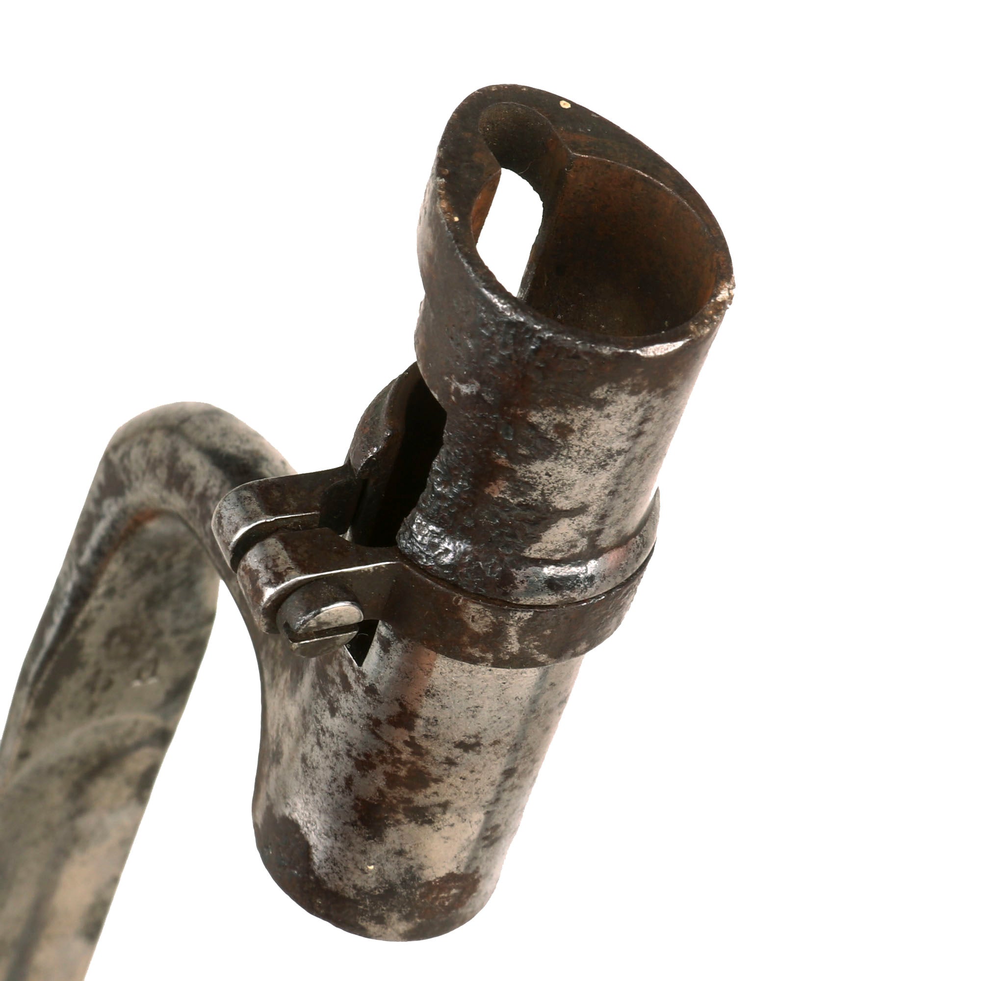 The included bayonet is in similar condition to the rifle, and looks to have had the blade polished. It shows some past pitting and oxidation, and currently does not slide all of the way onto the barrel.