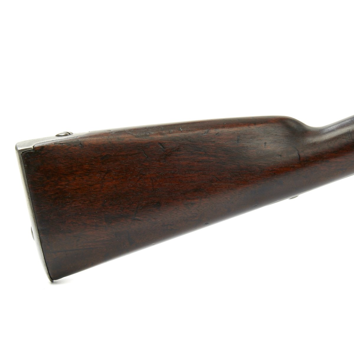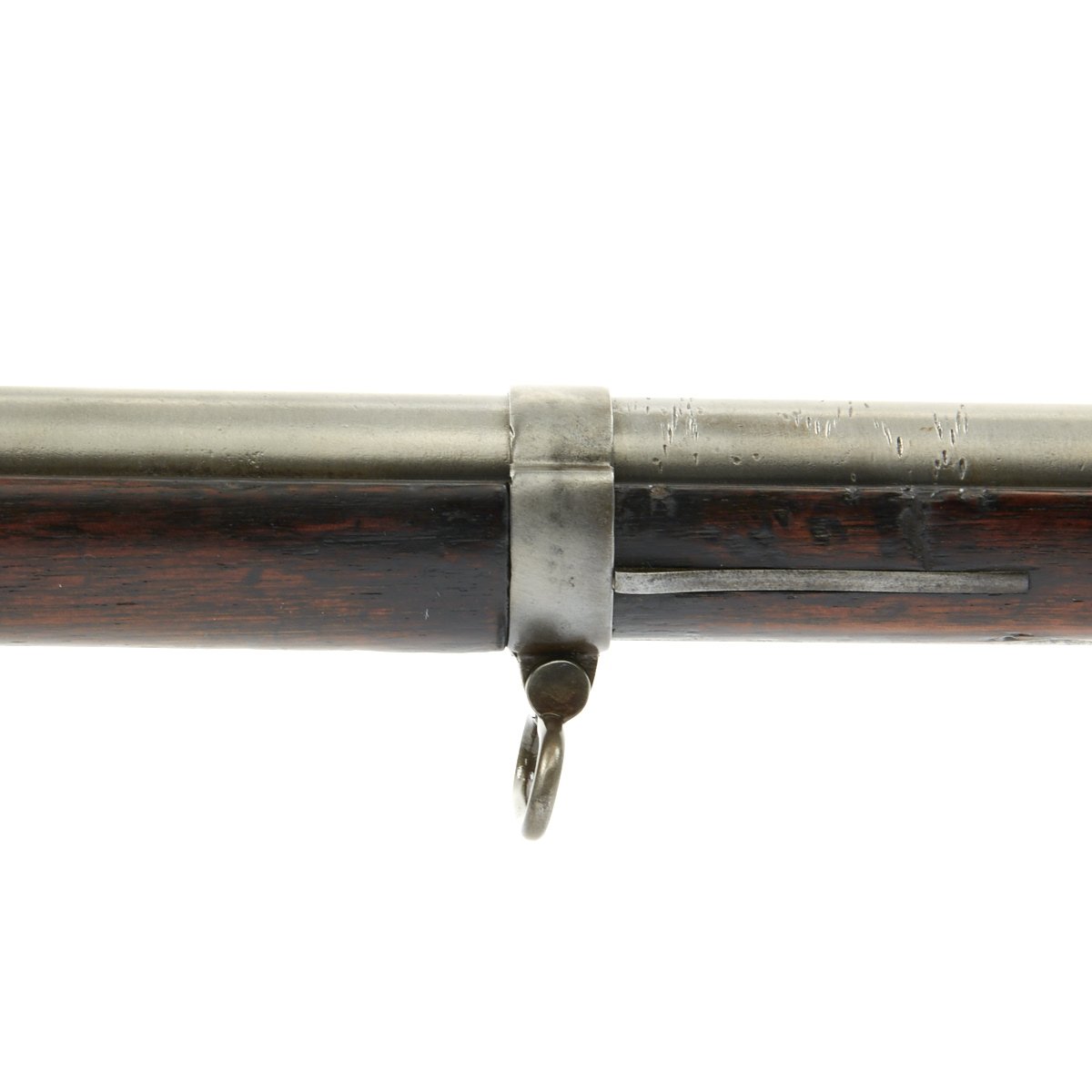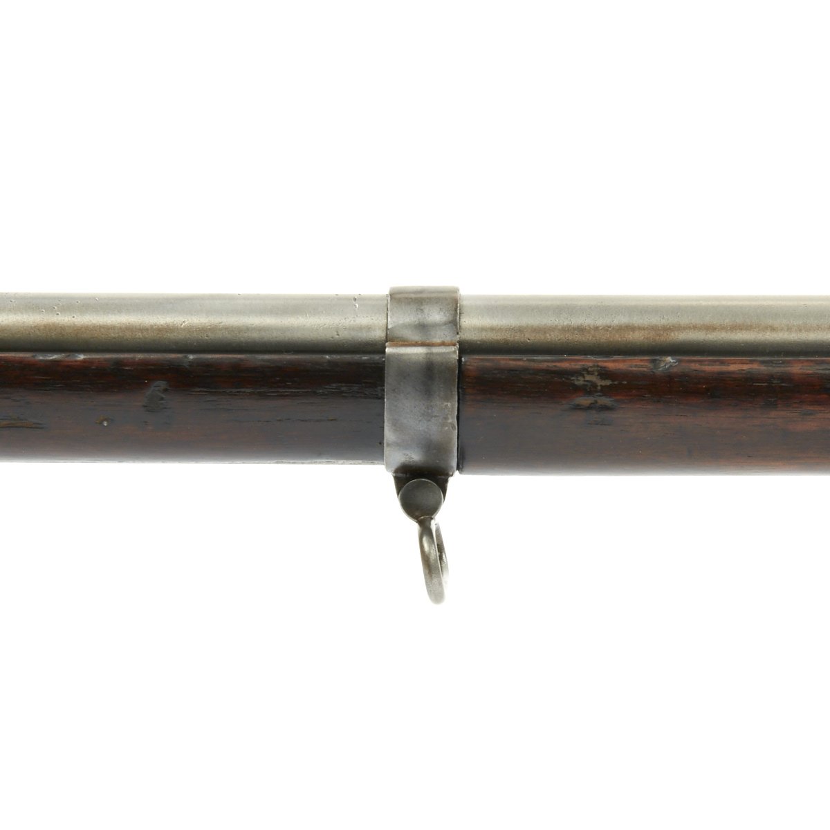 All of the Springfield muskets were themselves evolutions of the model 1816, and many Model 1835, 1840, and 1842 muskets were later rifled, as this one has been. In particular, the Model 1840 and Model 1842 were produced with an intentionally thicker barrel than necessary, with the assumption that they would likely be rifled later, so they required less work. As the designers anticipated, many of the Model 1842 muskets had their barrels rifled later so that they could fire the newly developed Minié ball. When the barrels were rifled, graduated rear sights were added to take advantage of the improved accuracy. We checked this rifle, and the rifling can still be felt at the muzzle.